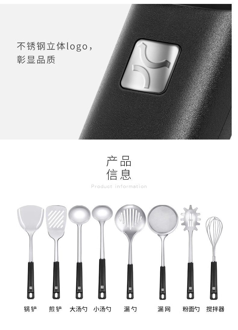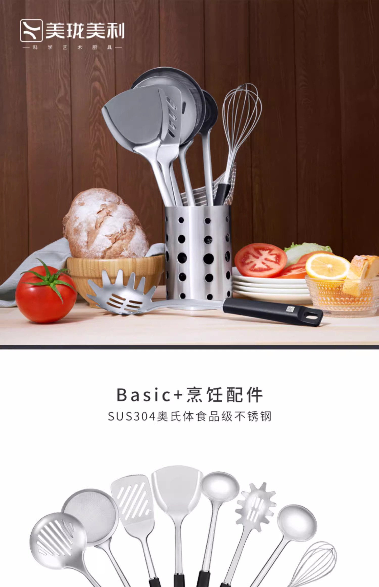美珑美利Basic+家用厨房304不锈钢锅铲勺子汤勺全套厨具套装烹饪工具