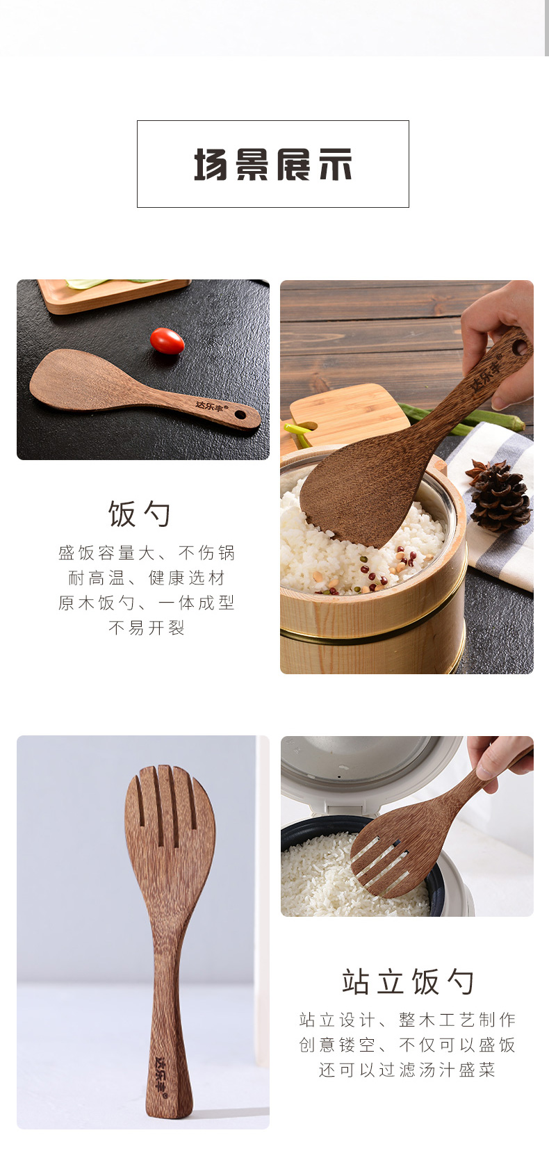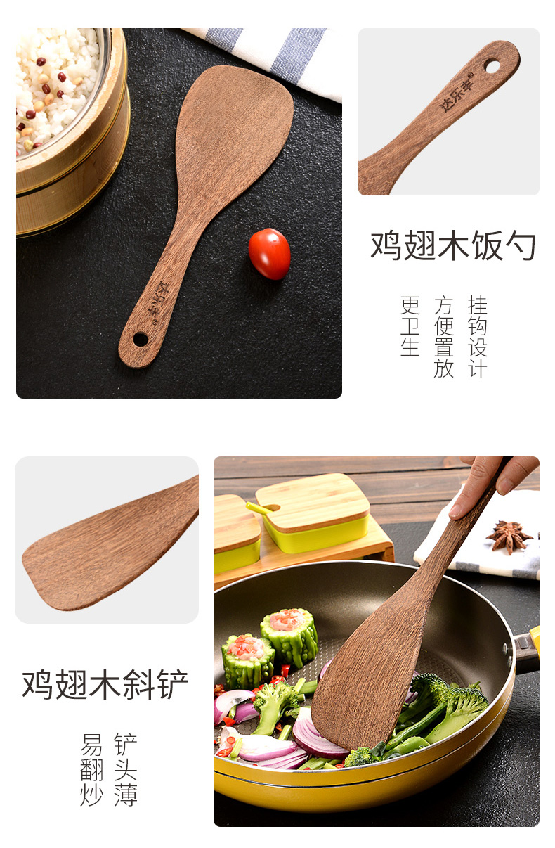 达乐丰鸡翅木饭勺子盛米饭电饭煲无漆实木盛饭铲子