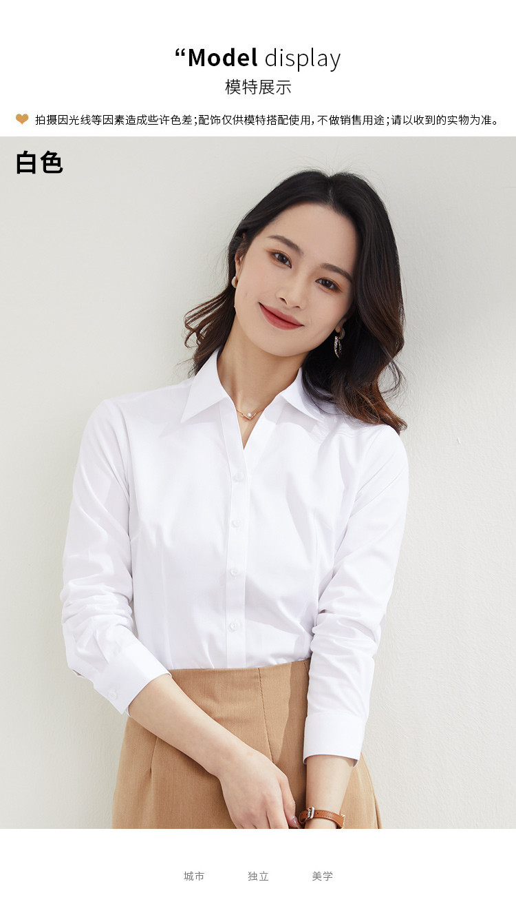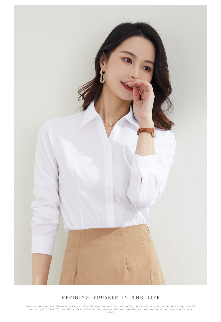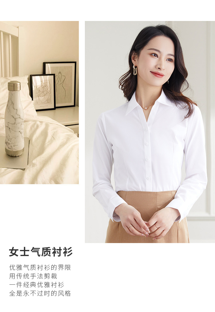 【60棉】罗蒙春秋女装长袖V领衬衫女士简约大方商务通勤职业装OL衬衫女