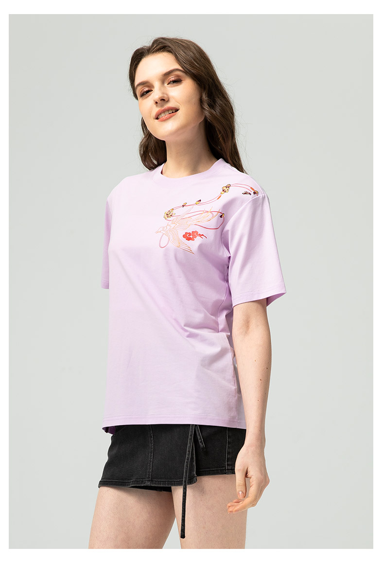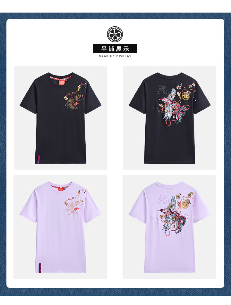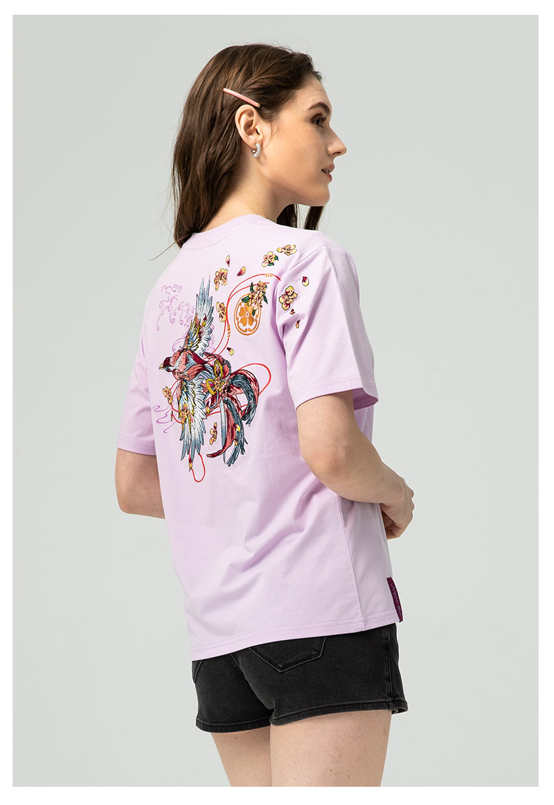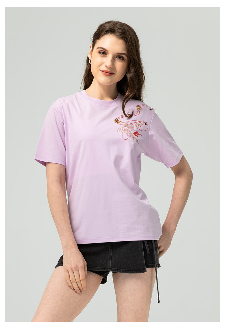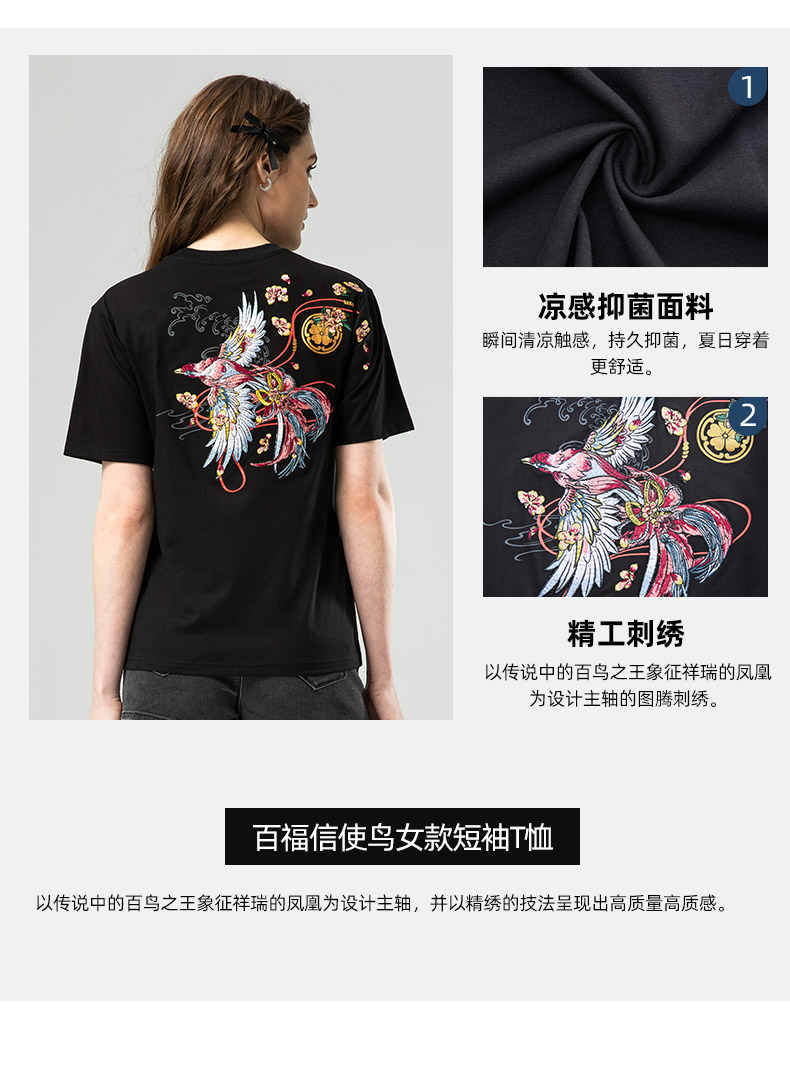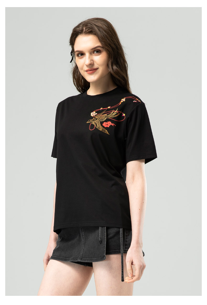 ONIARAI/鬼洗25春夏新品百福信使鸟刺绣宽松女式T恤 25NOB21