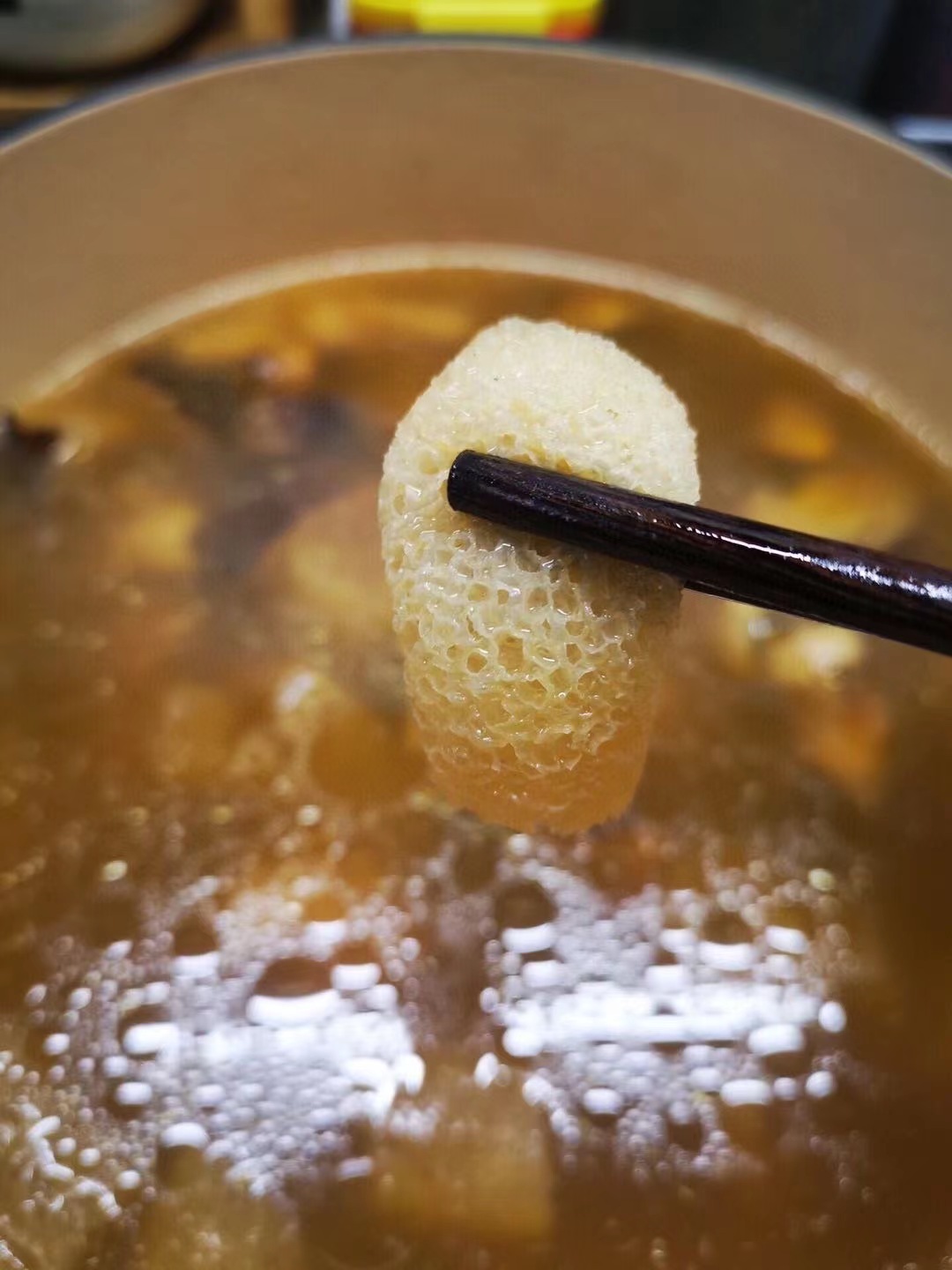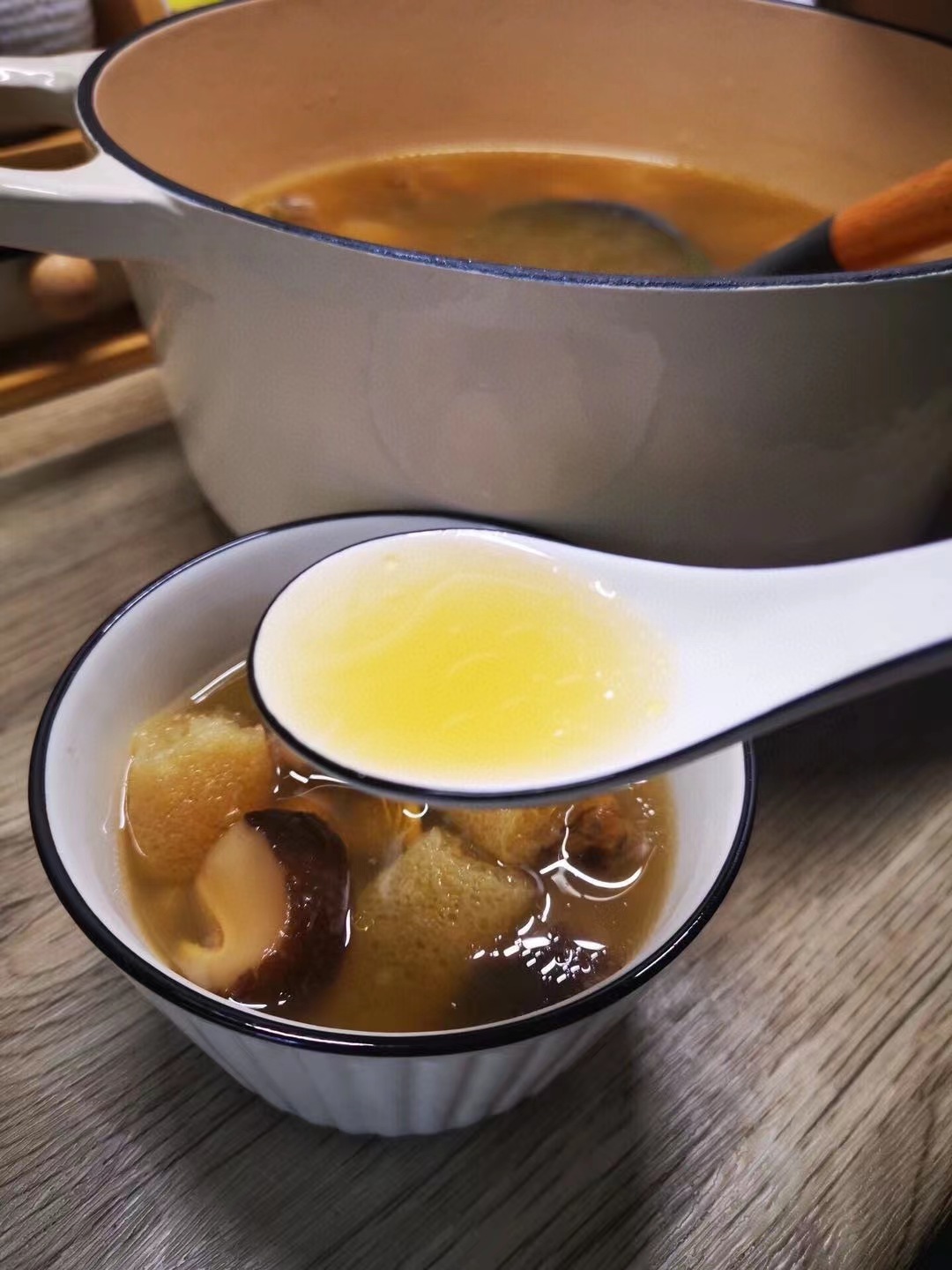 除了竹荪和鸡肉,另外还放了姬松茸,香菇,超级鲜美,今日阴雨连绵,就馋这一碗热鸡汤,再加上竹荪和各种菌类一起炖,味道很是鲜美。
