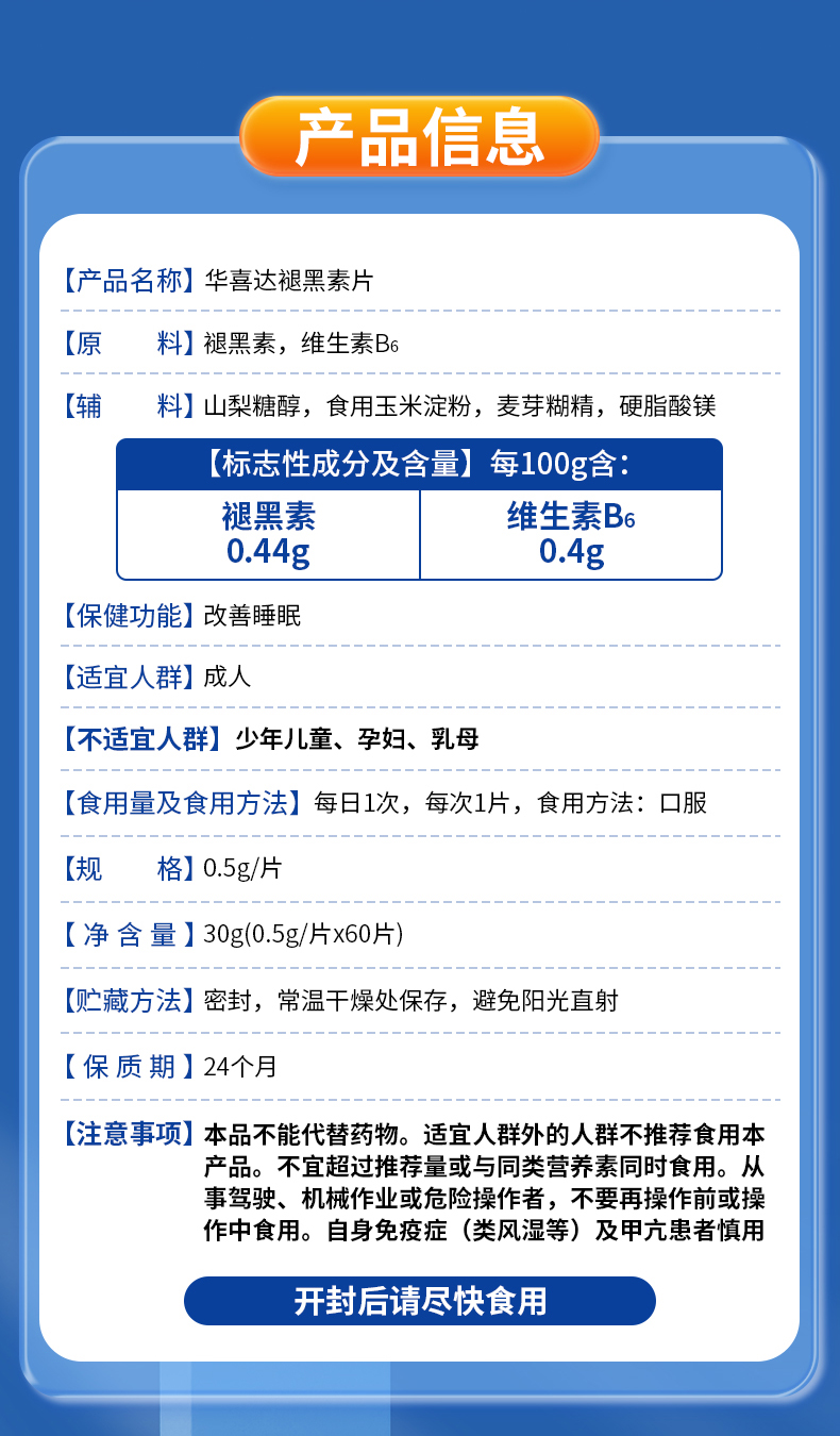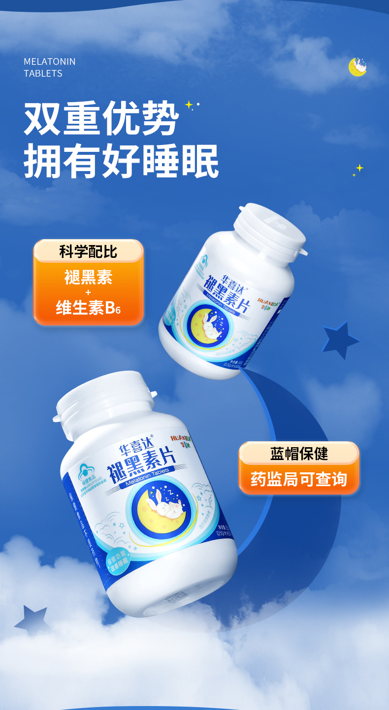 华喜达褪黑素片维生素b改善睡眠 30g(0.5g×60片)