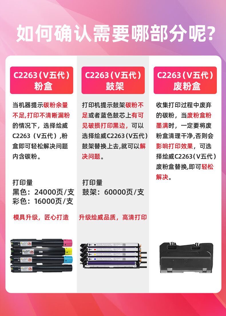 绘威C2263粉盒 V五代适用富士施乐c2060粉盒 DocuCentre-V C2560硒鼓 C2265 c3060墨粉盒 打印机感光鼓鼓组件鼓架