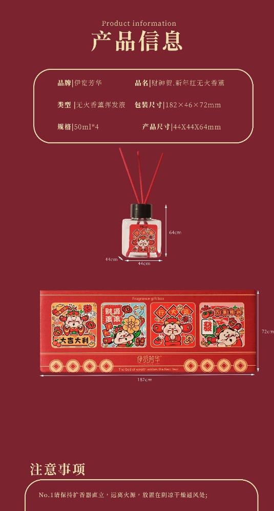 「9.9到手!4瓶礼盒装」伊览芳华新年香薰礼盒 去异味除臭摆蛇年香薰卧室酒店居家日用香氛精油