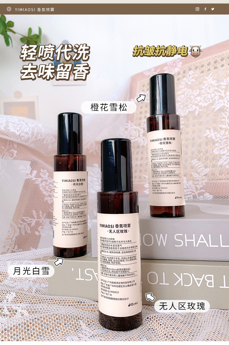 「3款香型」YIMIAOSI衣物香水香氛喷雾 留香去异味火锅烟味香氛精油