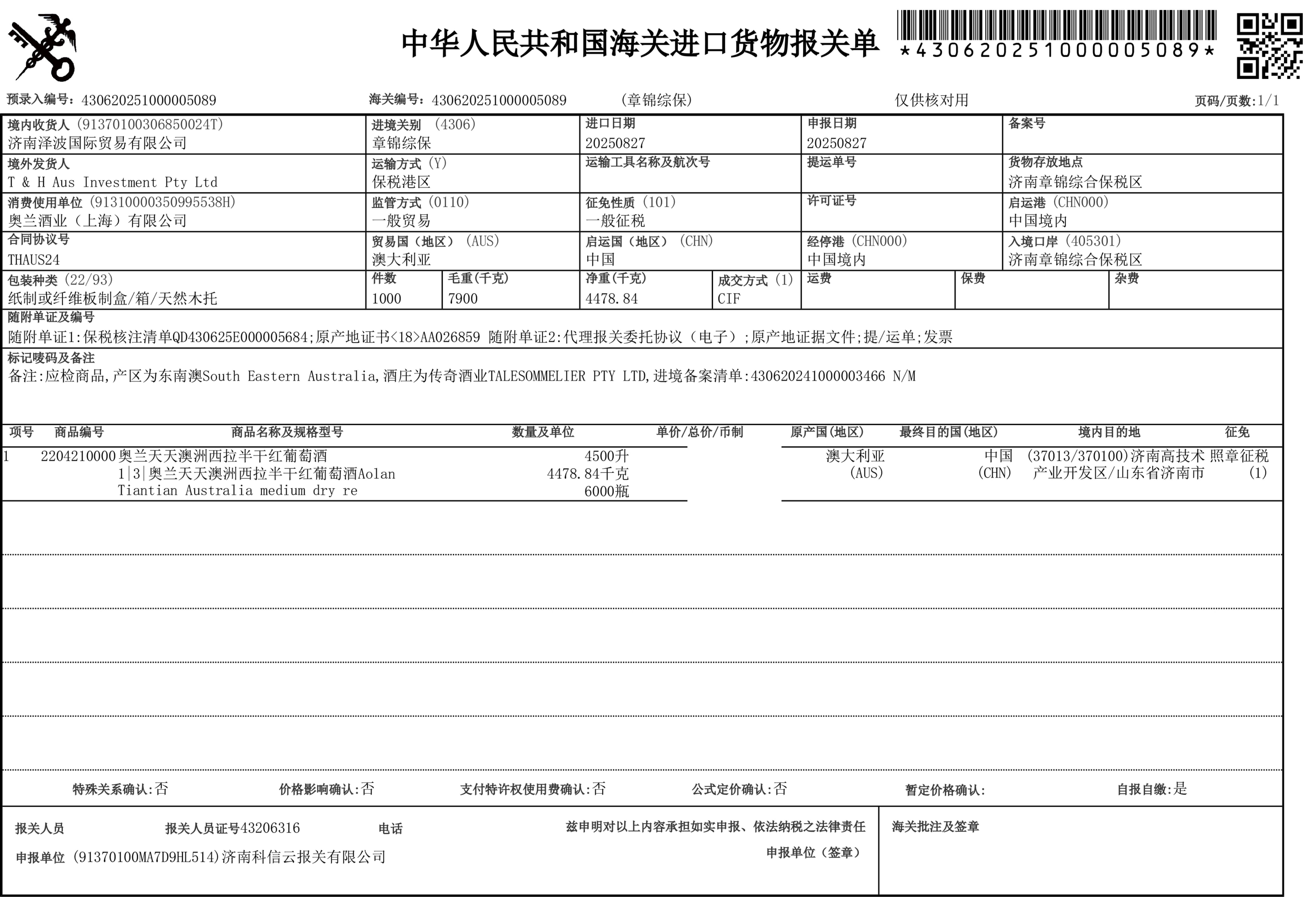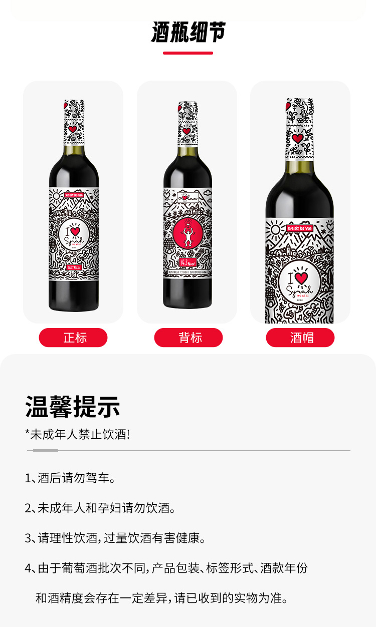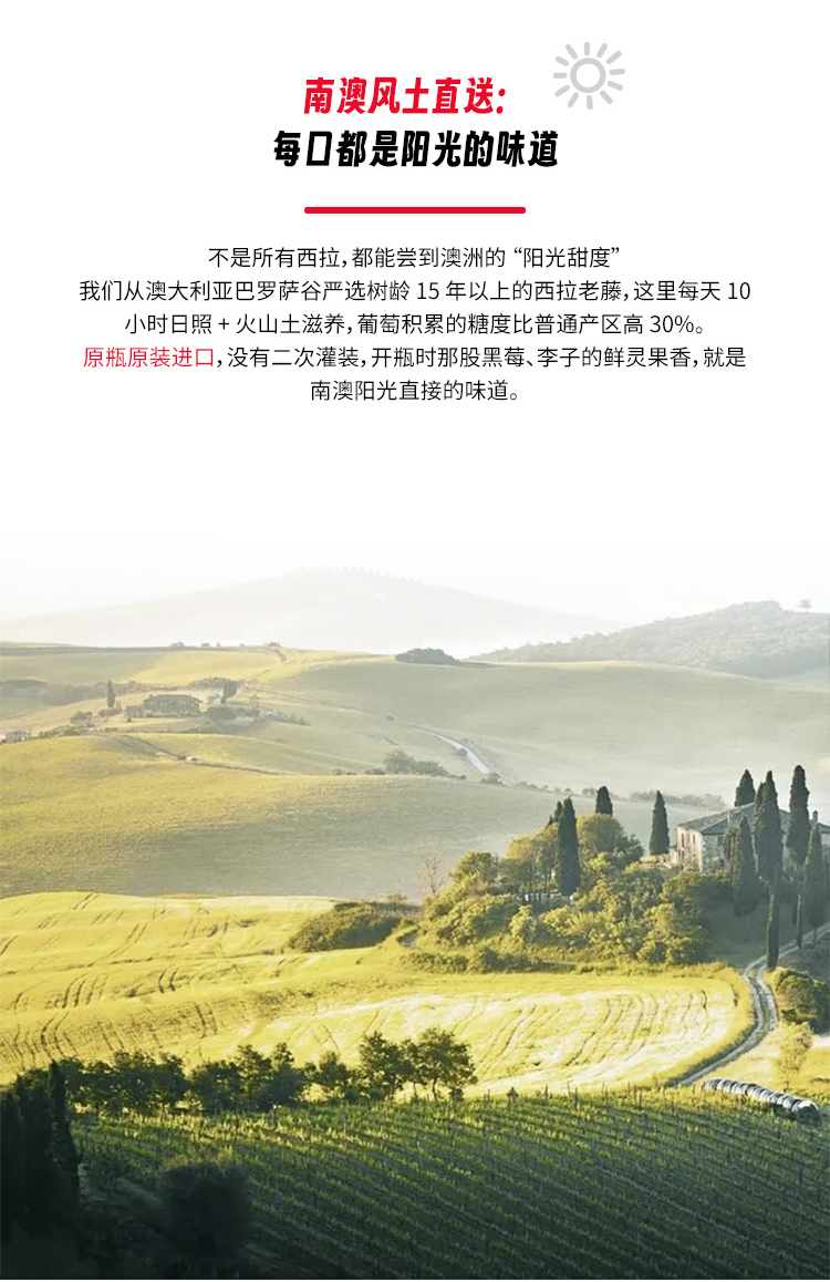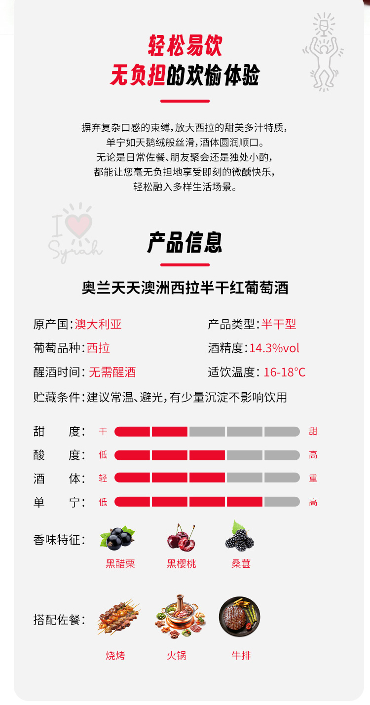 【新品】奥兰天天澳洲西拉半干红葡萄酒14.3度750ml巧克力红酒 老藤