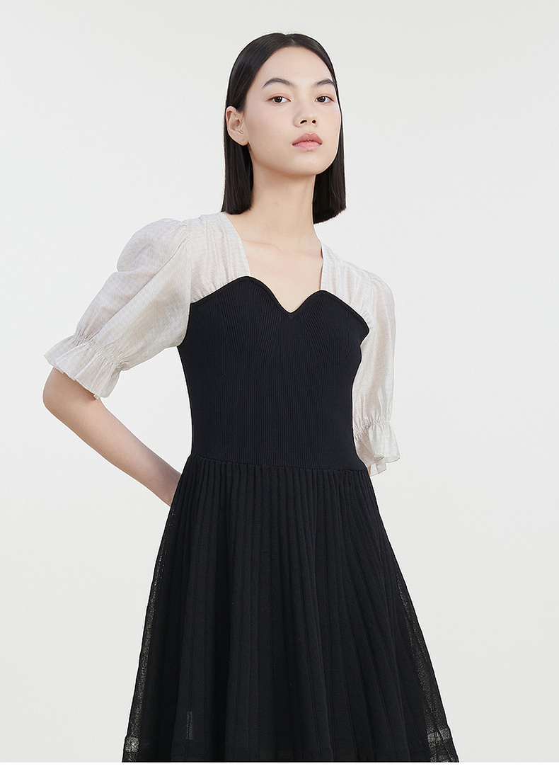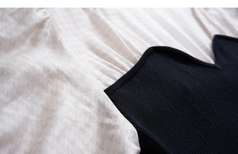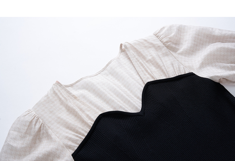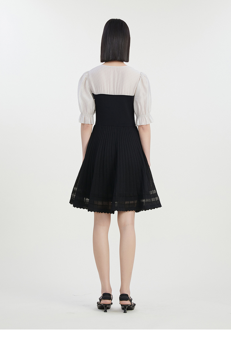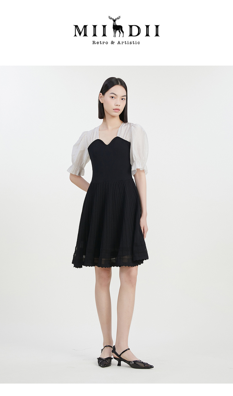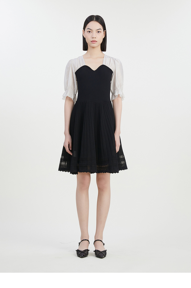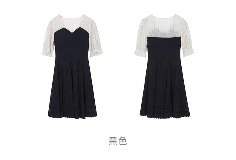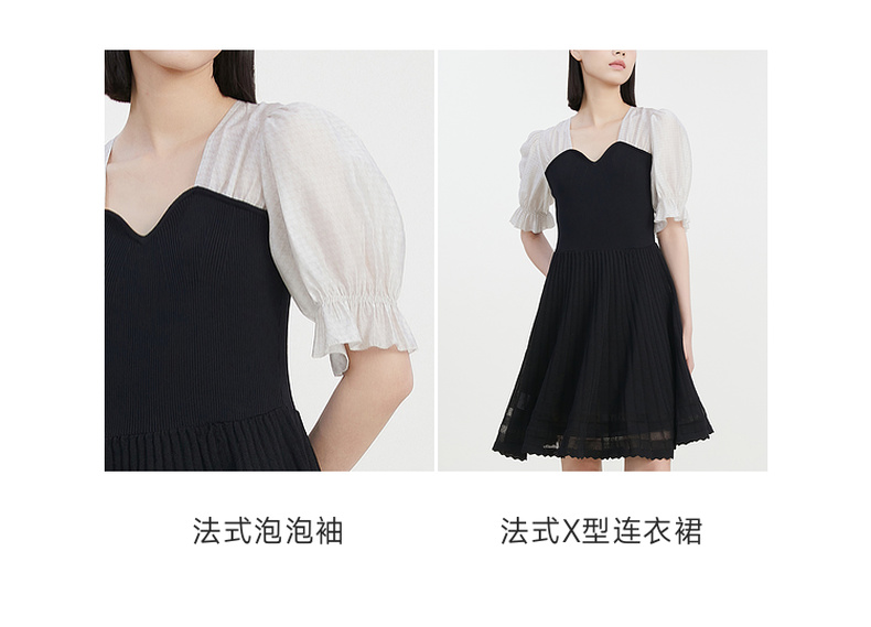 谜底中长款针织衫短袖女2023夏季新款V领拼接毛织连衣裙232MZ0876