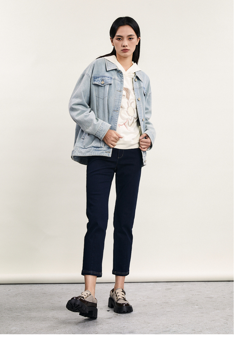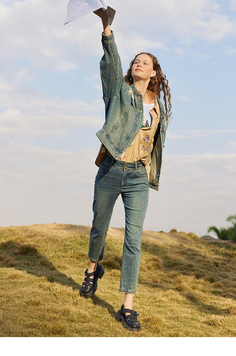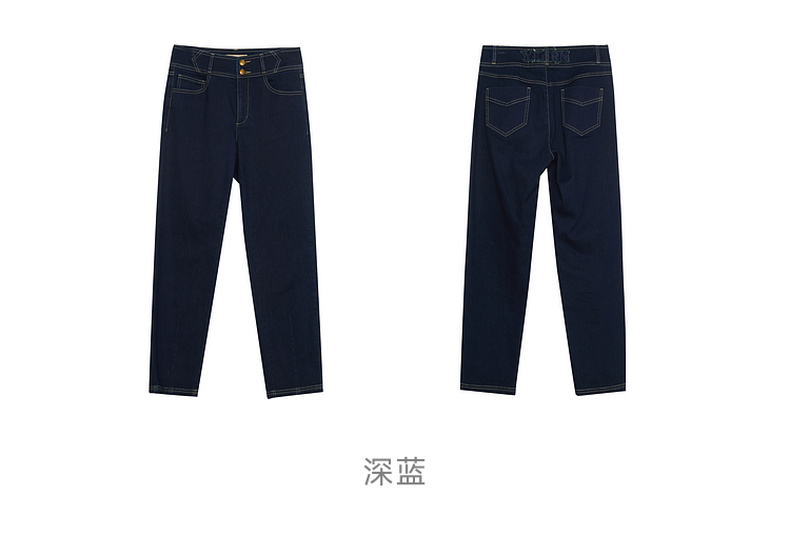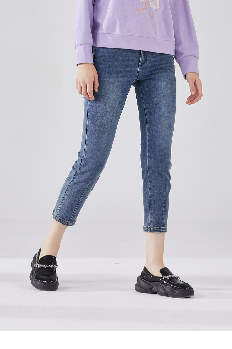 谜底棉弹牛仔裤女2024春新款复古高腰两粒扣百搭铅笔裤241MK0009