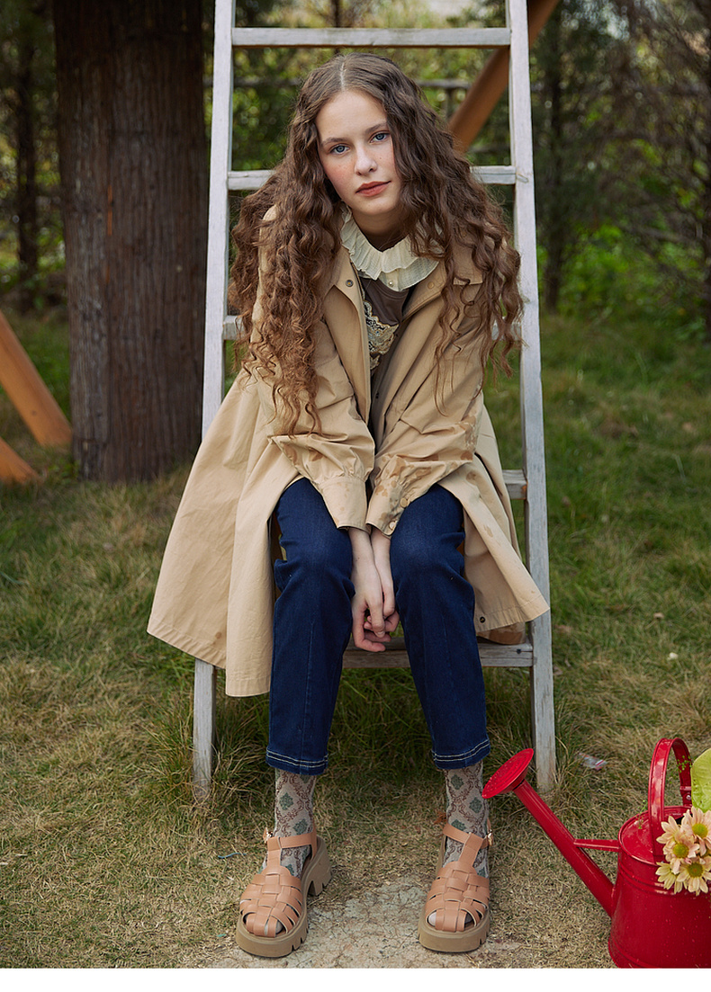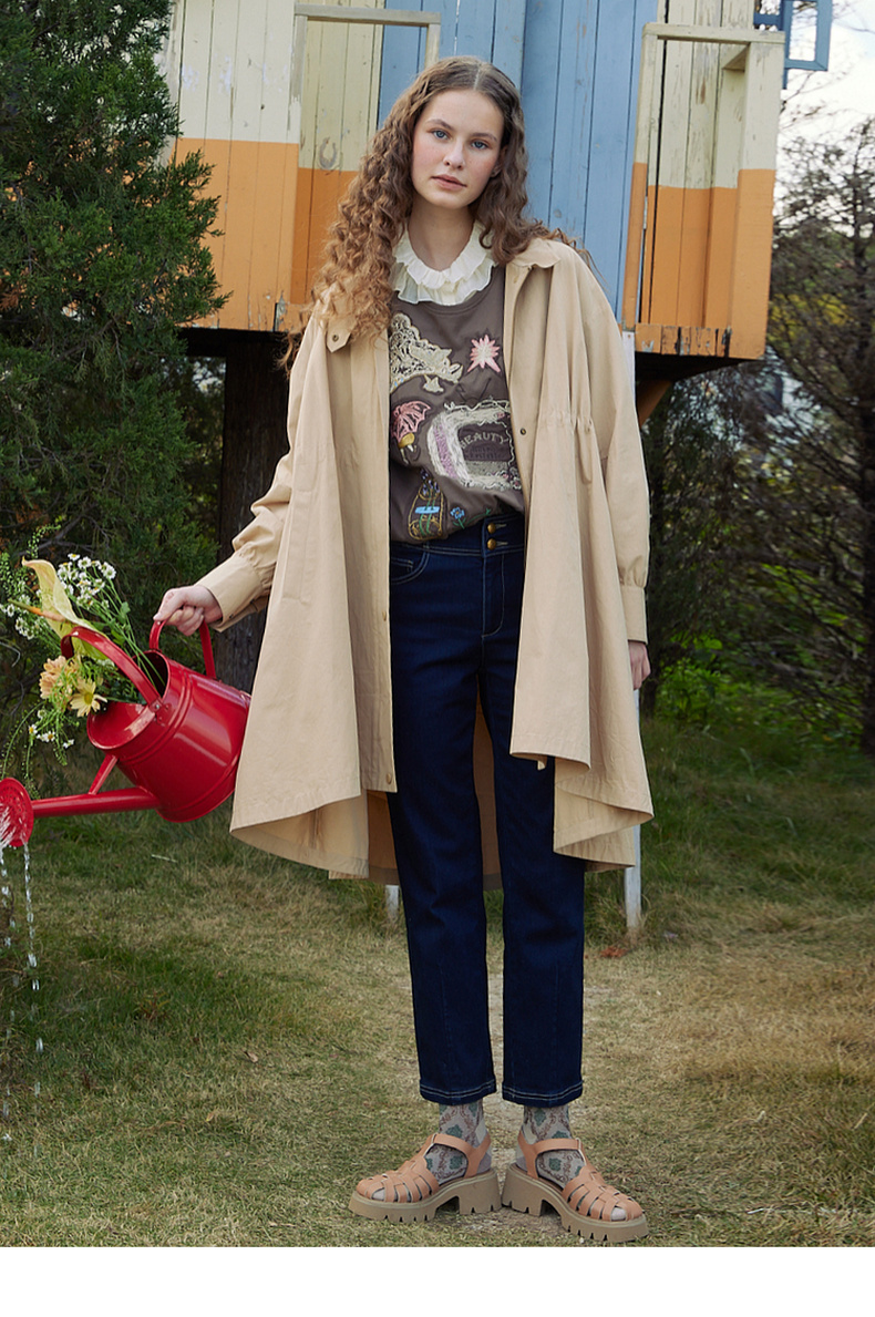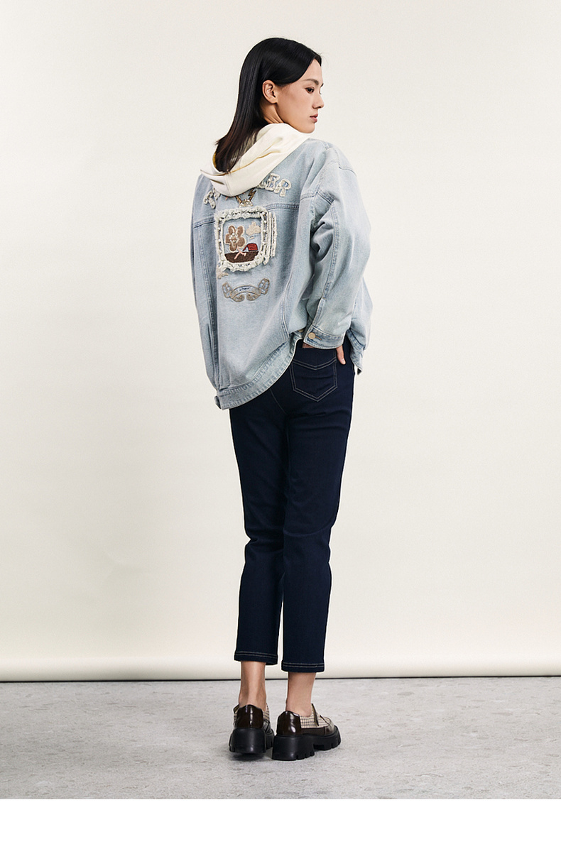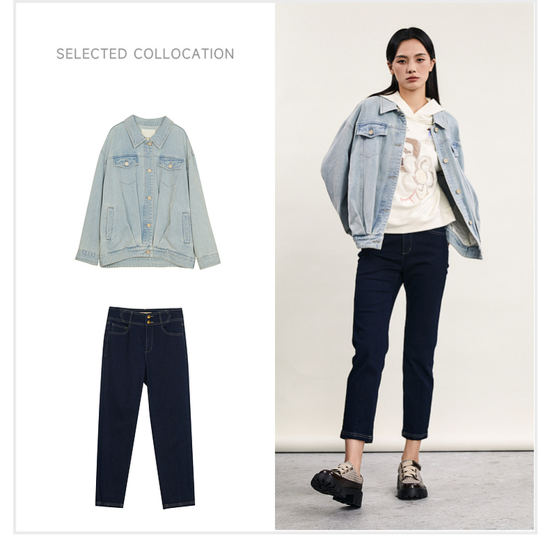 谜底棉弹牛仔裤女2024春新款复古高腰两粒扣百搭铅笔裤241MK0009