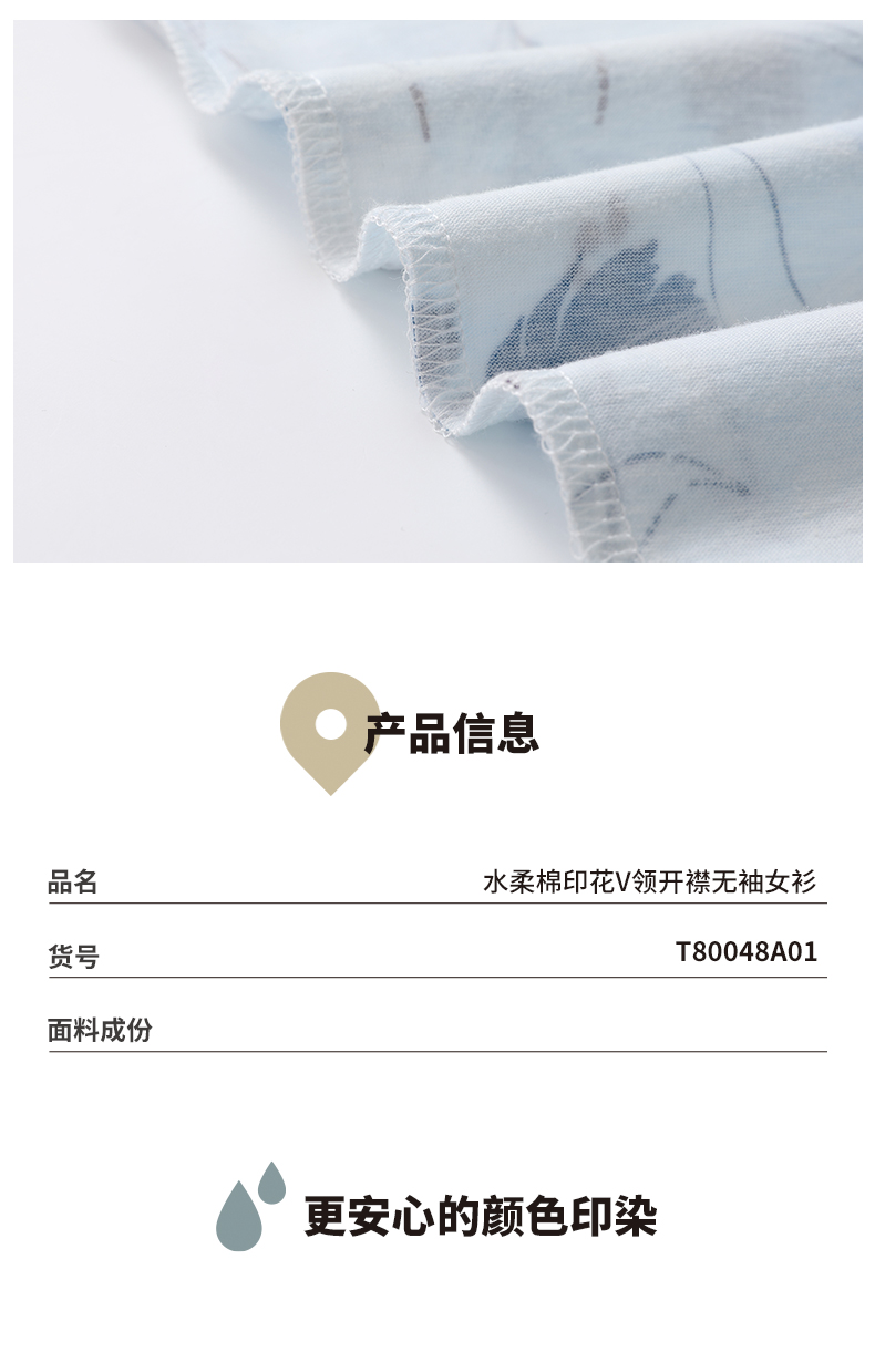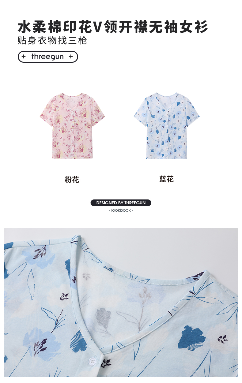 Threegun三枪 水柔棉印花V领开襟无袖女衫-T80048A01