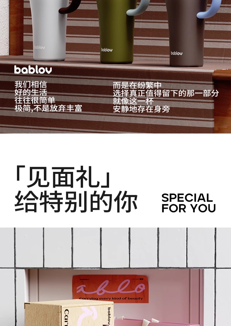 BABLOV关注中国人的饮水健康,更不断探索未知可能性,专注于新生代自我个性表达,创造玩味新潮的产品体系。希望将水杯带入Z世代年轻人的生活,传递更多“饮”响力。