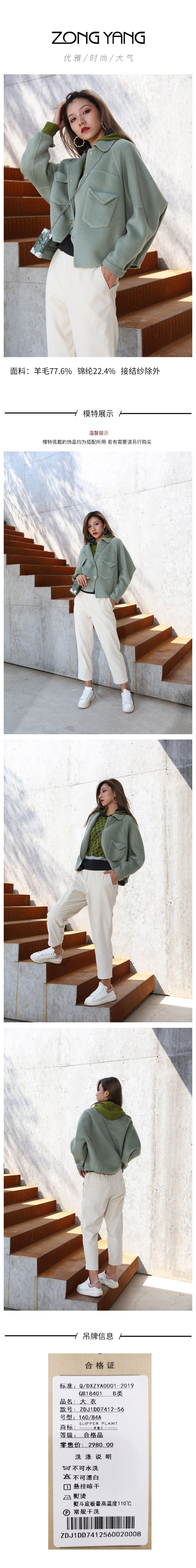 宗洋&卓蔻兰 女士短款双面宽松版大衣 ZDJ1DD7412-56
