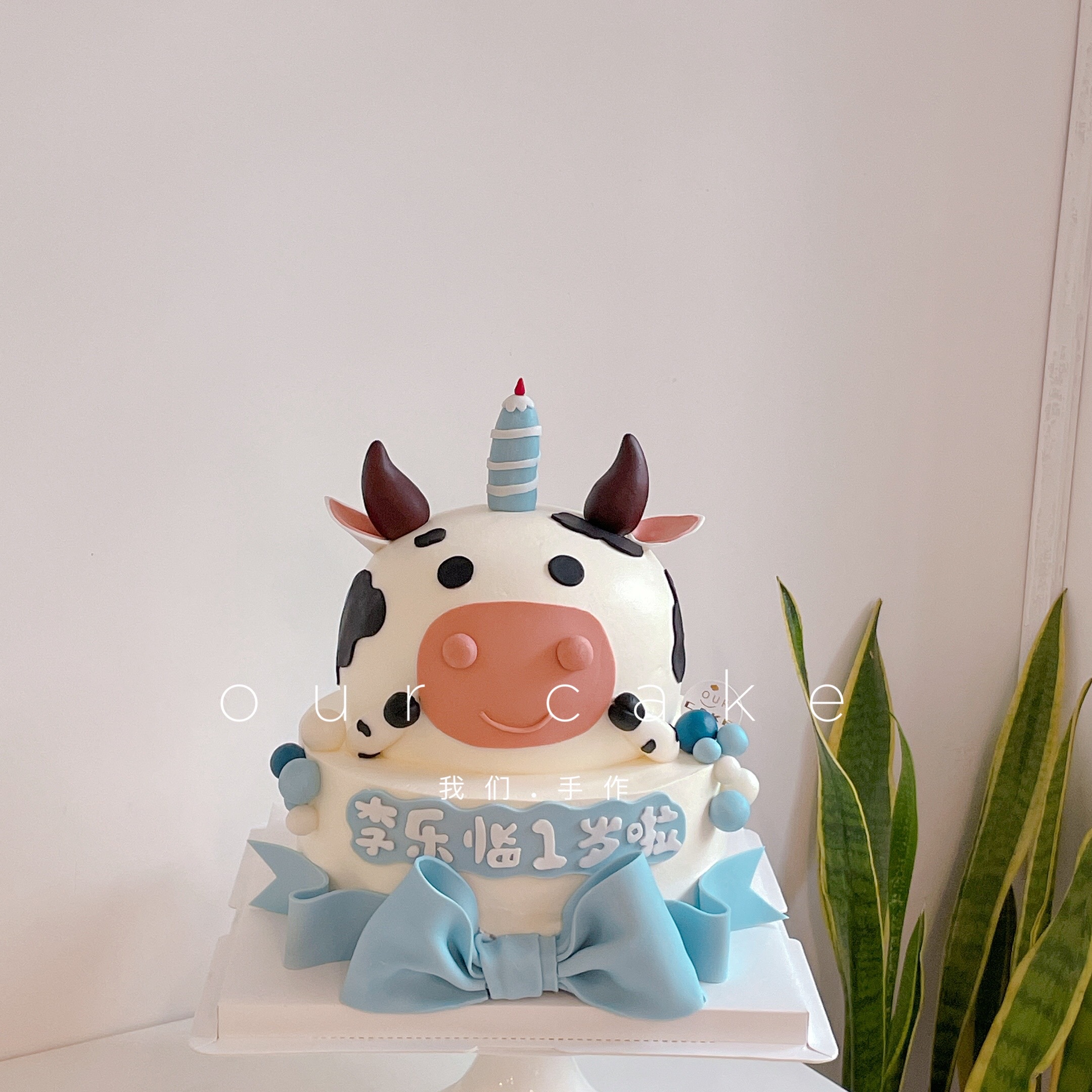 立体牛牛/奶牛蝴蝶结双层蛋糕-低糖处理无添加