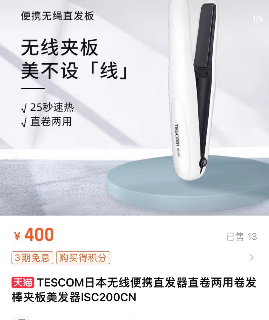 【品名】TESCOM日本直卷两用便携卷发棒夹板ISC100CN