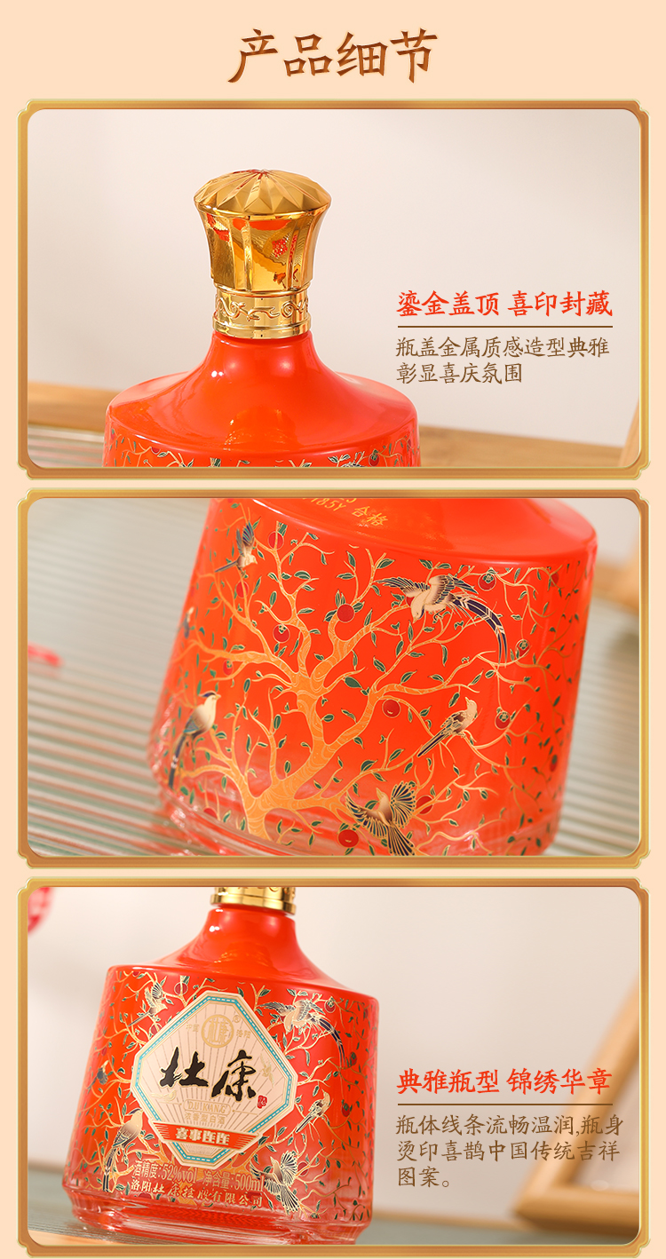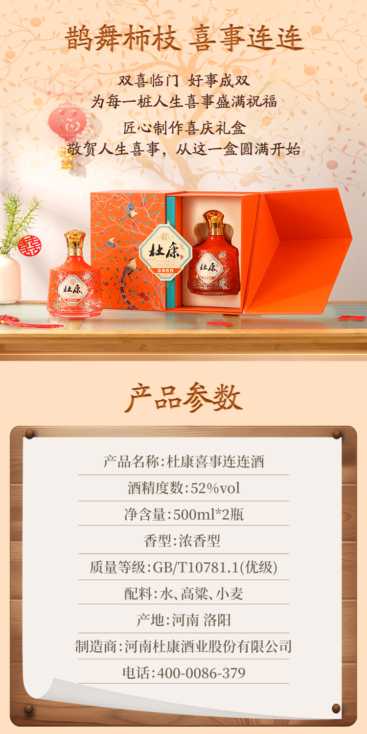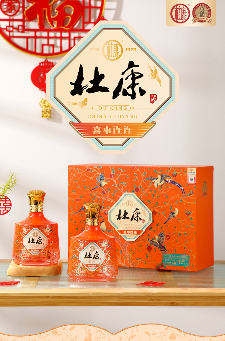 杜康喜事连连白酒双支礼盒52度500ml*2礼盒装