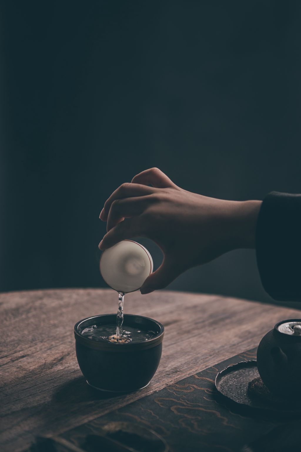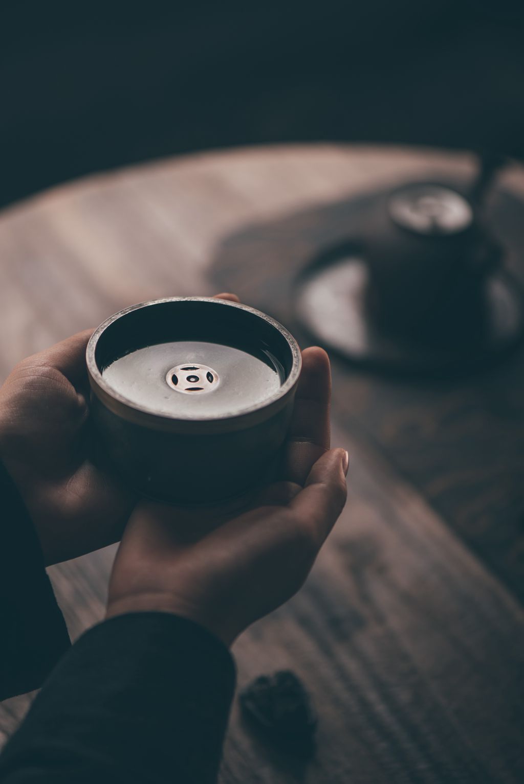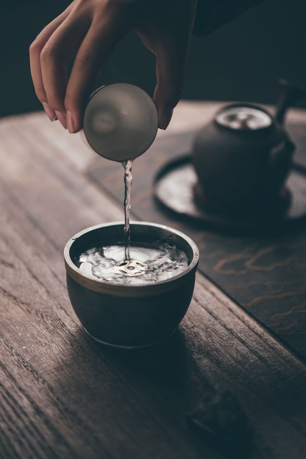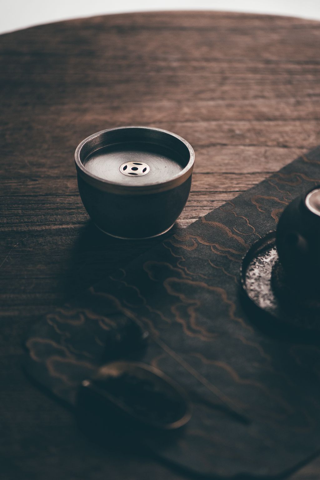 建水体型小巧精致,有盖子,盖子镂空,倒水时可以让水流到下面的砵里,在外面看不到废水。这样巧妙的设计,让整个茶席干净清爽桌面整洁,更加优雅美观。方便客人在饮茶之后就近倒入茶渣,而不用起身或远距离跨步伸臂,倒掉杯中茶渣和汤底。