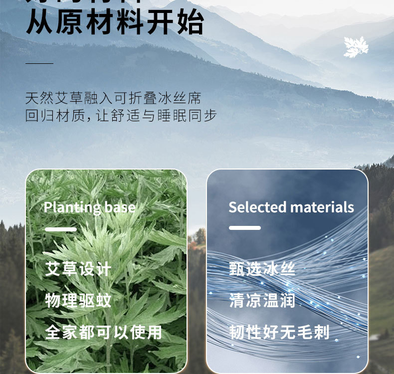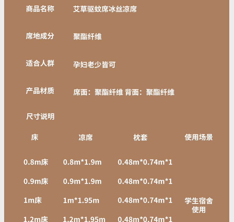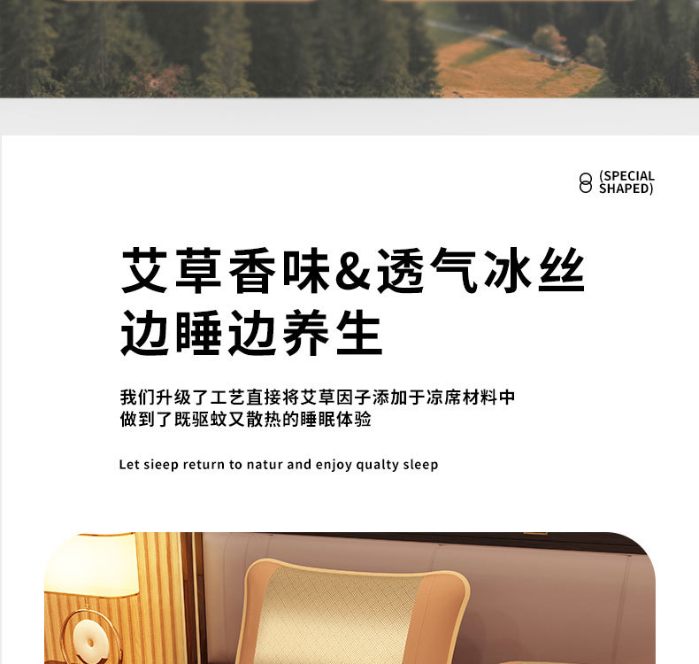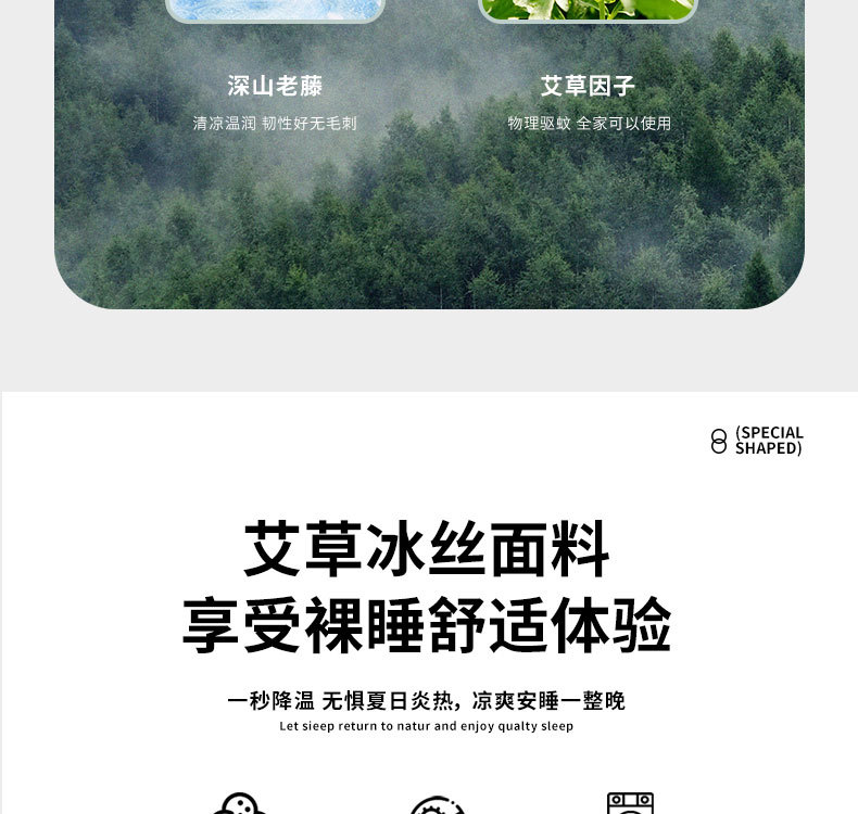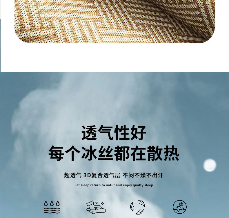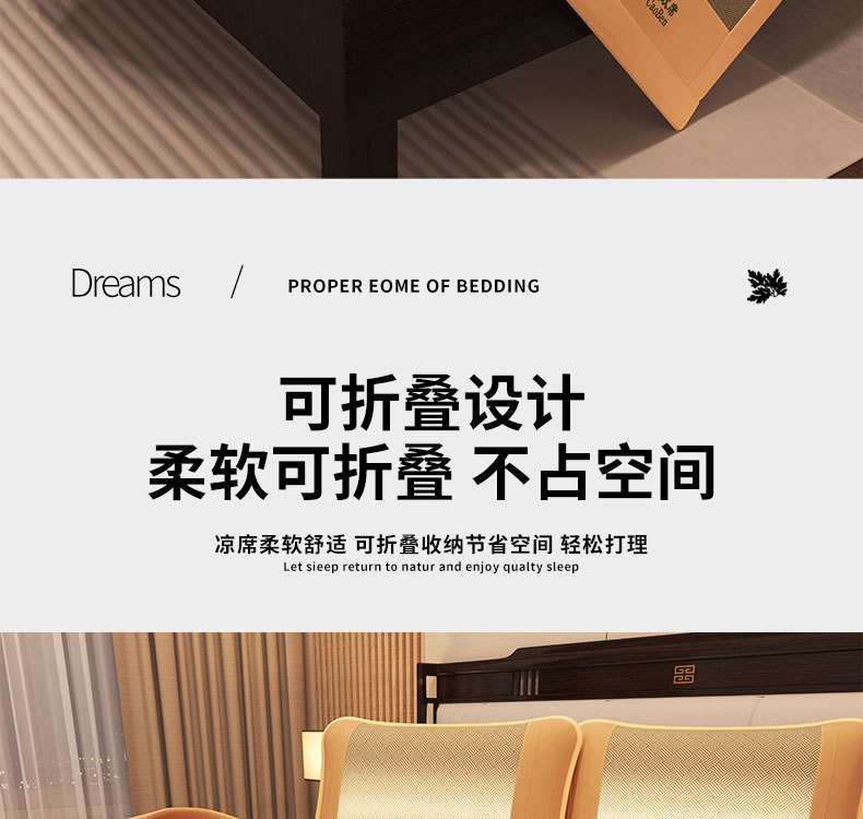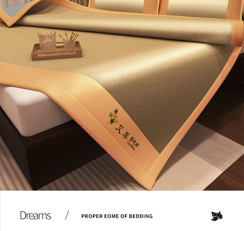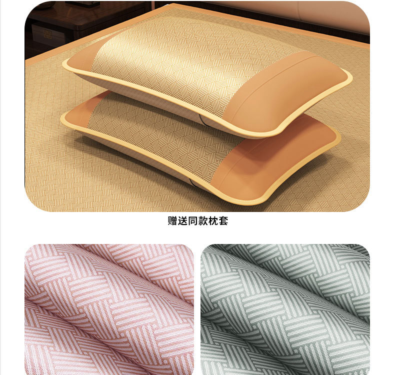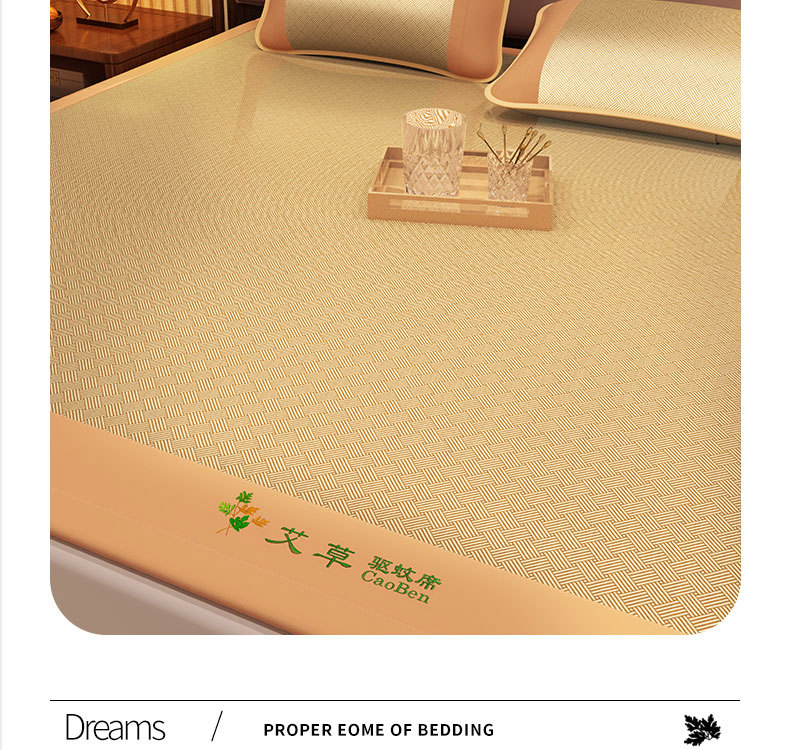 艾草藤席冰丝凉席 古藤席子家用可折叠草席夏季空调席三件套