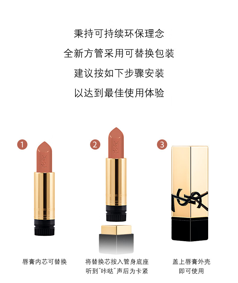 YSL圣罗兰 全新黑金浮雕方管口红3.8g