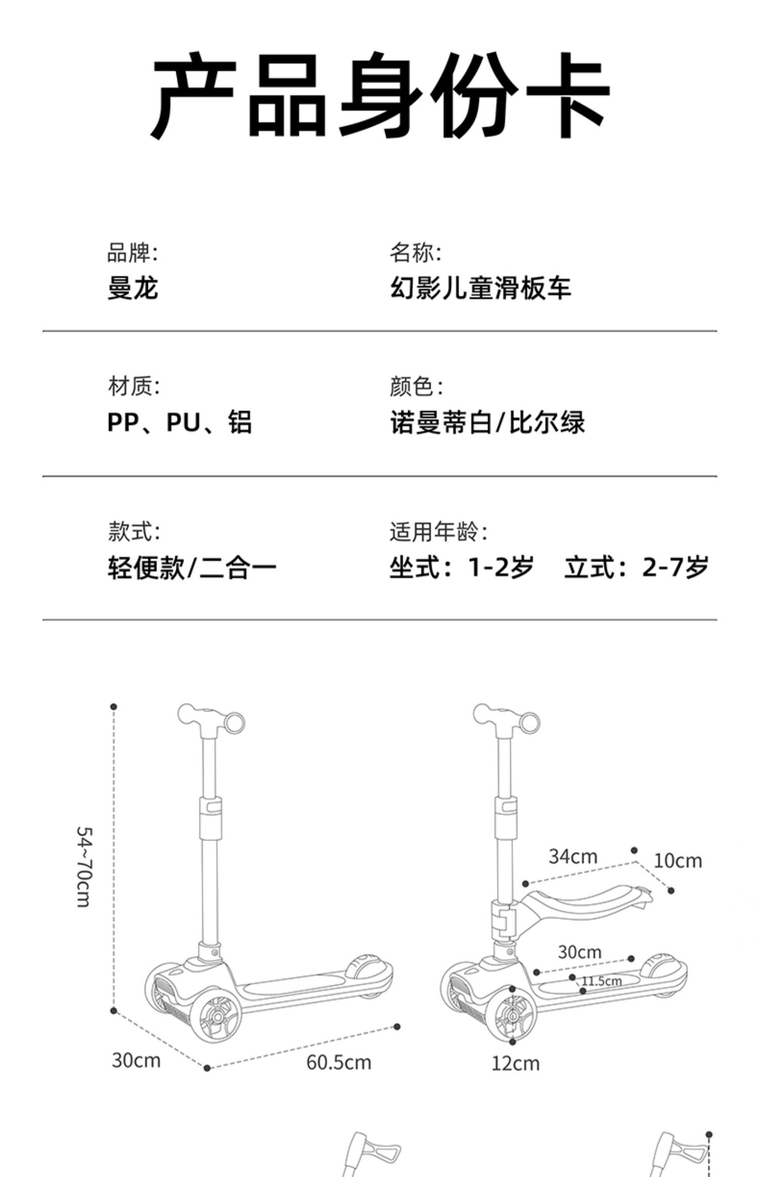 【冬日暖拥】曼龙mloong幻影儿童三合一滑板车1-3-6岁宝宝滑行车可折叠溜溜车男女孩