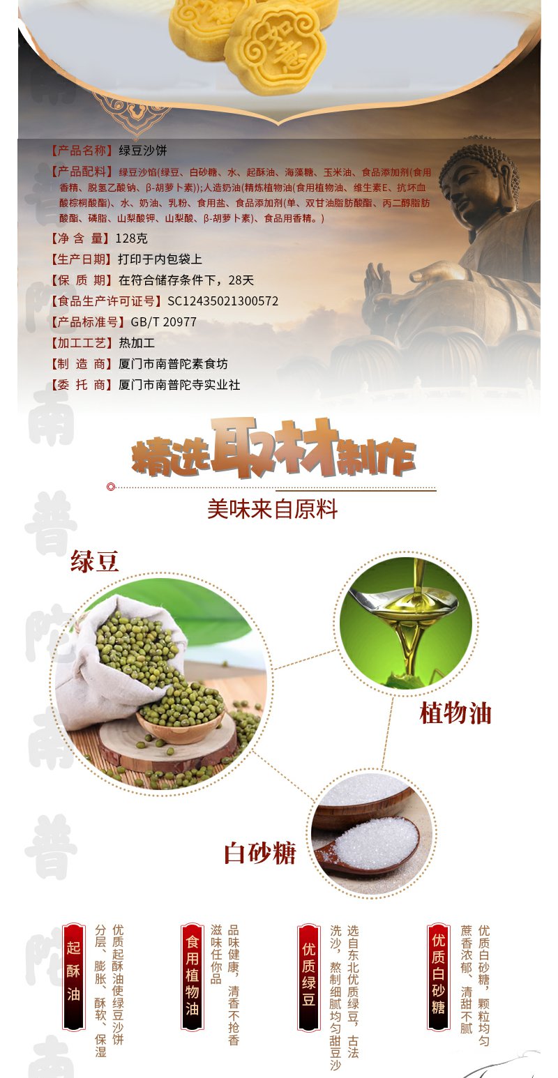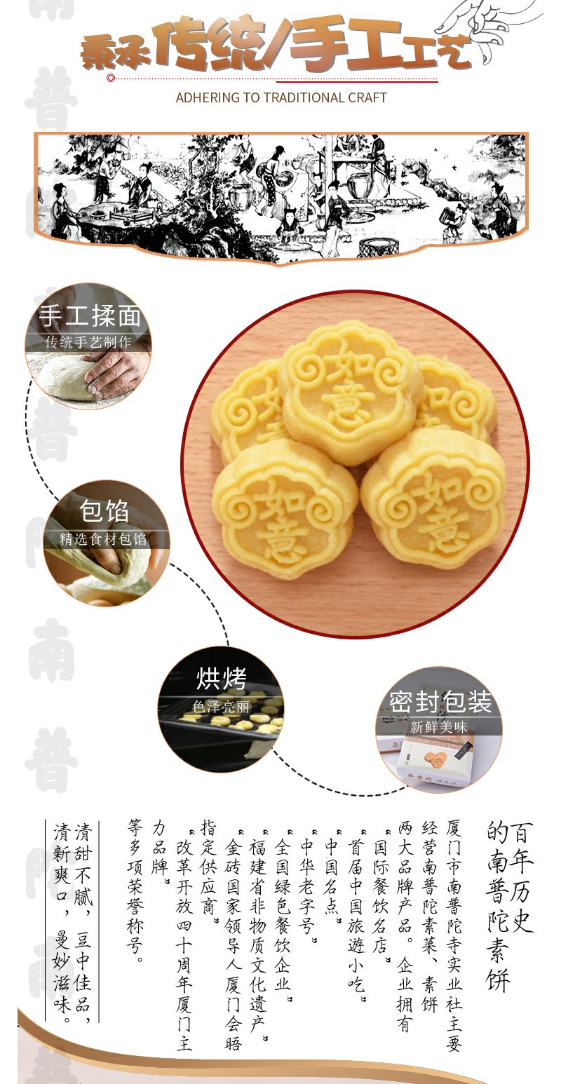 厂家直销 闽台特产 厦门南普陀素饼 馅饼 原味绿豆沙饼