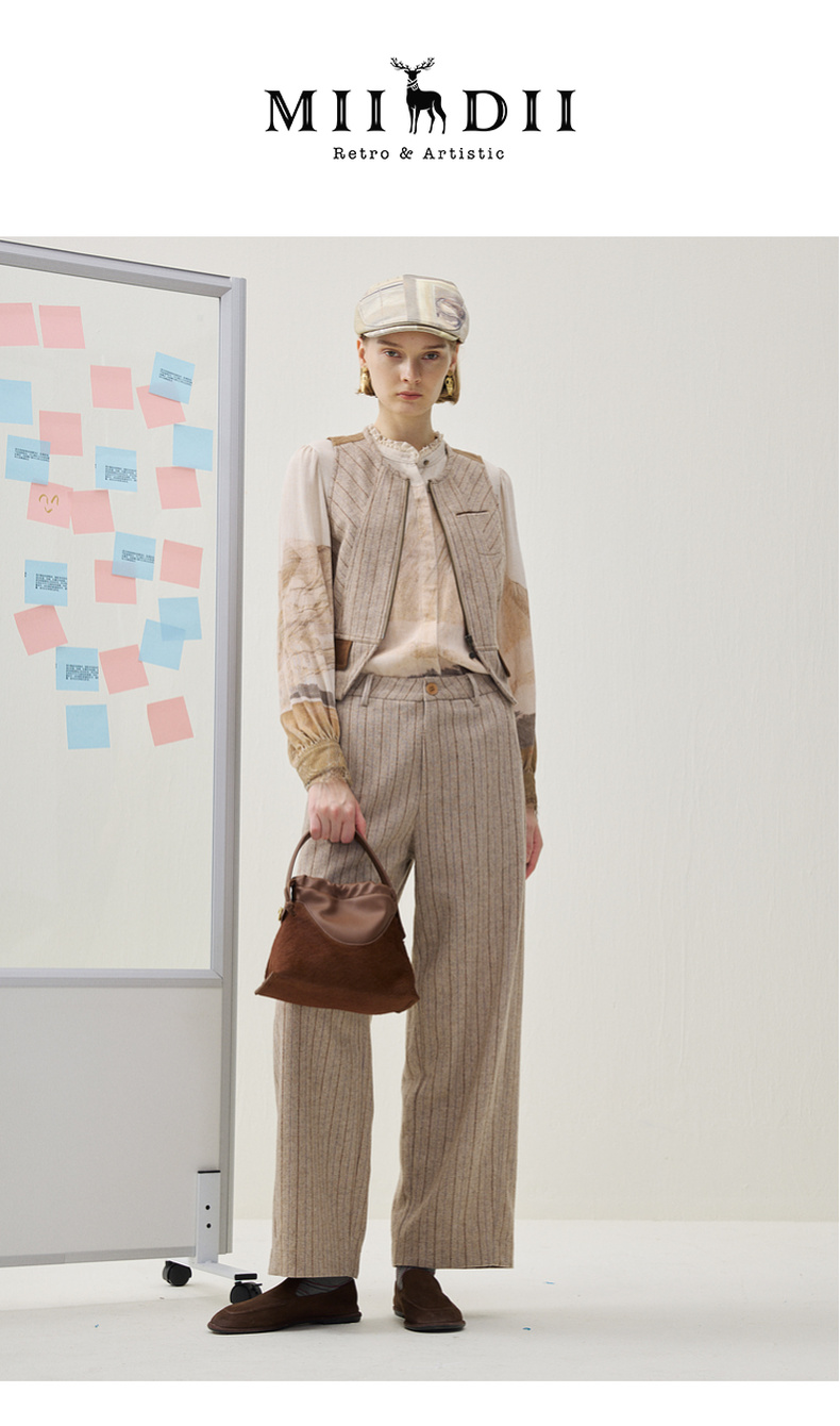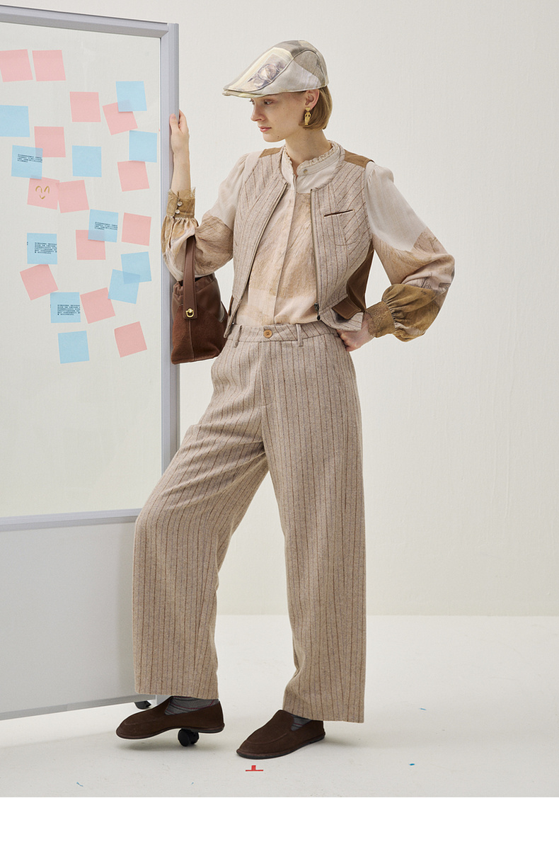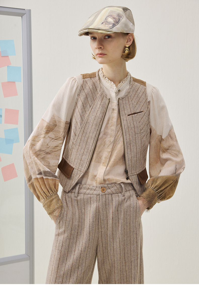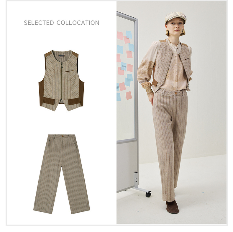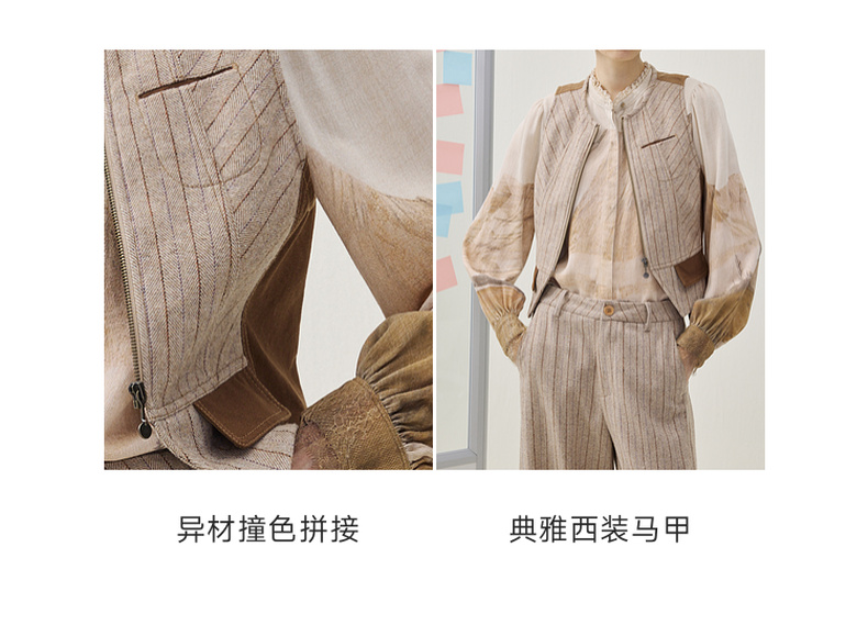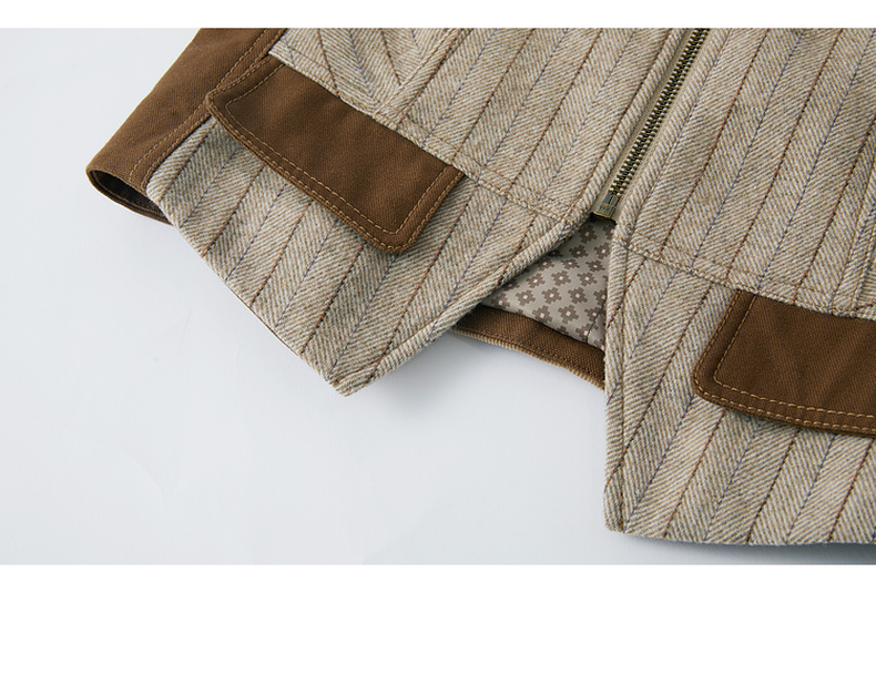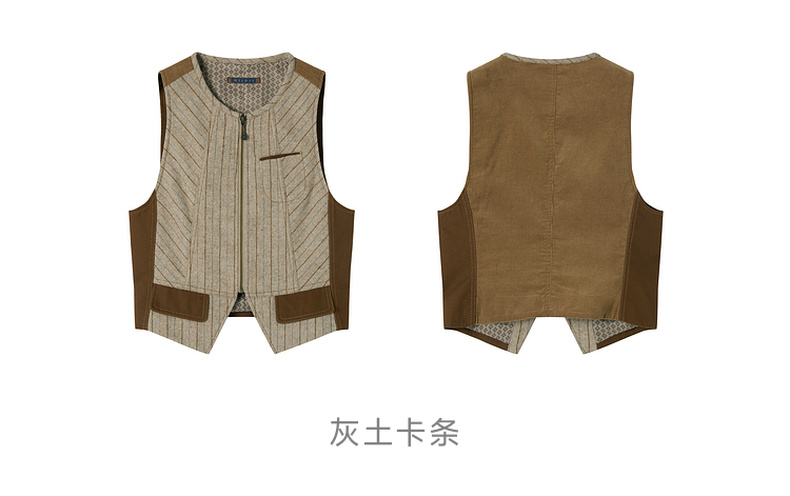 谜底复古马甲2025冬季新品斜纹拼接短款显高修身马夹女254MM1687