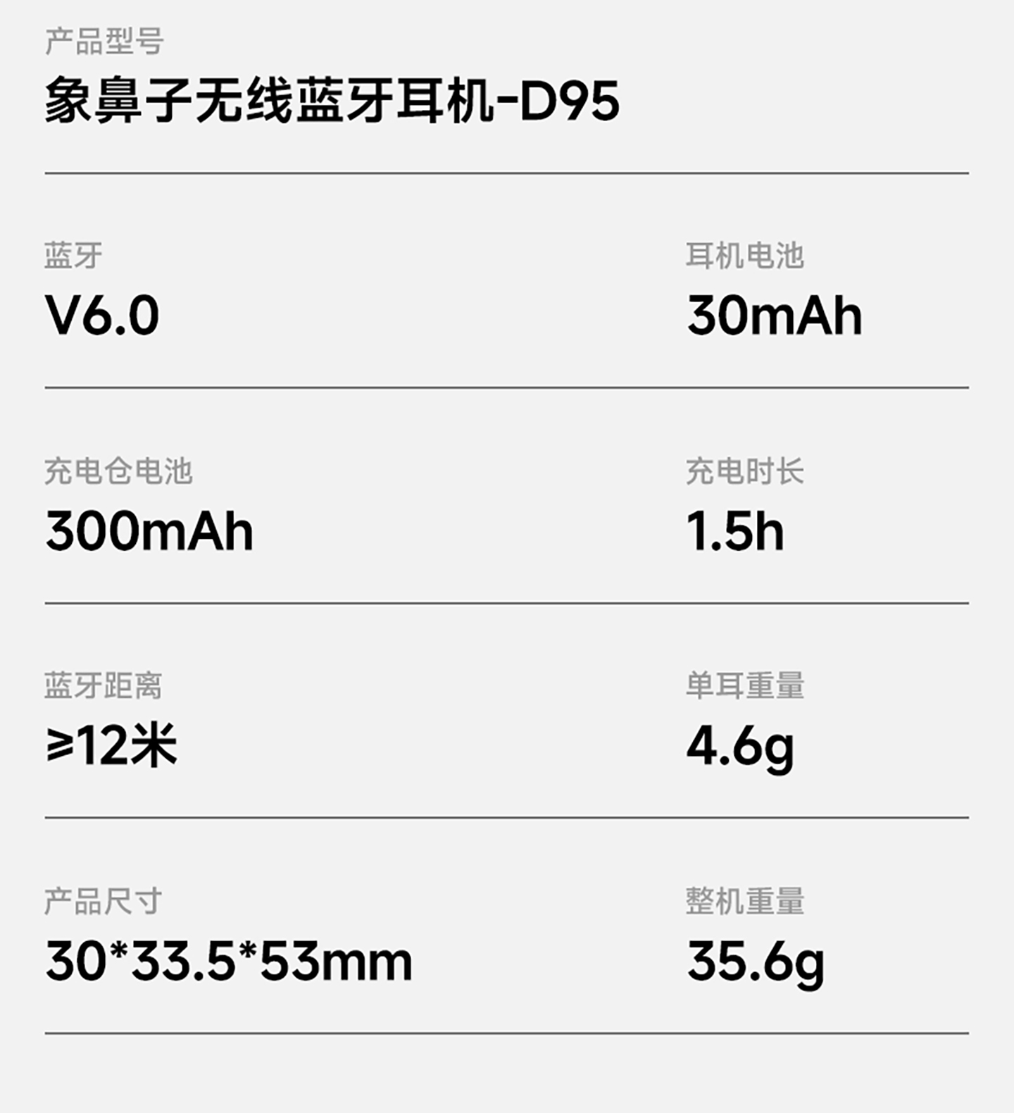 象鼻子魔豆系列夹耳式蓝牙耳机D95, 声控AI不变形 ,无感佩戴,狂甩不掉【G】