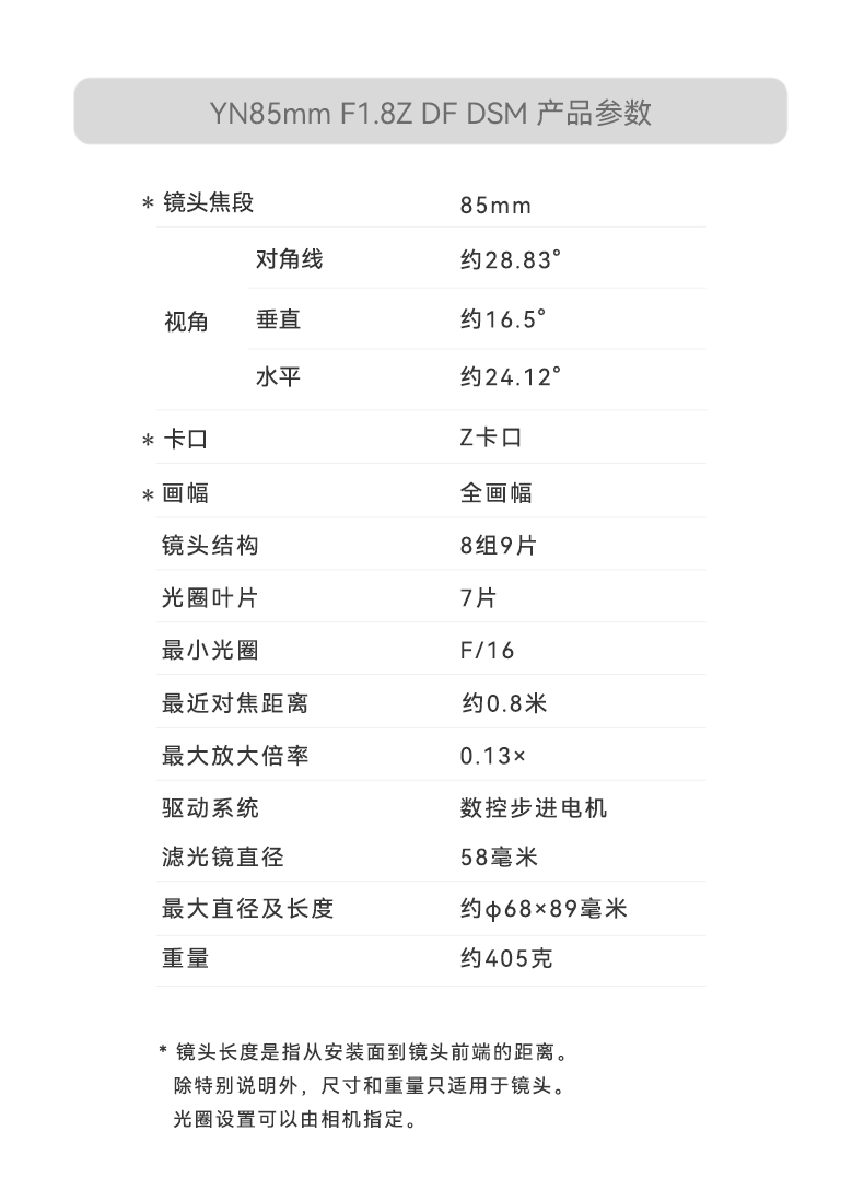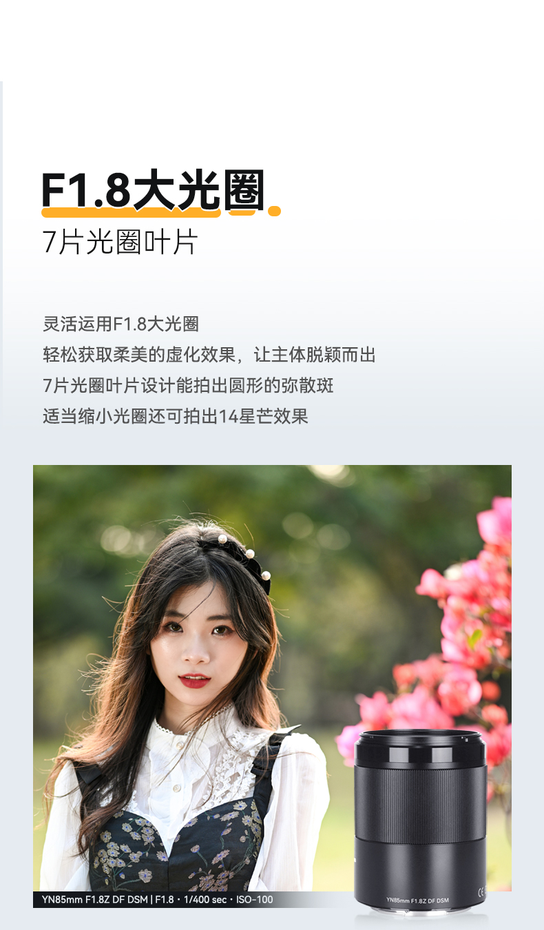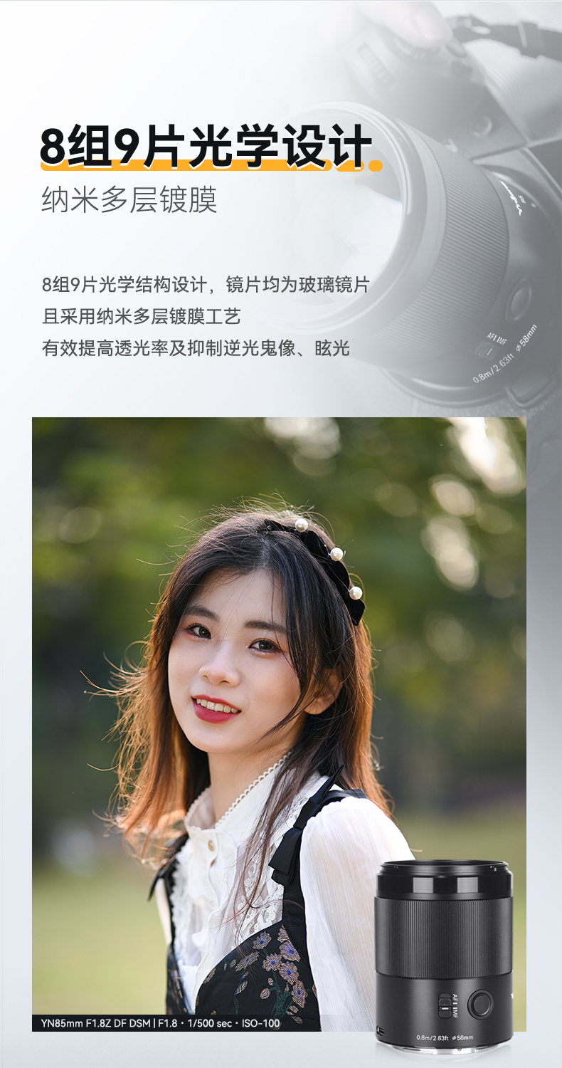 永诺85mm F1.8全画幅尼康Z卡口自动对焦镜头YN85mm F1.8Z DF DSM 【顺丰包邮,空运隔天到】