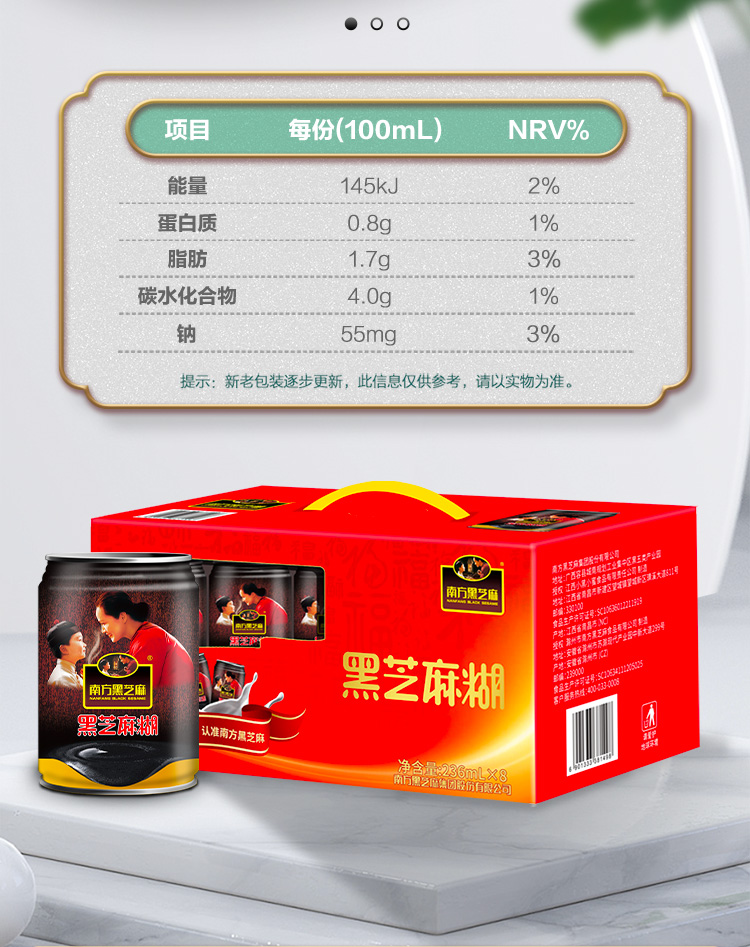 南方黑芝麻直饮罐装黑芝麻糊236ml*8植物蛋白饮品即食营养早餐送亲朋好友礼盒包装