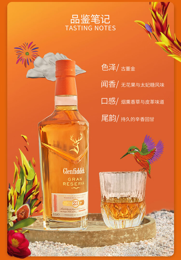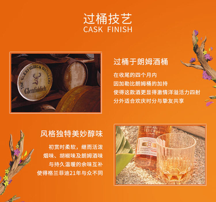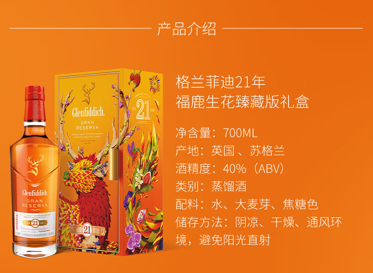 格兰菲迪21年苏格兰单一麦芽威士忌 700ml