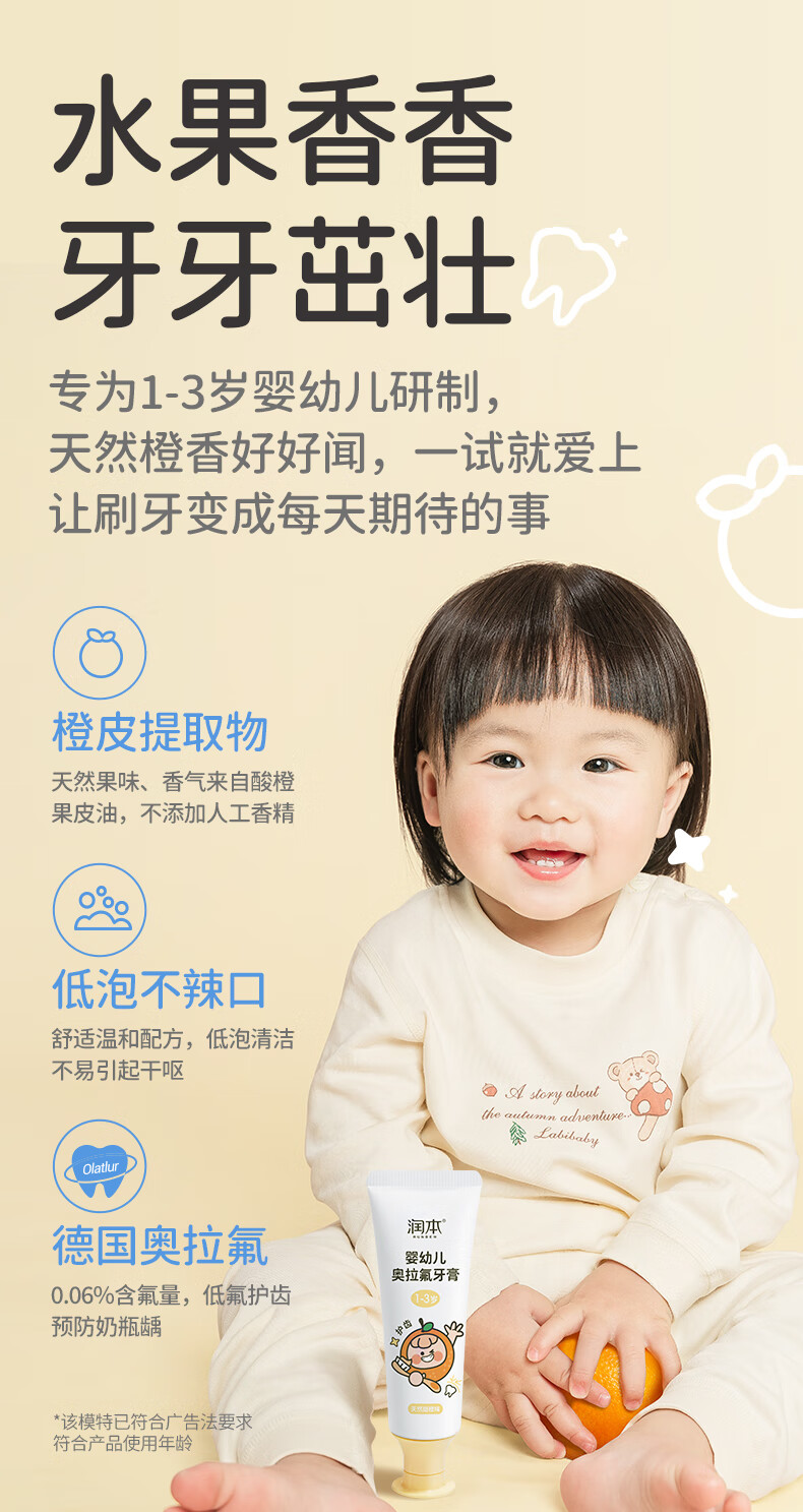 润本RUNBEN丨 婴幼儿奥拉氟牙膏1-3岁 50g/支