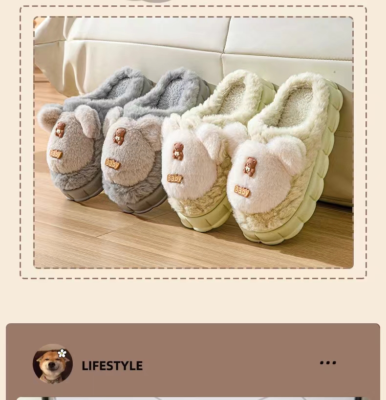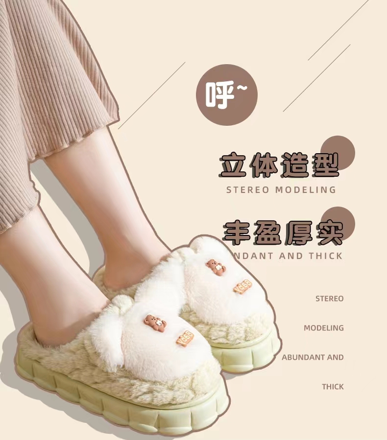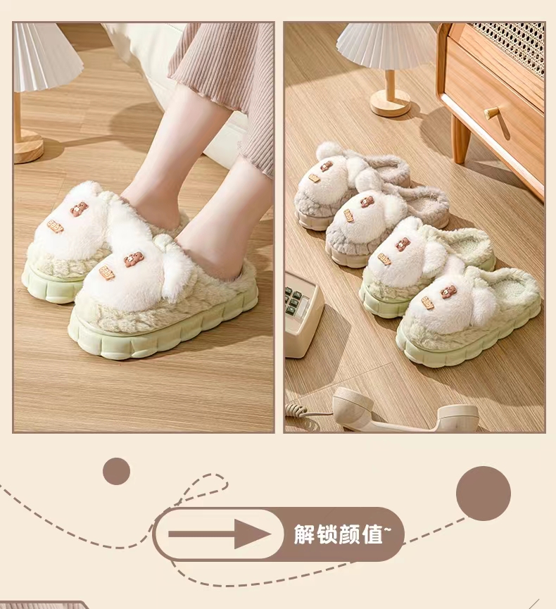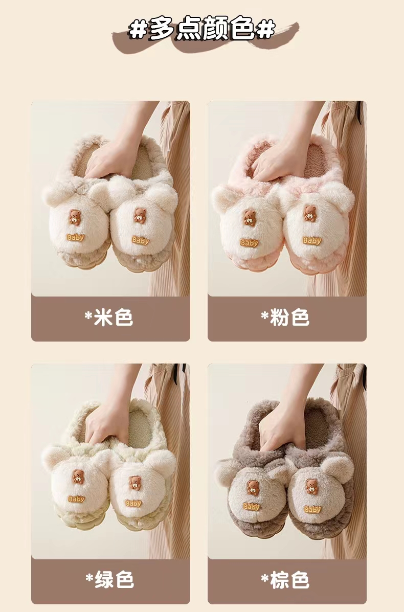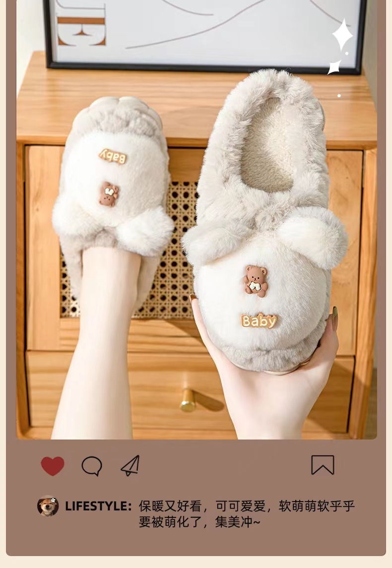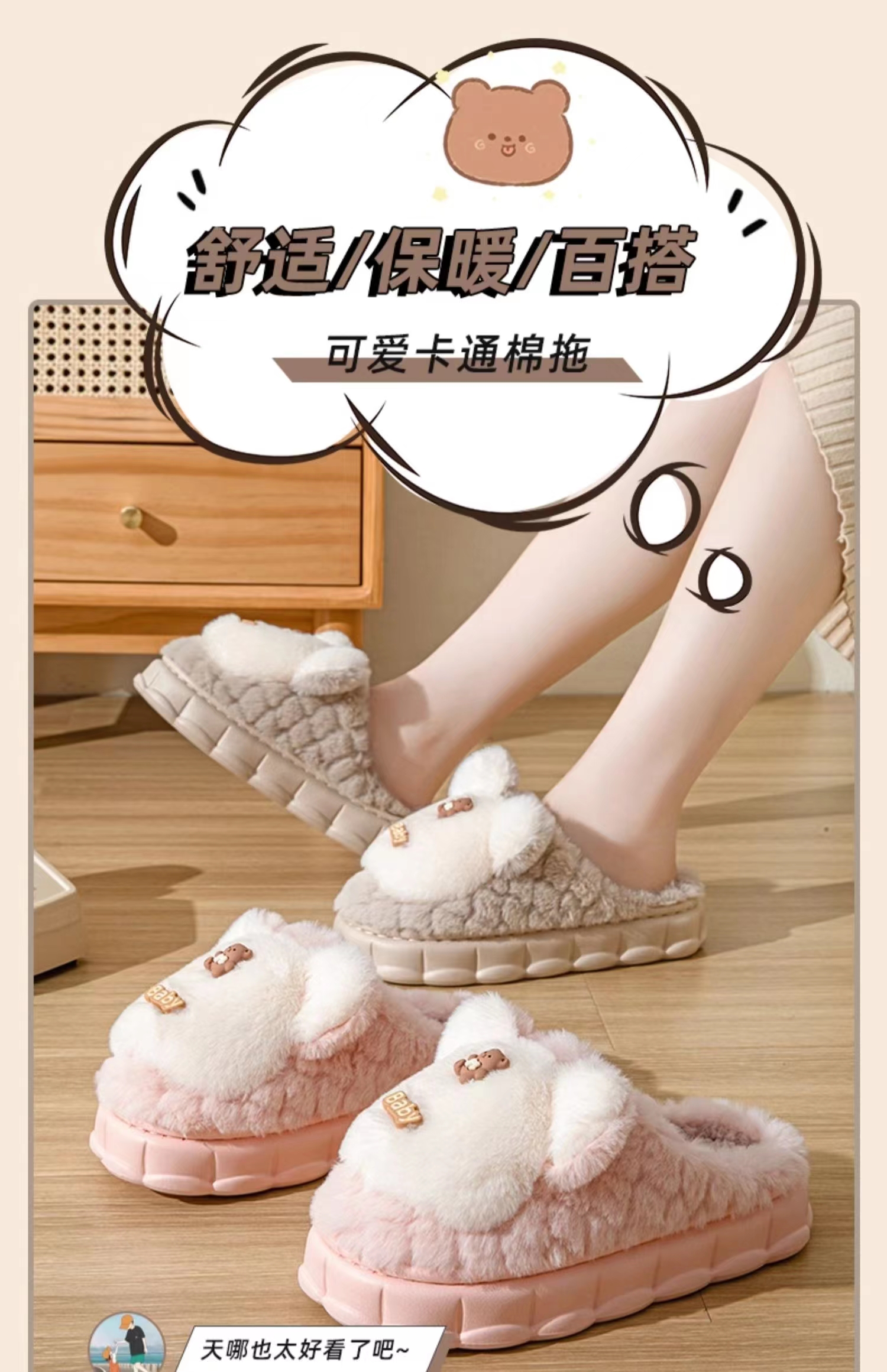【特价29元/39元】女士/中、大童小熊棉拖鞋室内家居保暖厚底毛绒拖鞋【WG23106C/W】