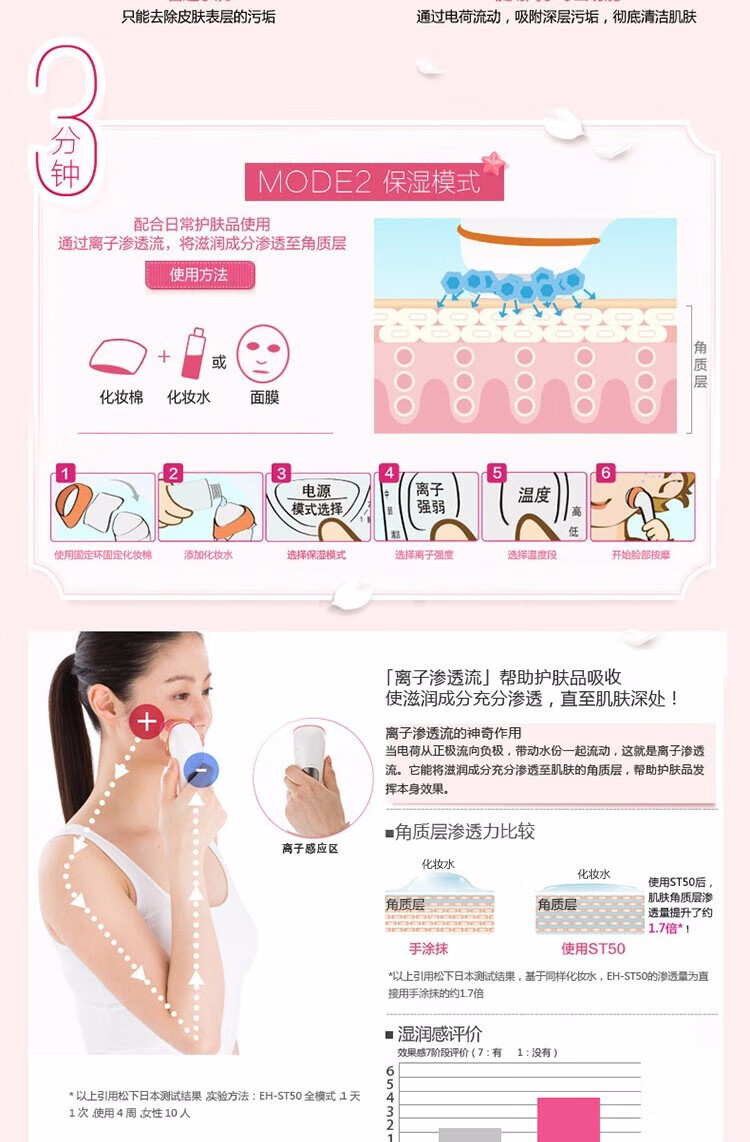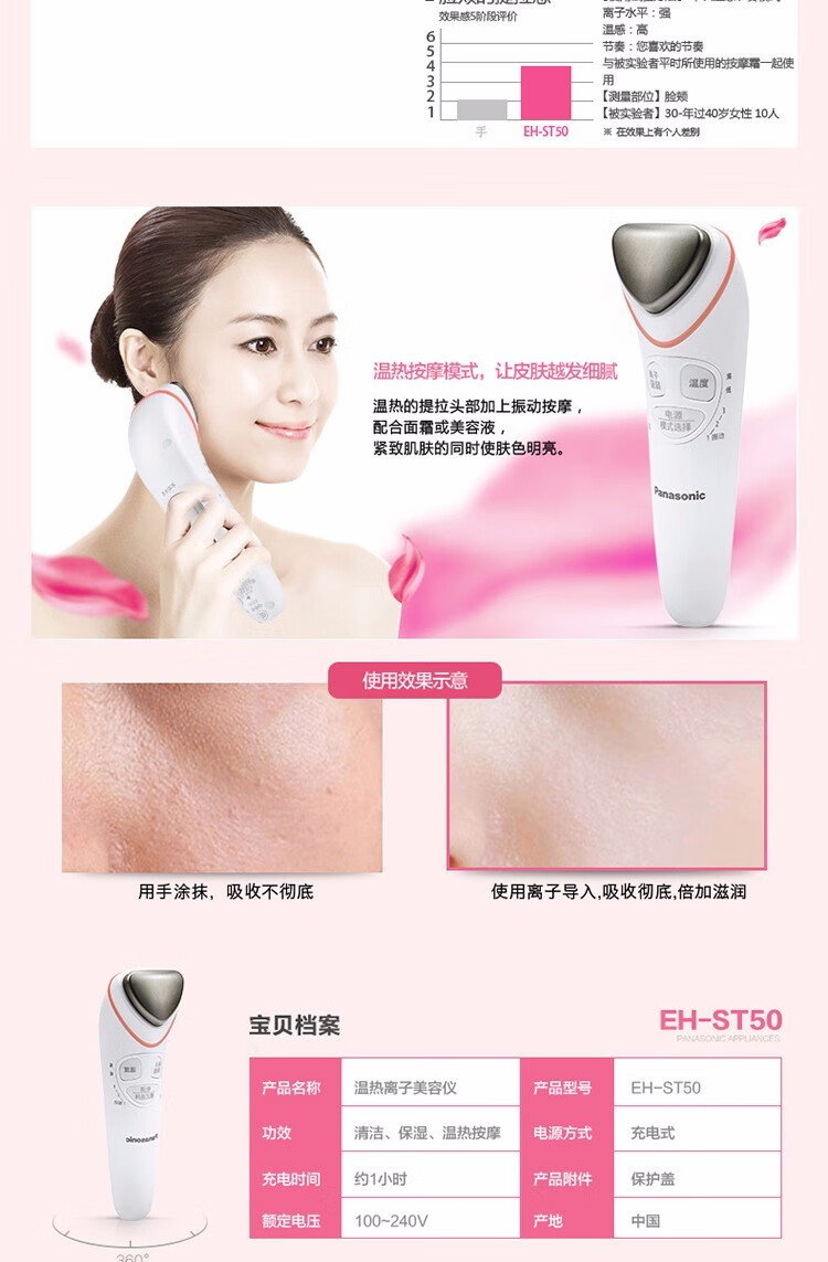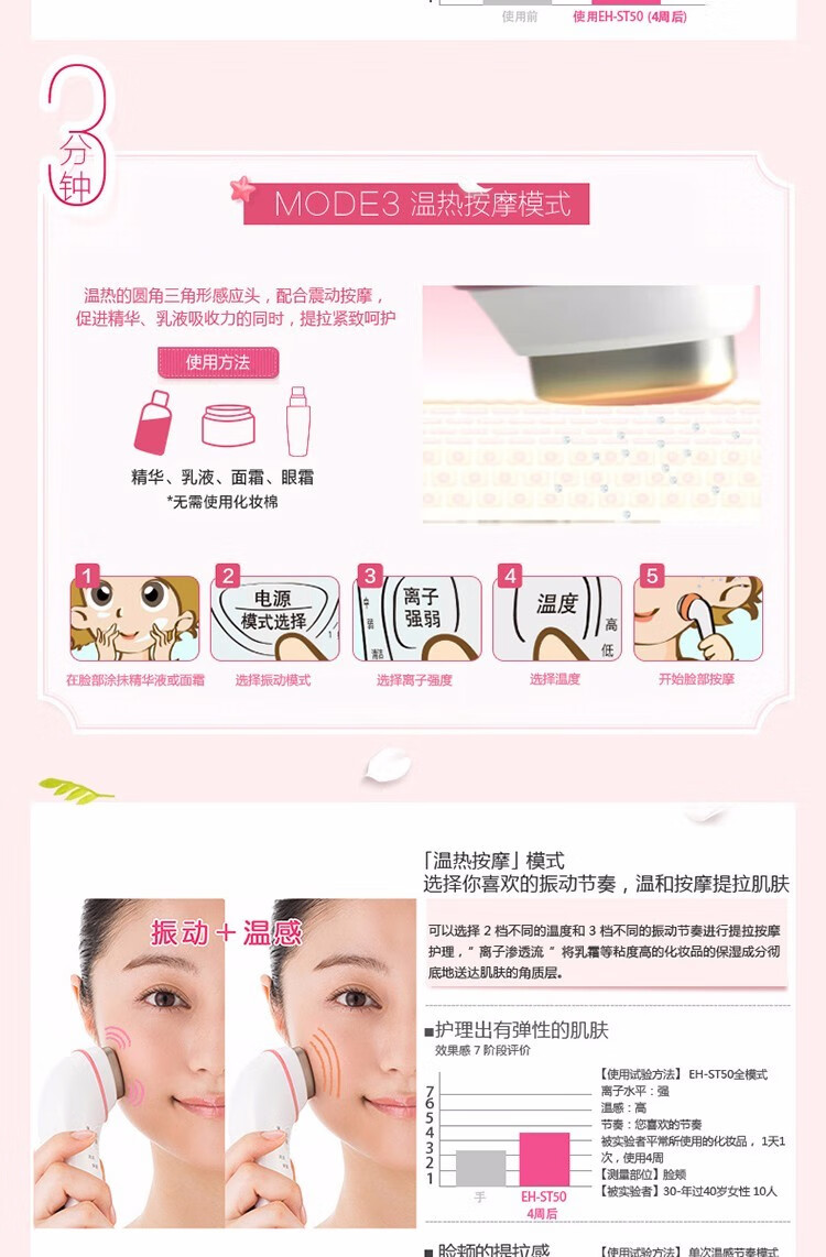 松下(Panasonic)温热离子美容器家用清洁器多功能美肤仪EH-ST50/台