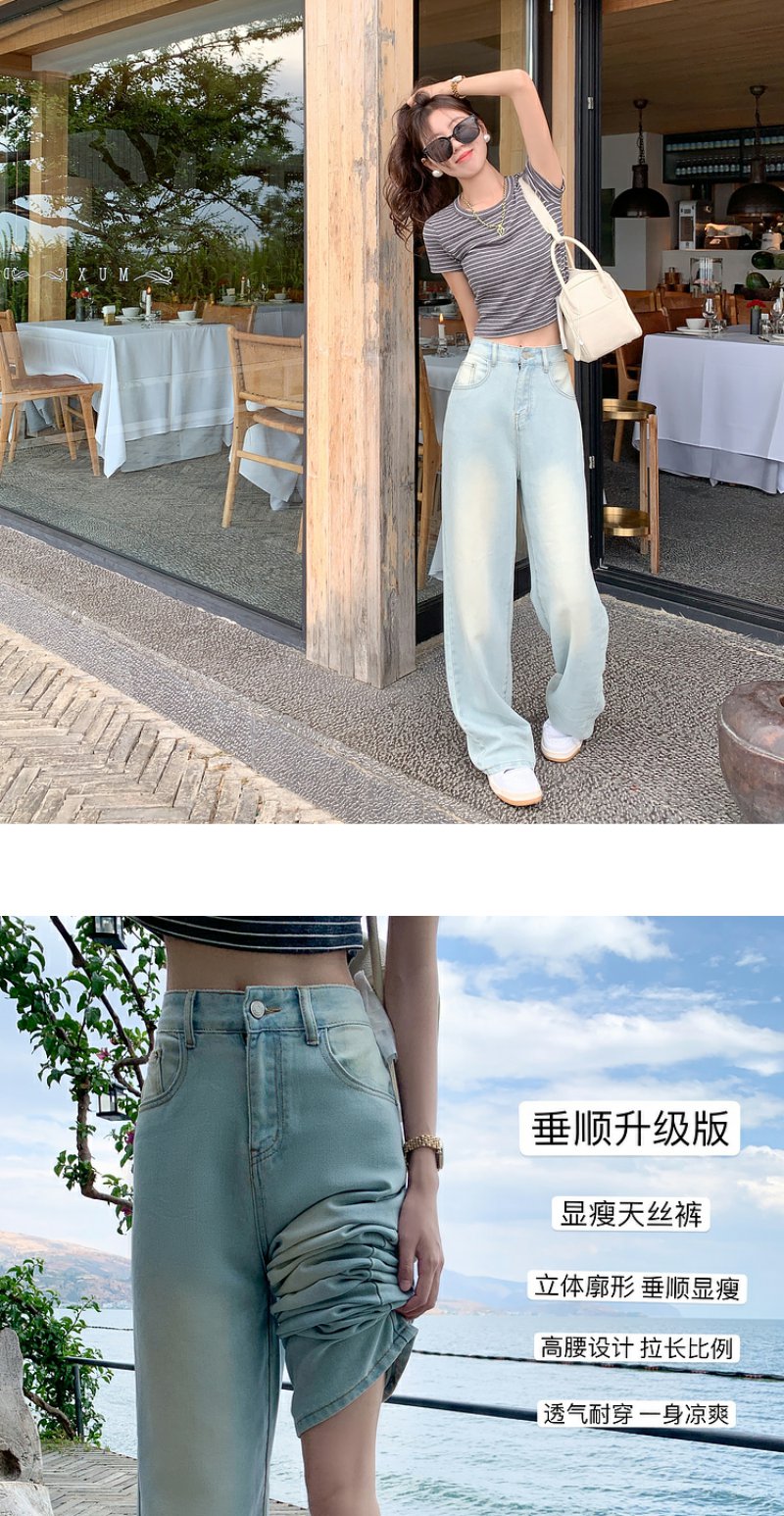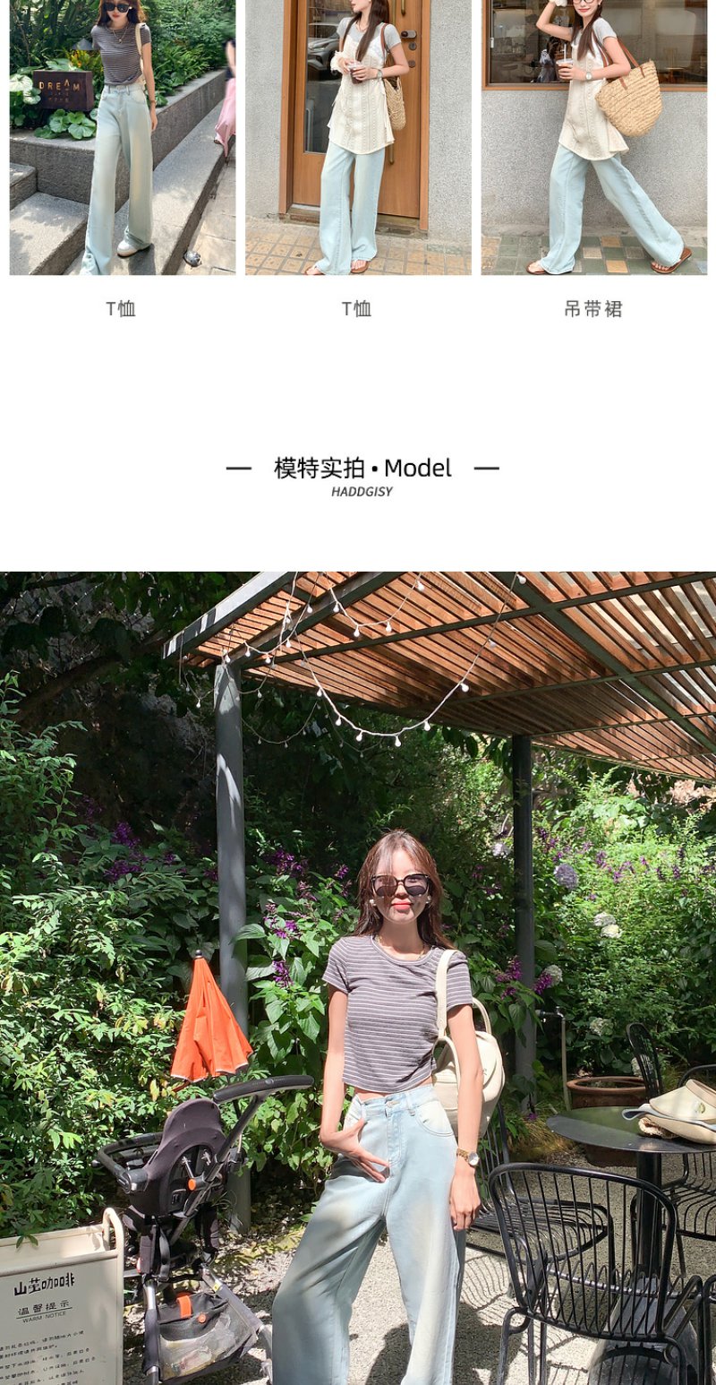 <曾小咸推荐>【笔直大长腿】浅蓝色牛仔阔腿裤