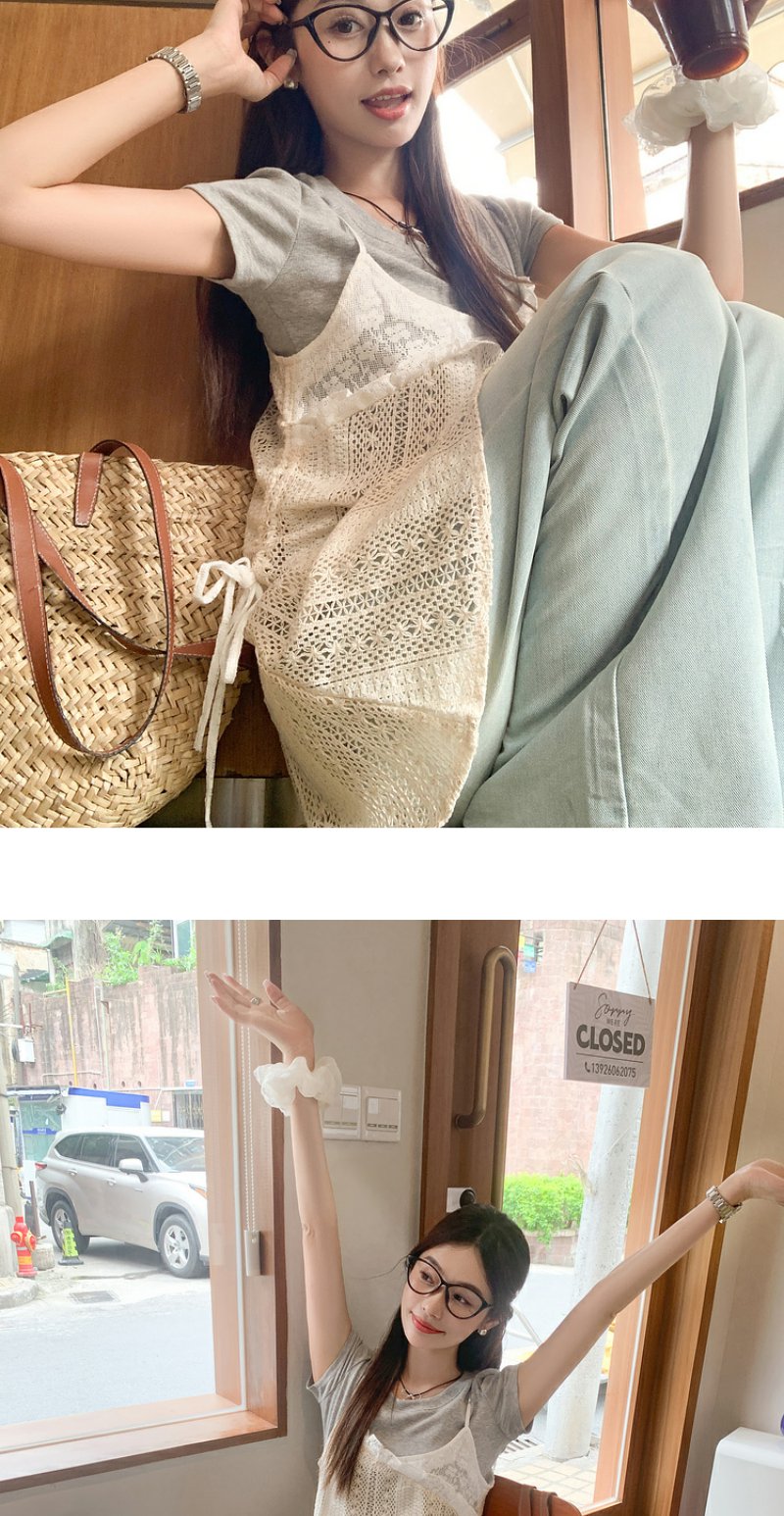 <曾小咸推荐>3.27现货秒杀 !微信超特价!镂空罩衫+吊带连衣裙套装 日常289.99 立减160 秒杀129.99!!