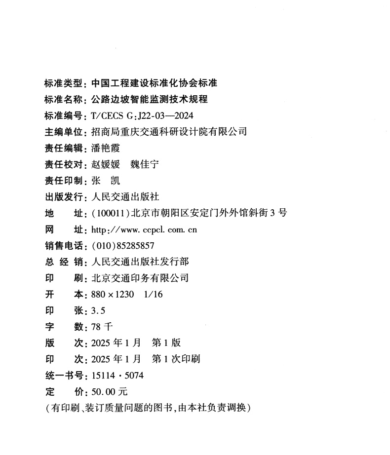 书名:公路边坡智能监测技术规程( T/CECS G:J22-03—2024)