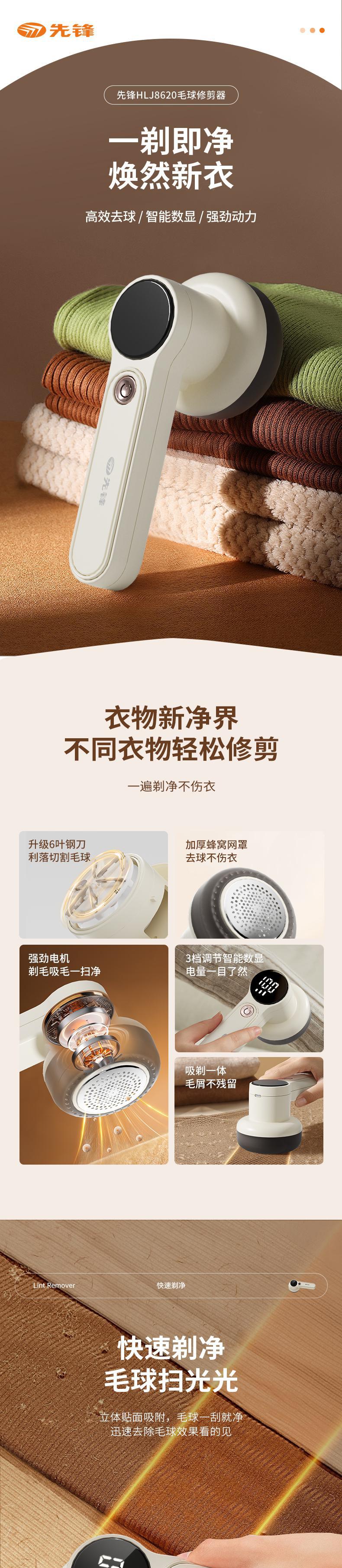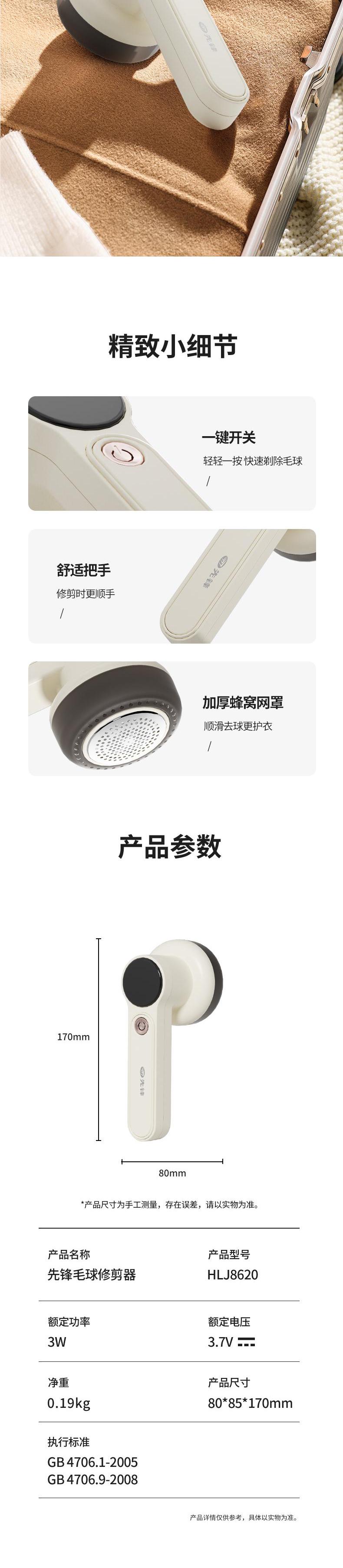 【自营】先锋毛球修剪器HLJ8620剃毛器去球机衣服除毛充电式快速去球不伤衣
