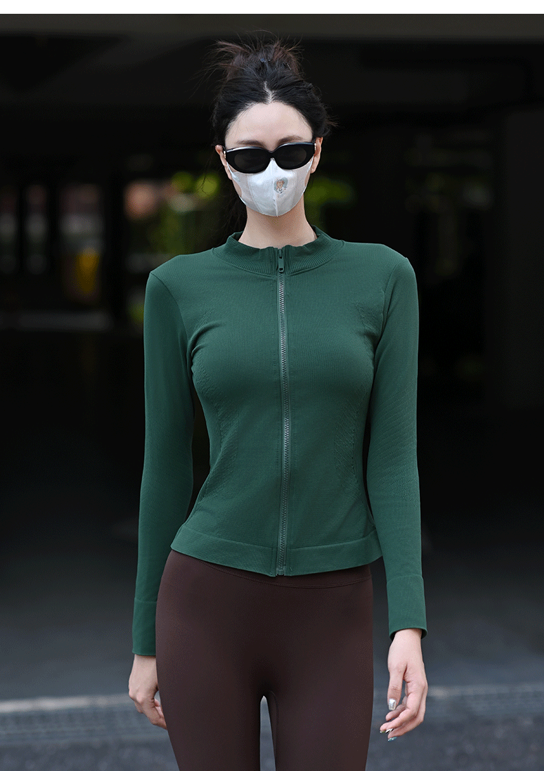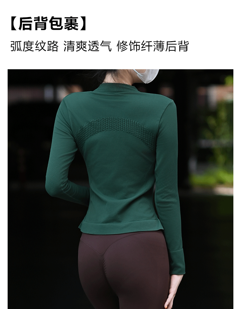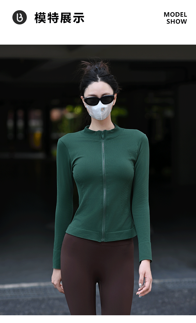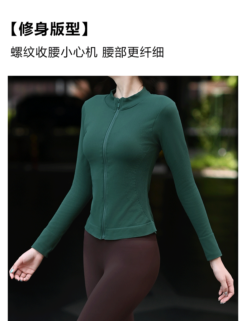 Beenem秋冬女瑜伽外套 螺纹收腰显纤细 后背弧度纹路 四面弹力不紧绷 修身拉高比例