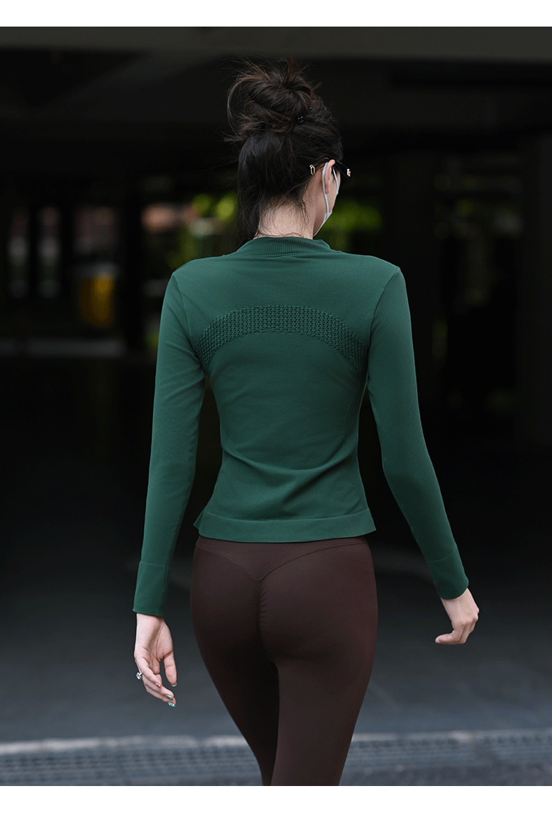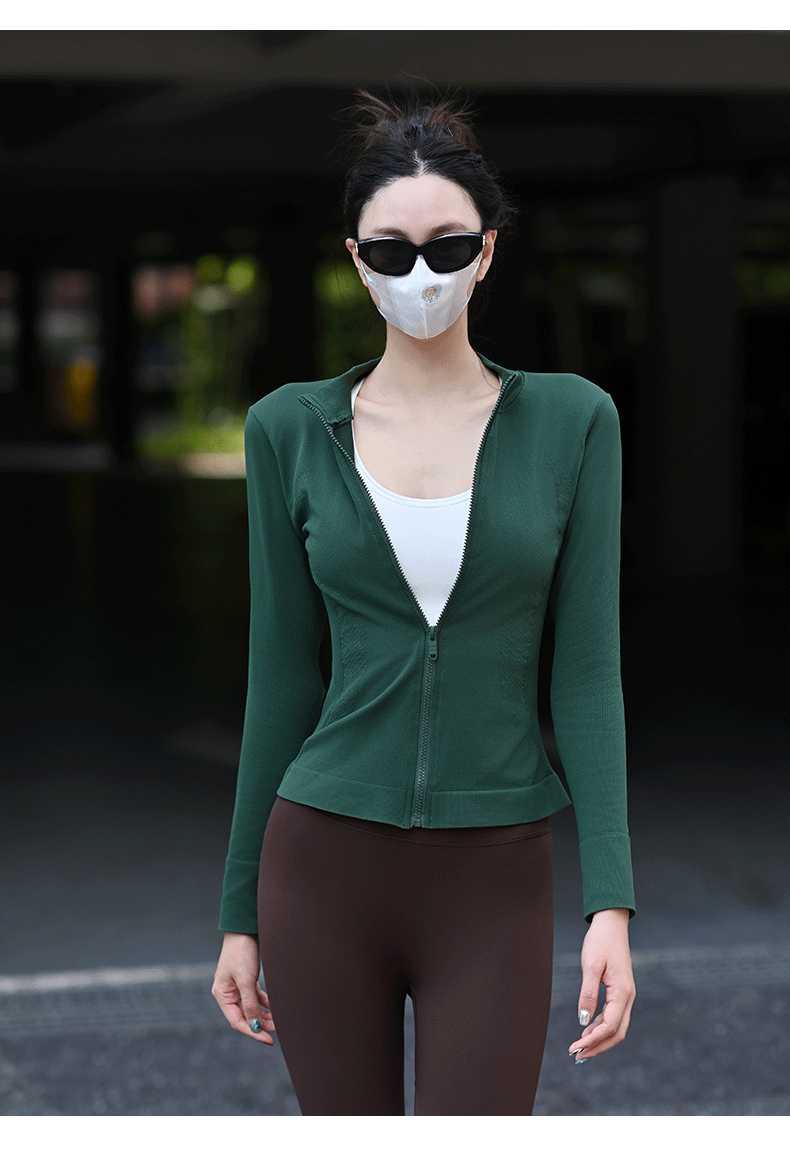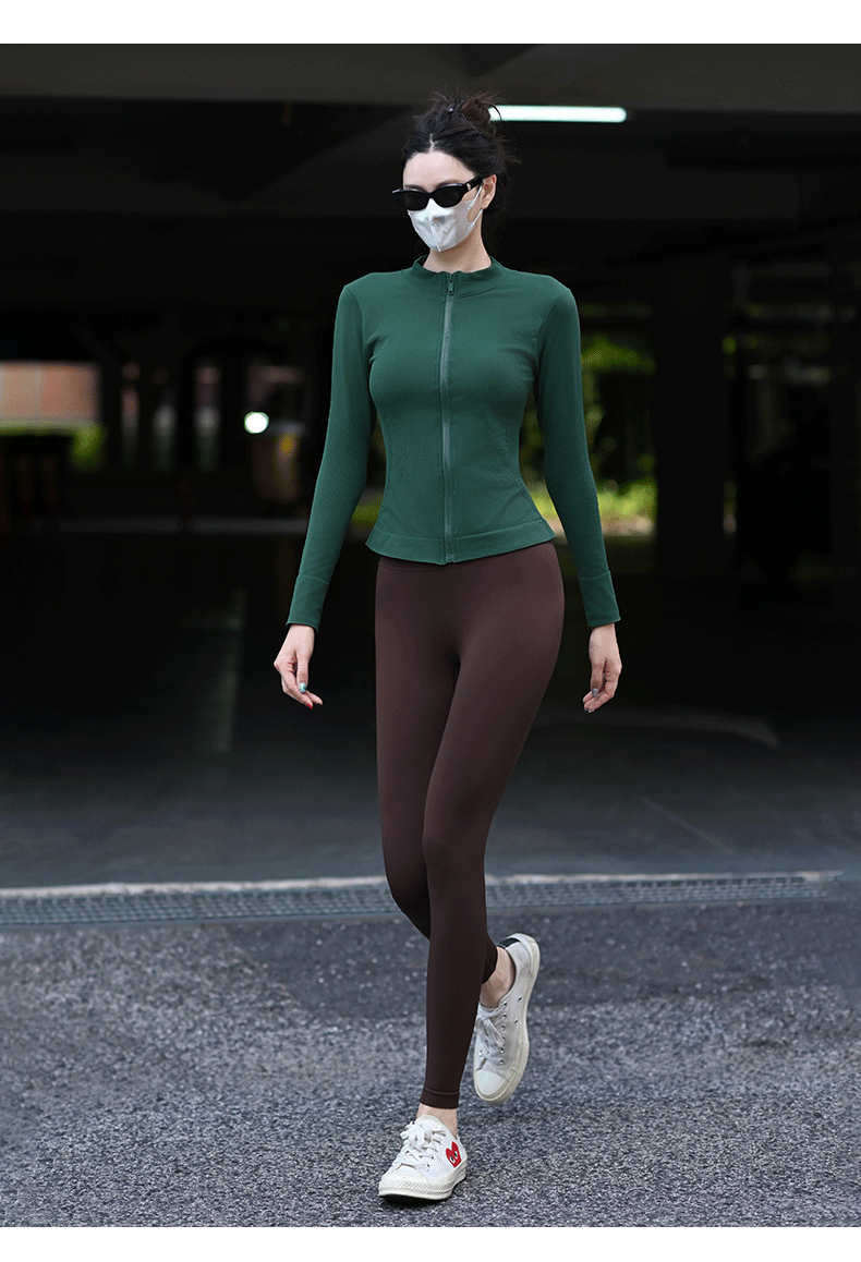 Beenem秋冬女瑜伽外套 螺纹收腰显纤细 后背弧度纹路 四面弹力不紧绷 修身拉高比例