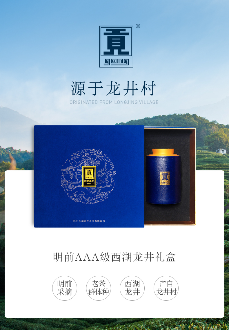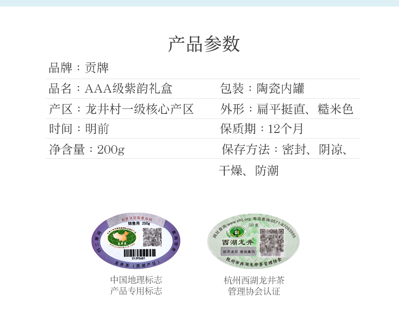 西湖龙井】贡牌】明前AAA级西湖龙井紫韵礼盒