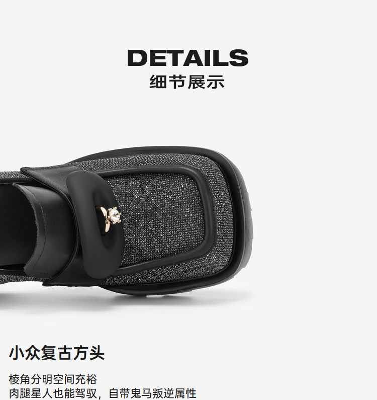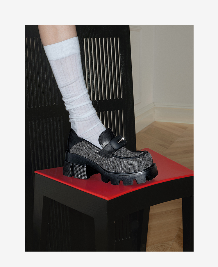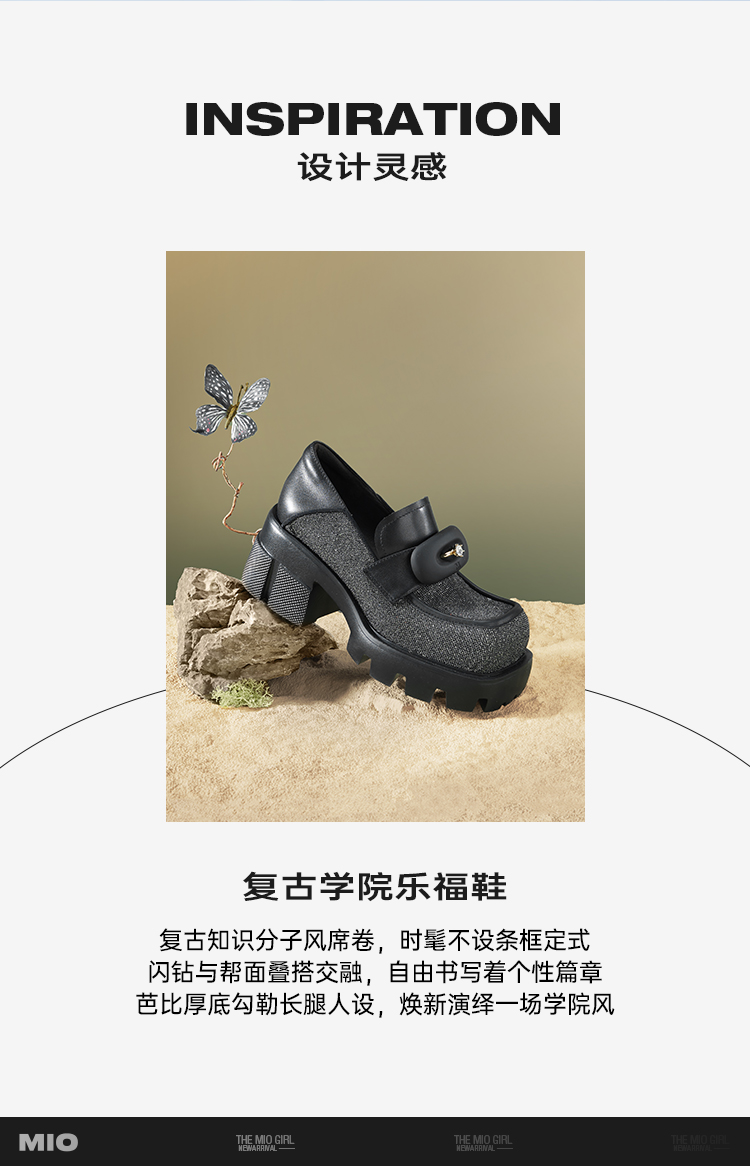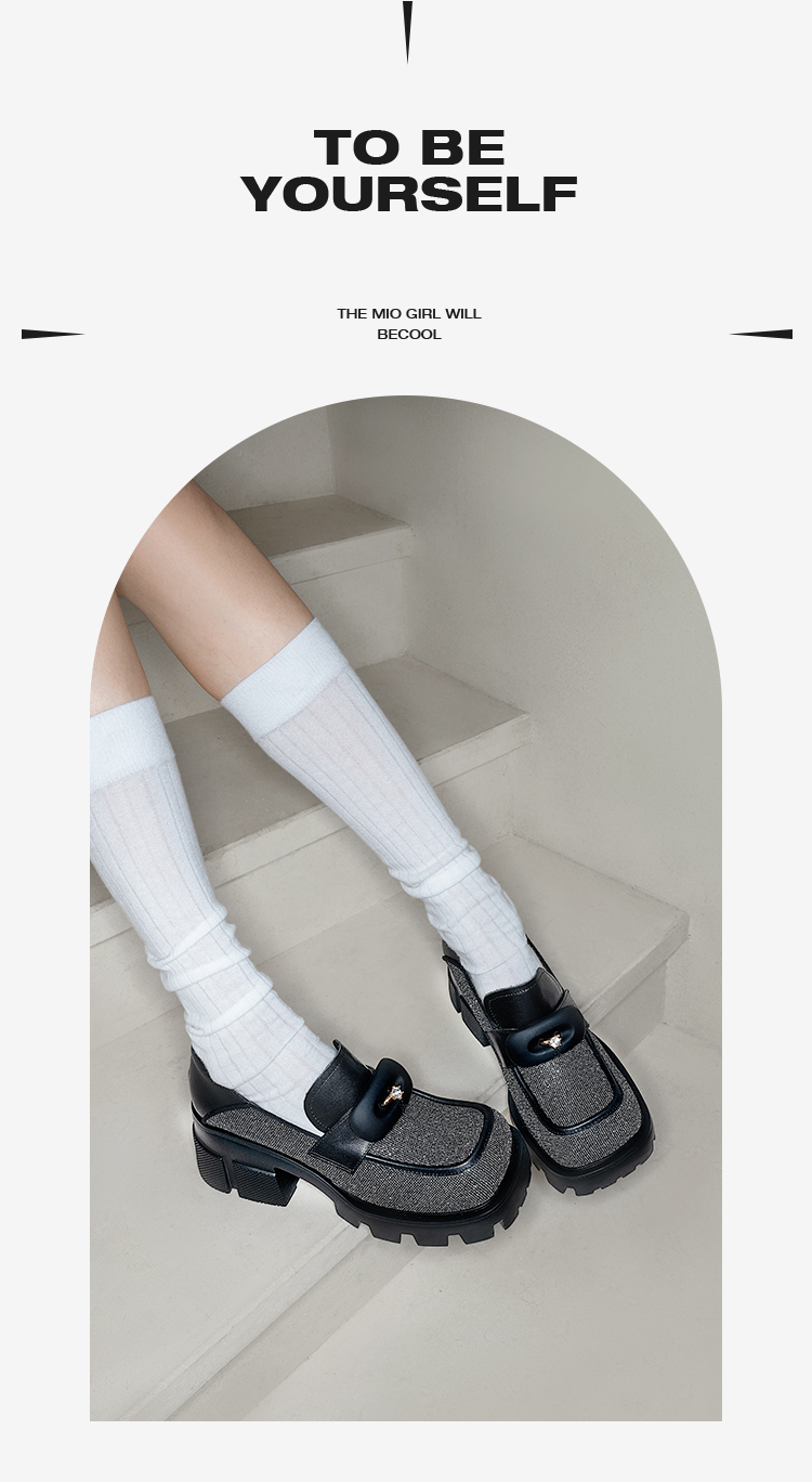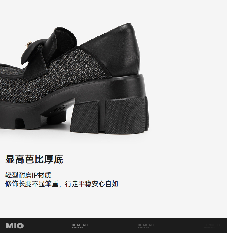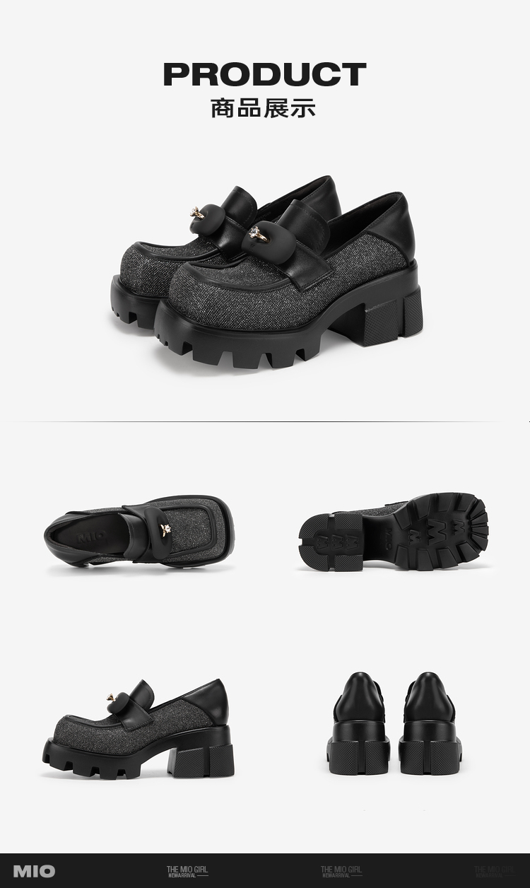 MIO米奥秋季方头高跟黑色乐福鞋复古学院通勤深口单鞋女鞋M241530257C01