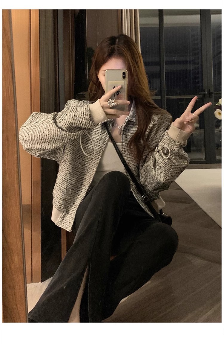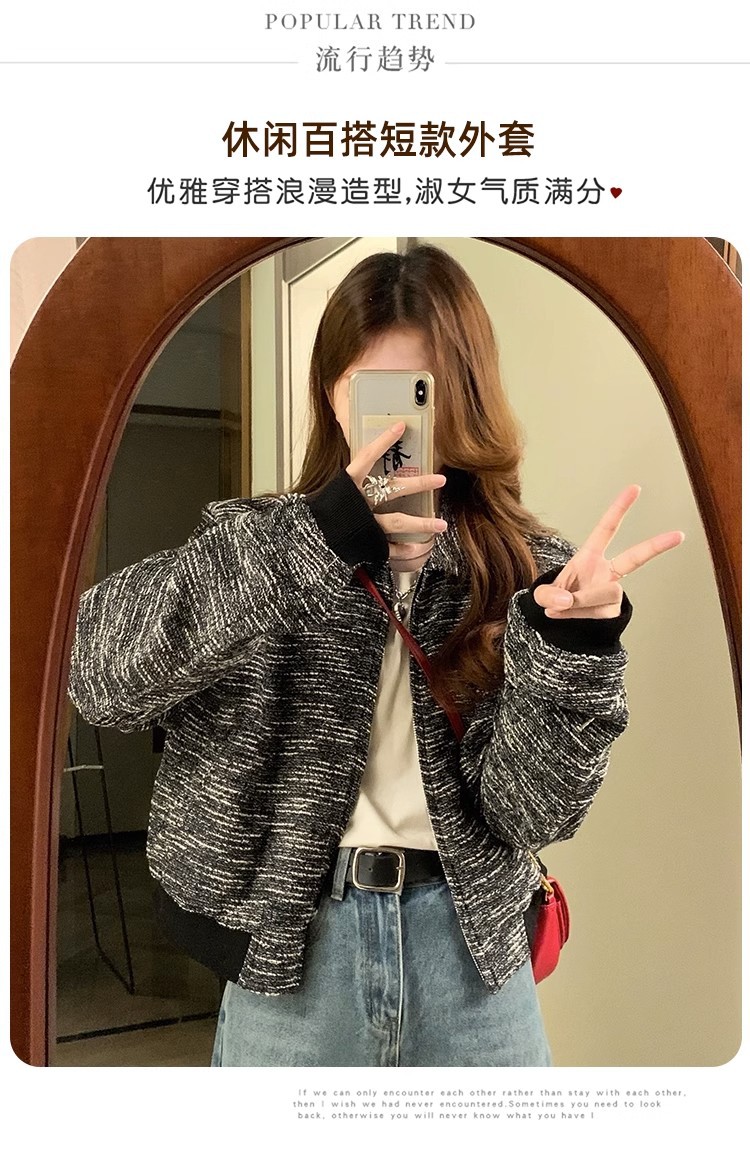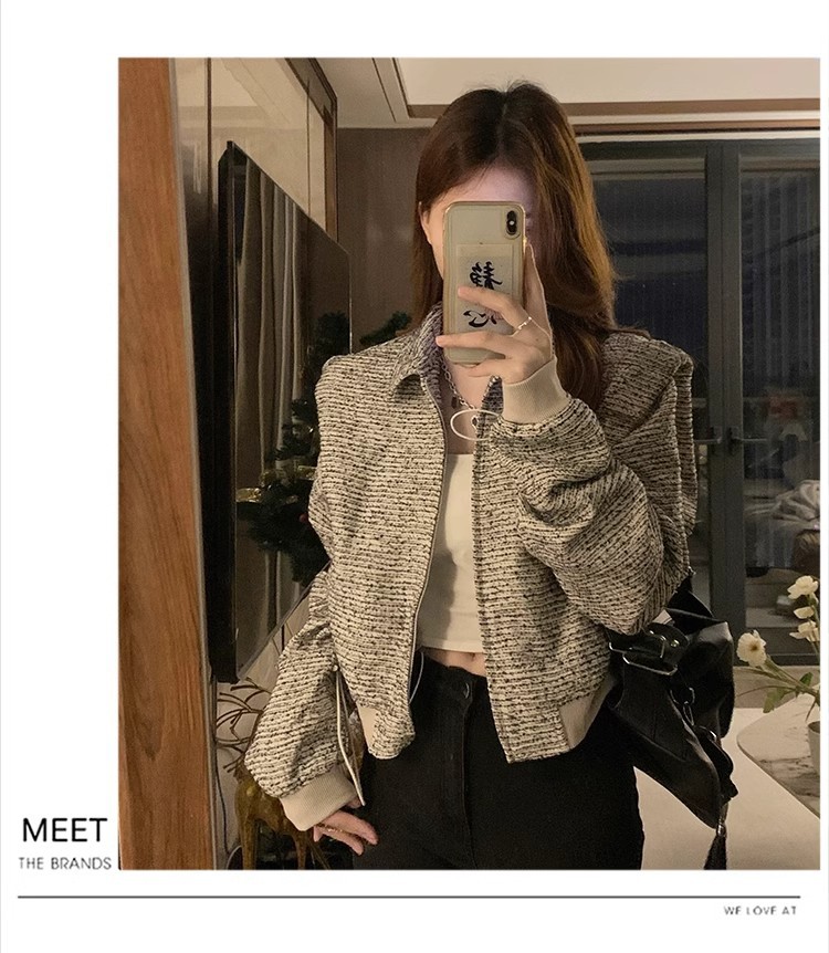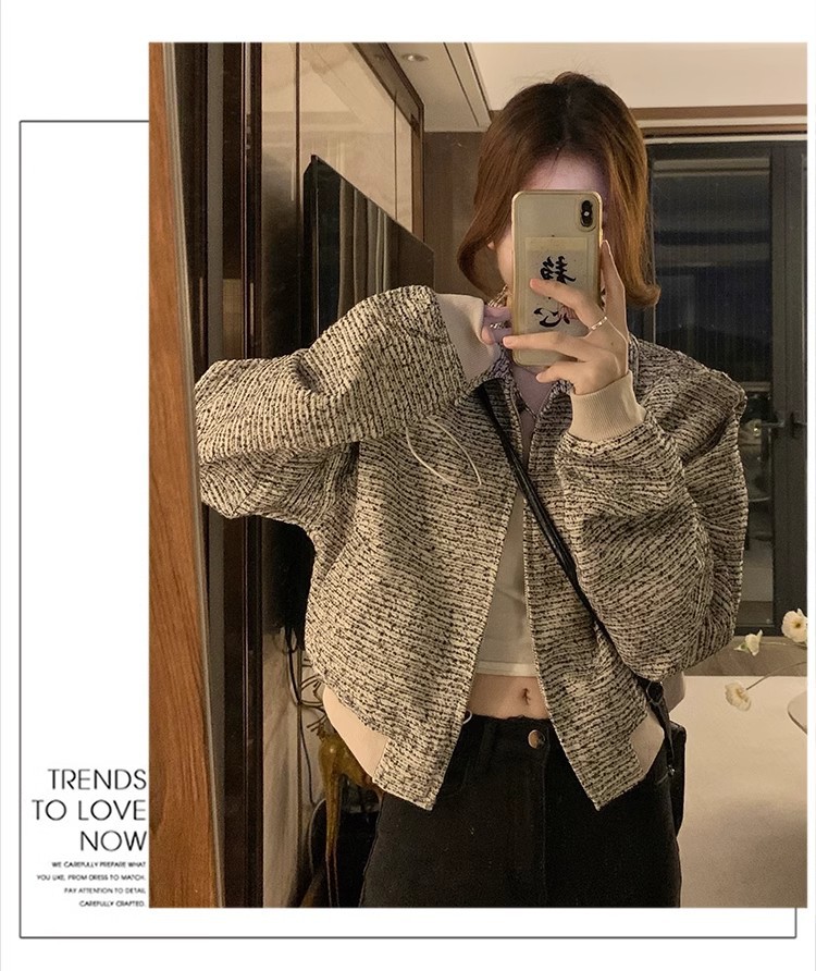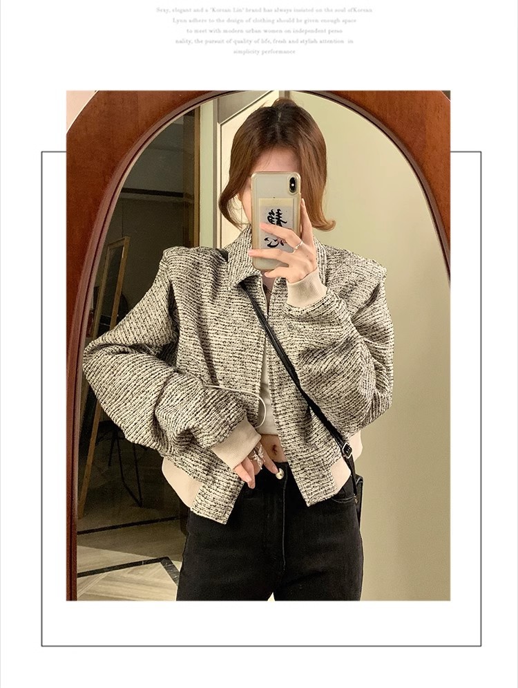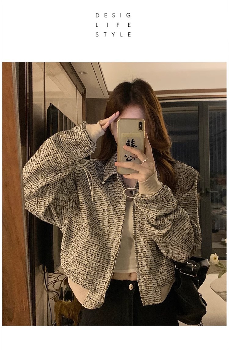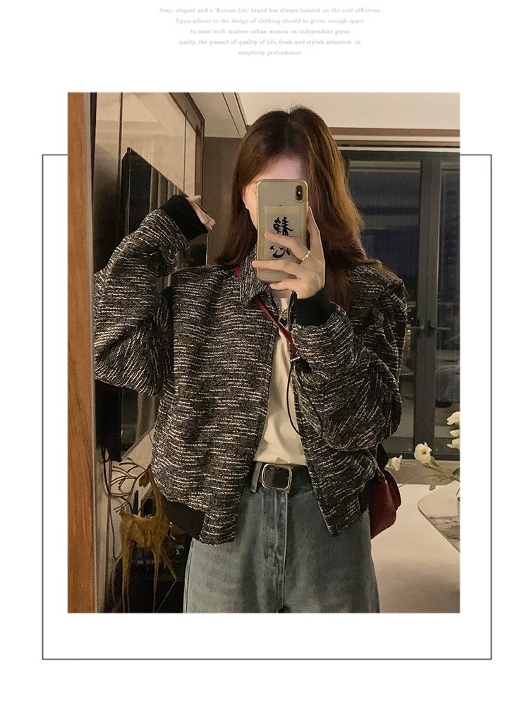 韩版短款小香风外套设计感小众女春秋款宽松vintage休闲夹克上衣