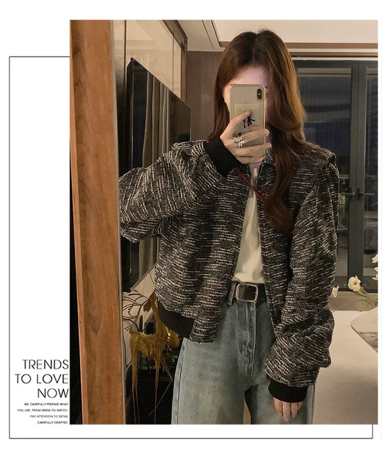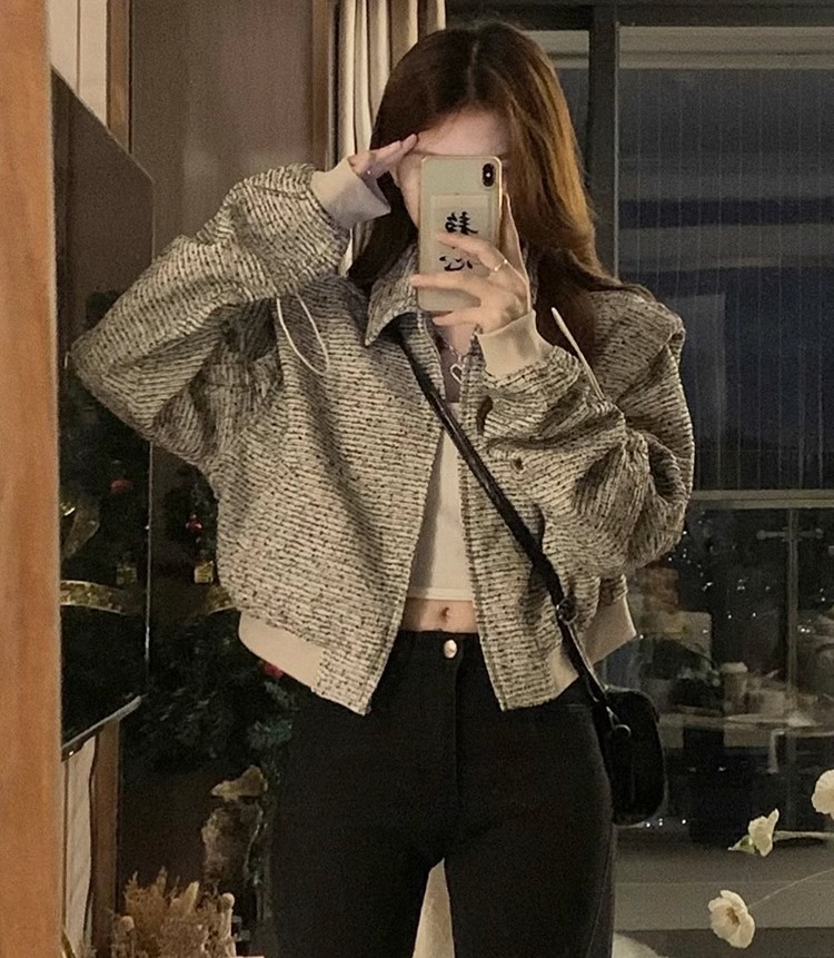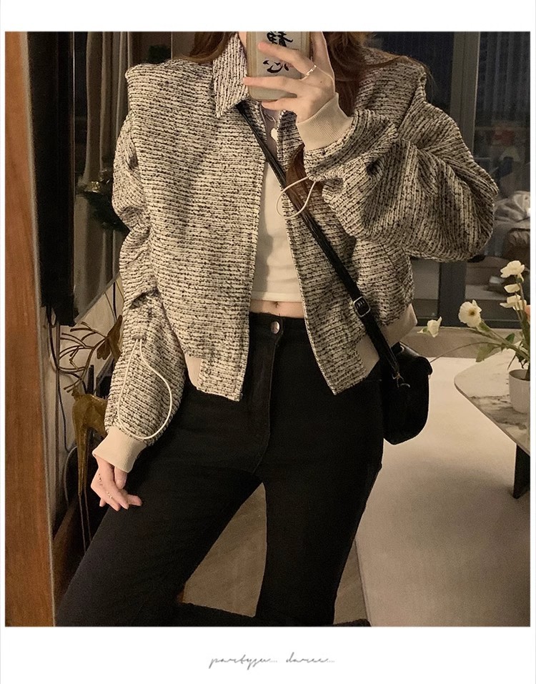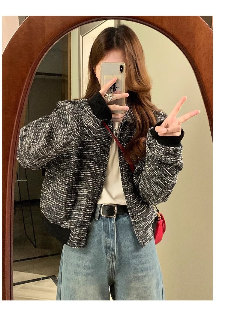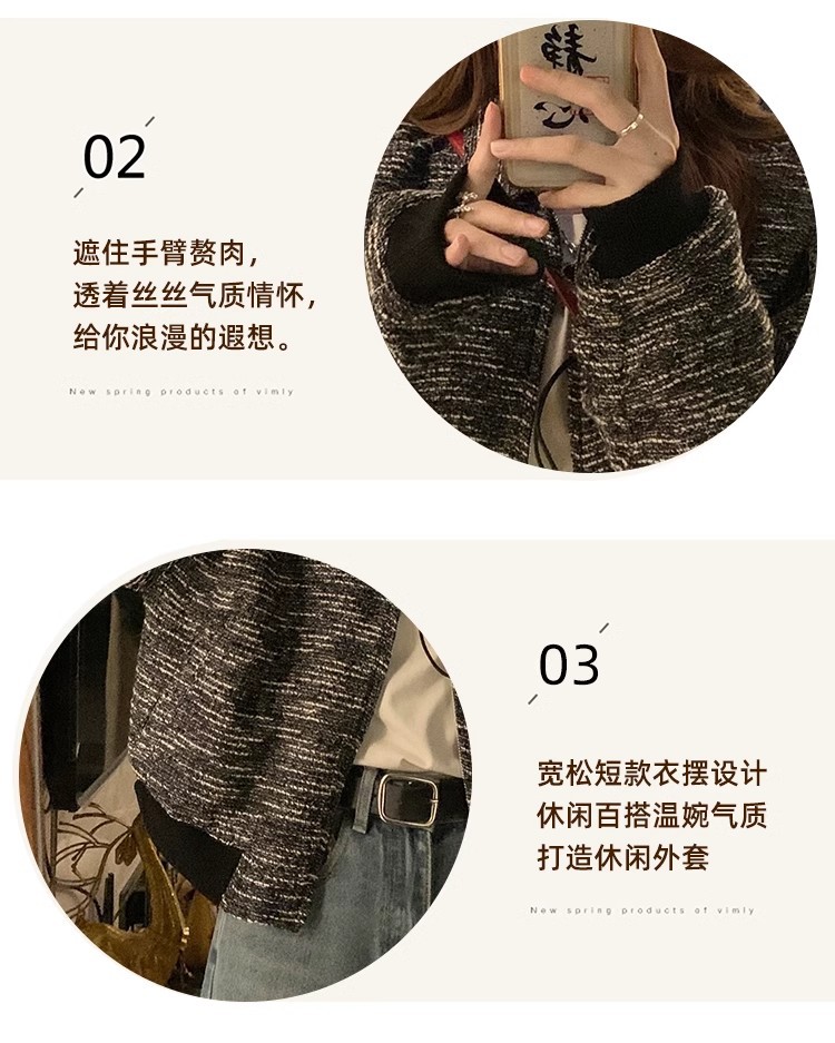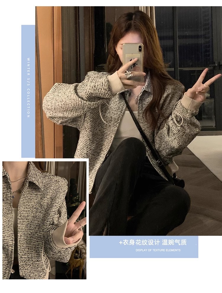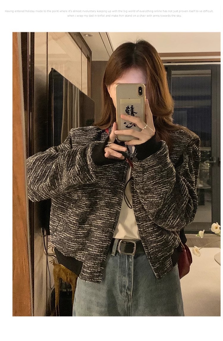 韩版短款小香风外套设计感小众女春秋款宽松vintage休闲夹克上衣