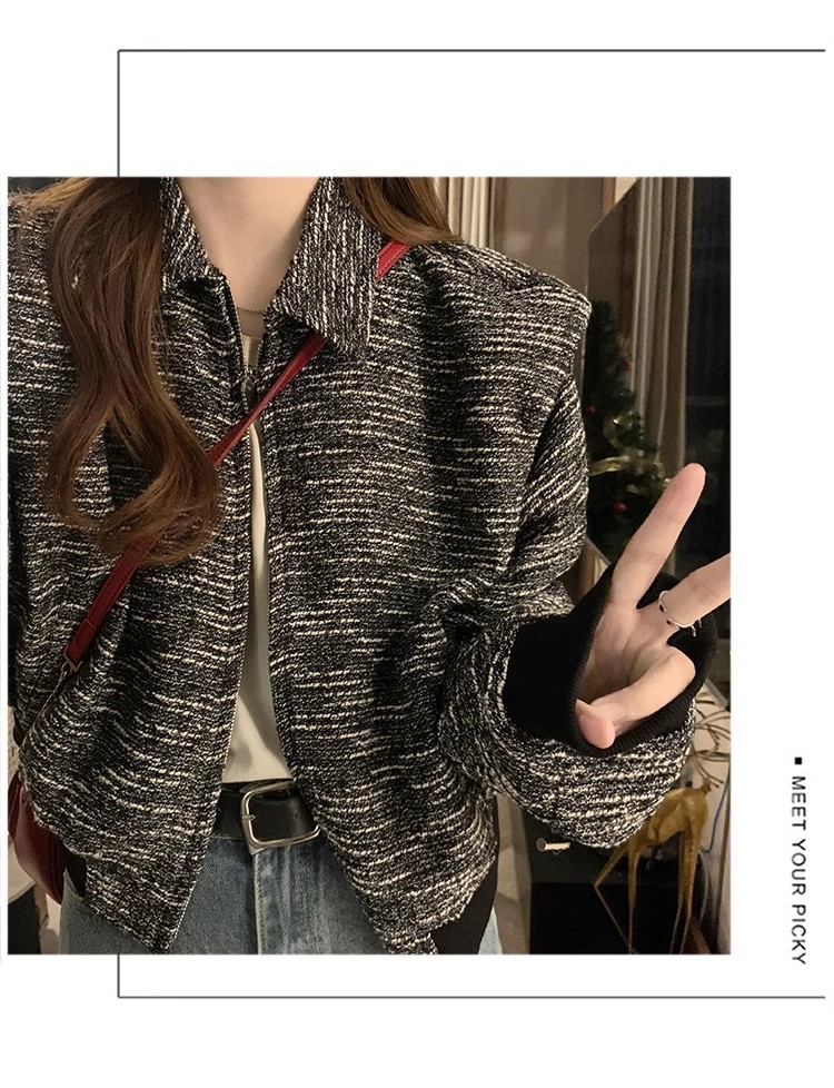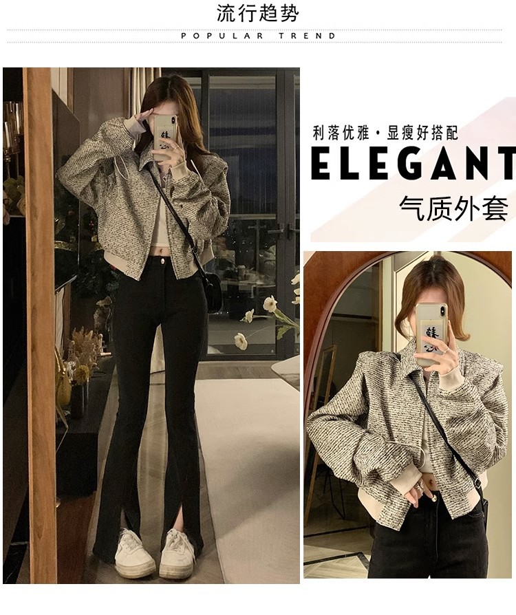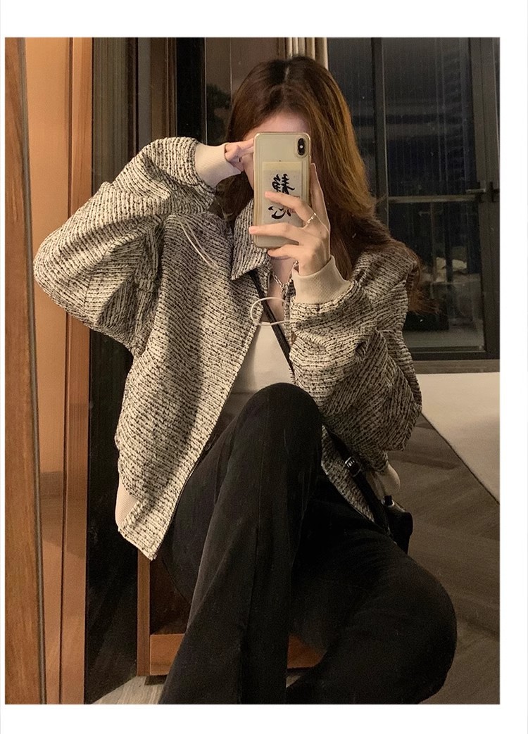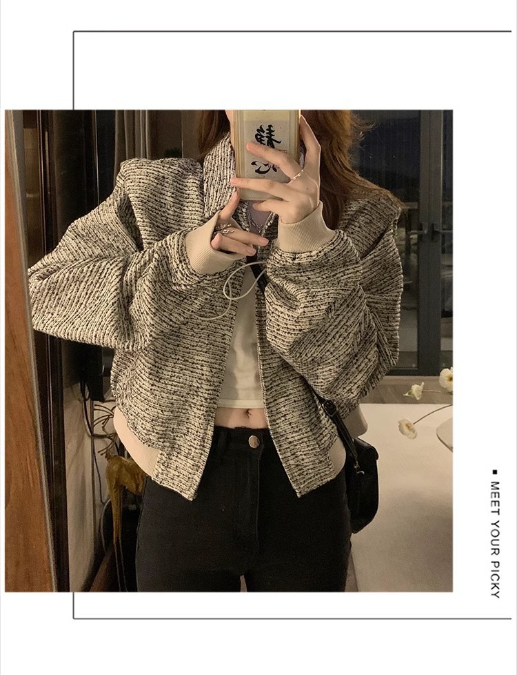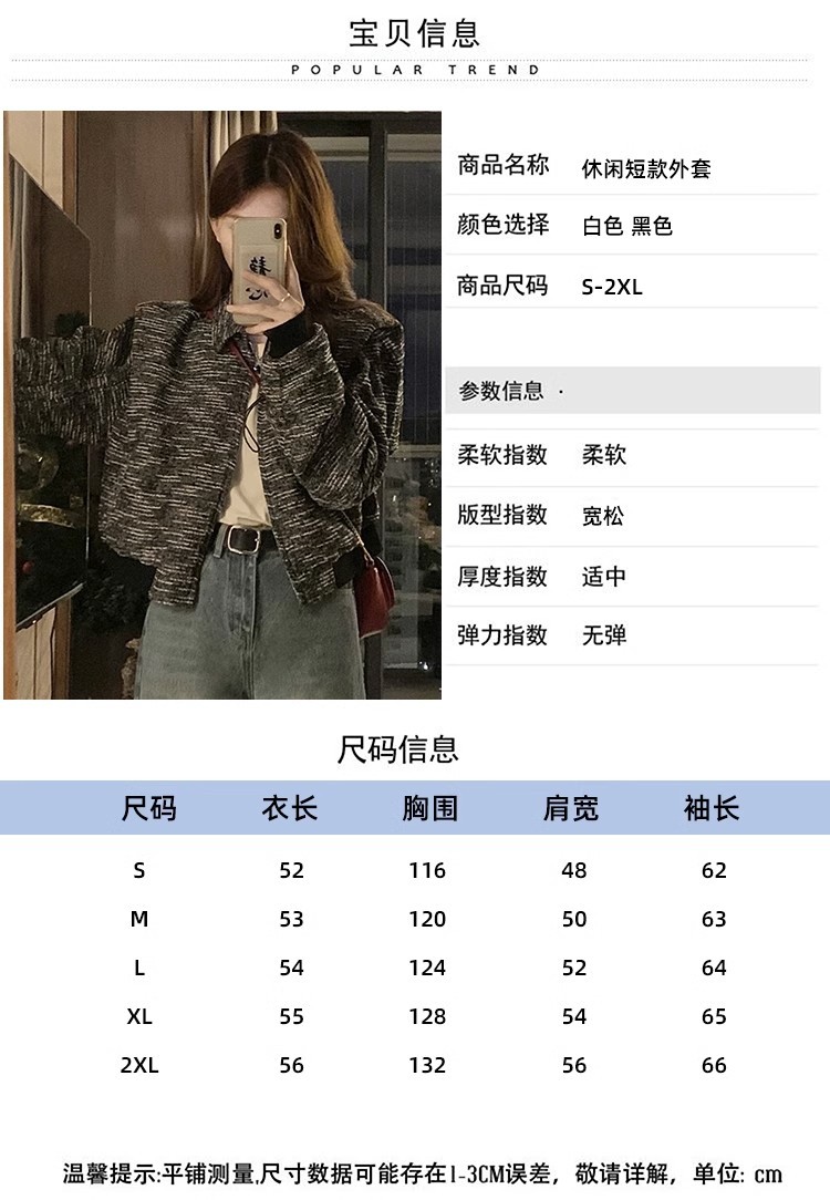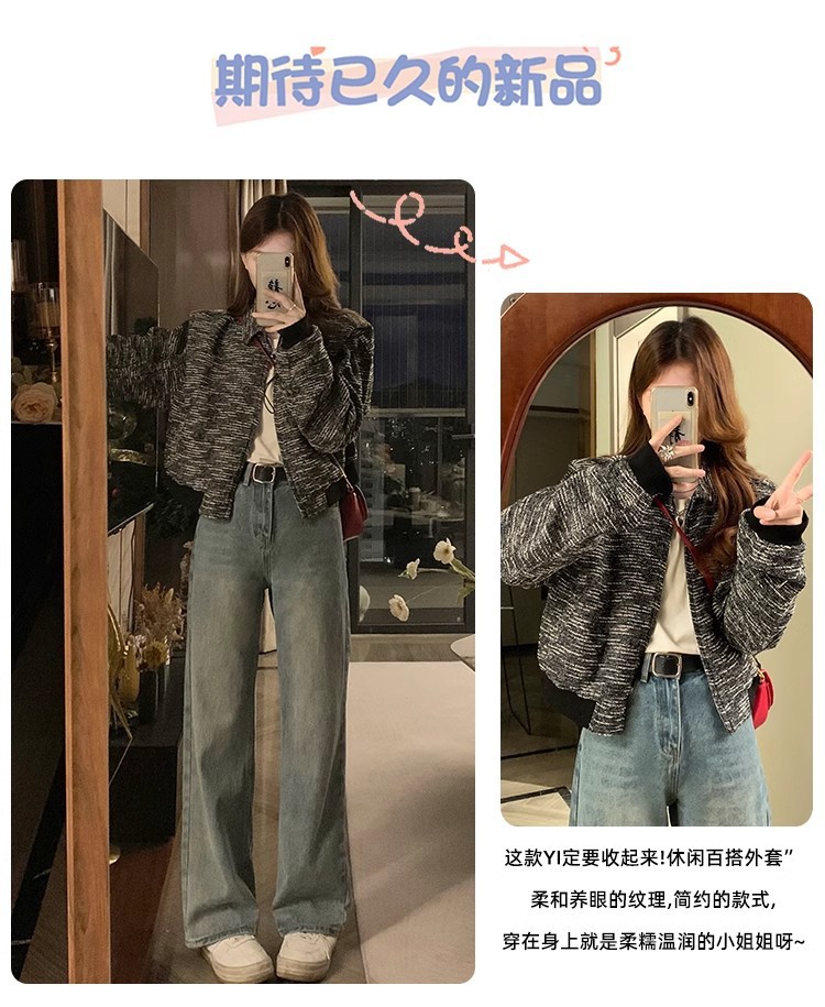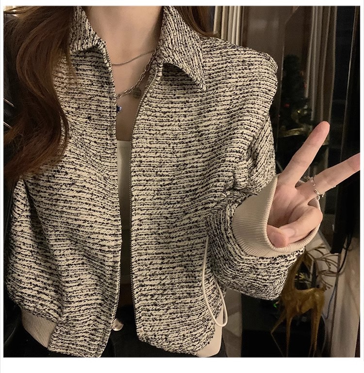 韩版短款小香风外套设计感小众女春秋款宽松vintage休闲夹克上衣