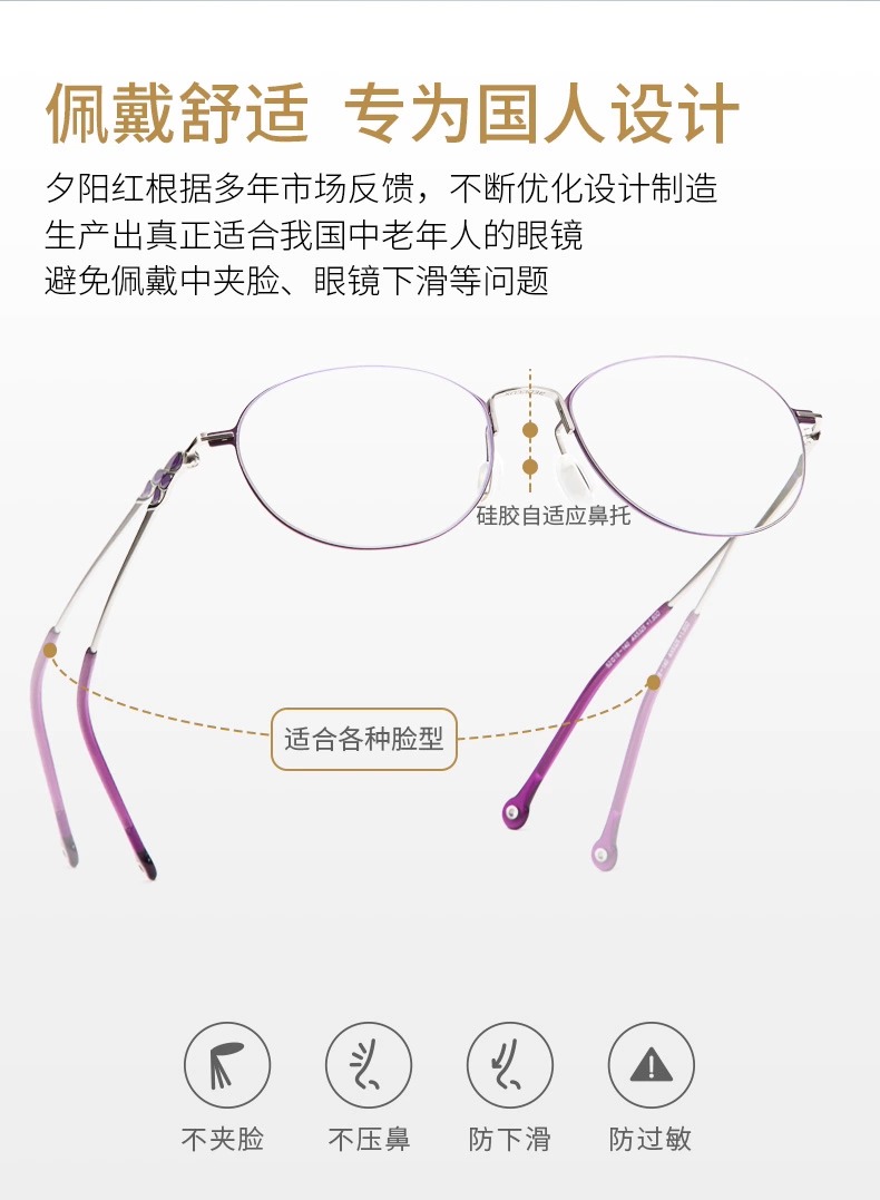 夕阳红老花镜女士防蓝光时尚舒适高清老人老花眼镜5325