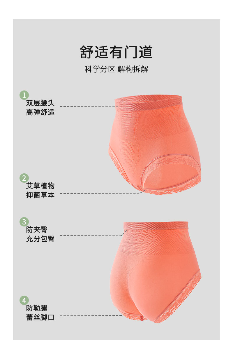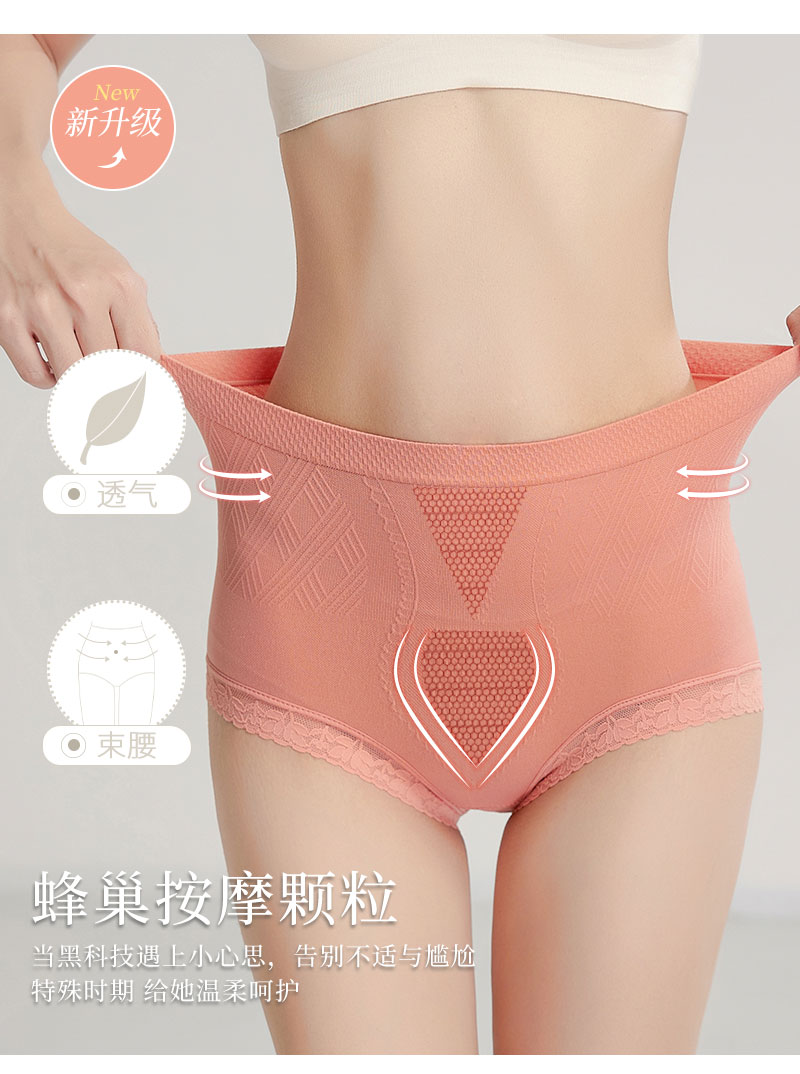【新款独立袋装 性感高腰女内裤】新款高腰收腹内裤立体颗粒无缝艾草抵挡提臀按摩