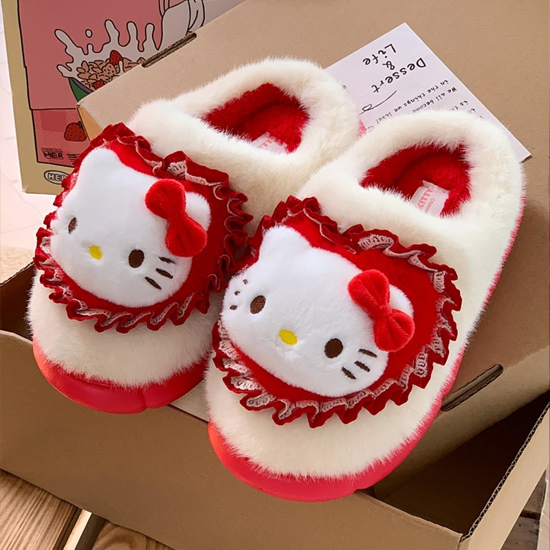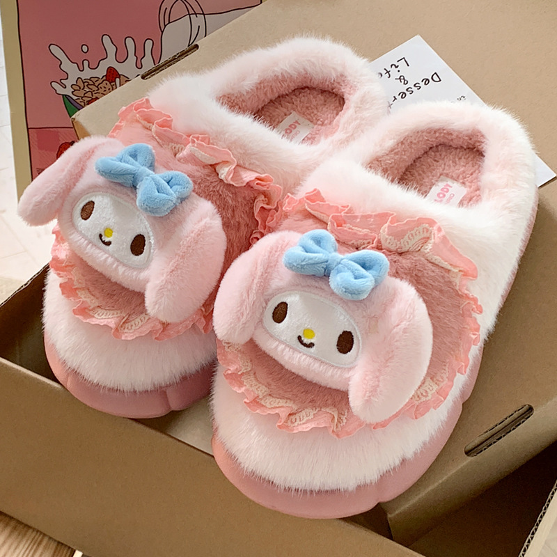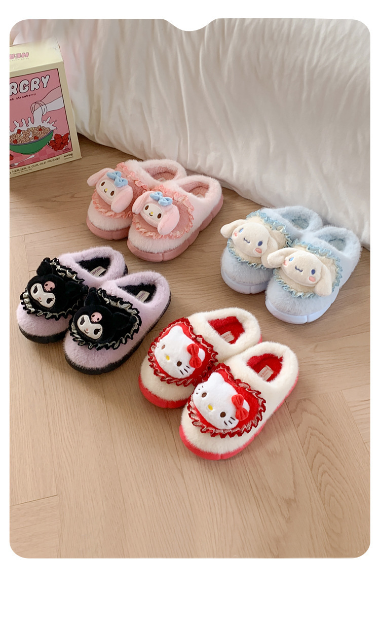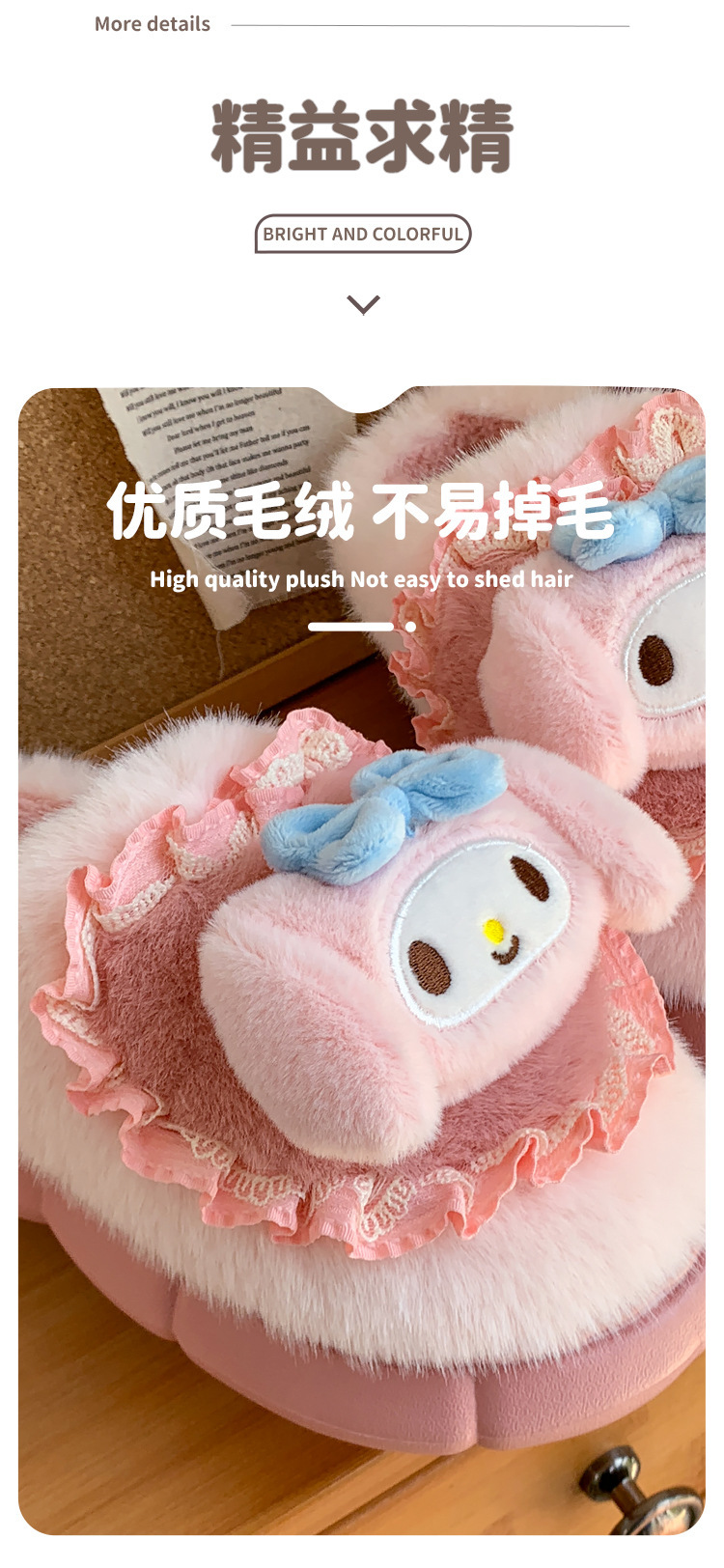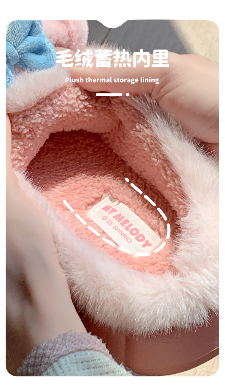 【秋冬拖鞋|三丽鸥 亲子卡通棉拖】厚实毛绒内里,舒适保暖,EVA大底耐磨防滑,可安心行走,鞋底柔软贴合足部曲线,行走不拖沓,立体造型软硬适中,轻盈无负担,久穿不累脚~