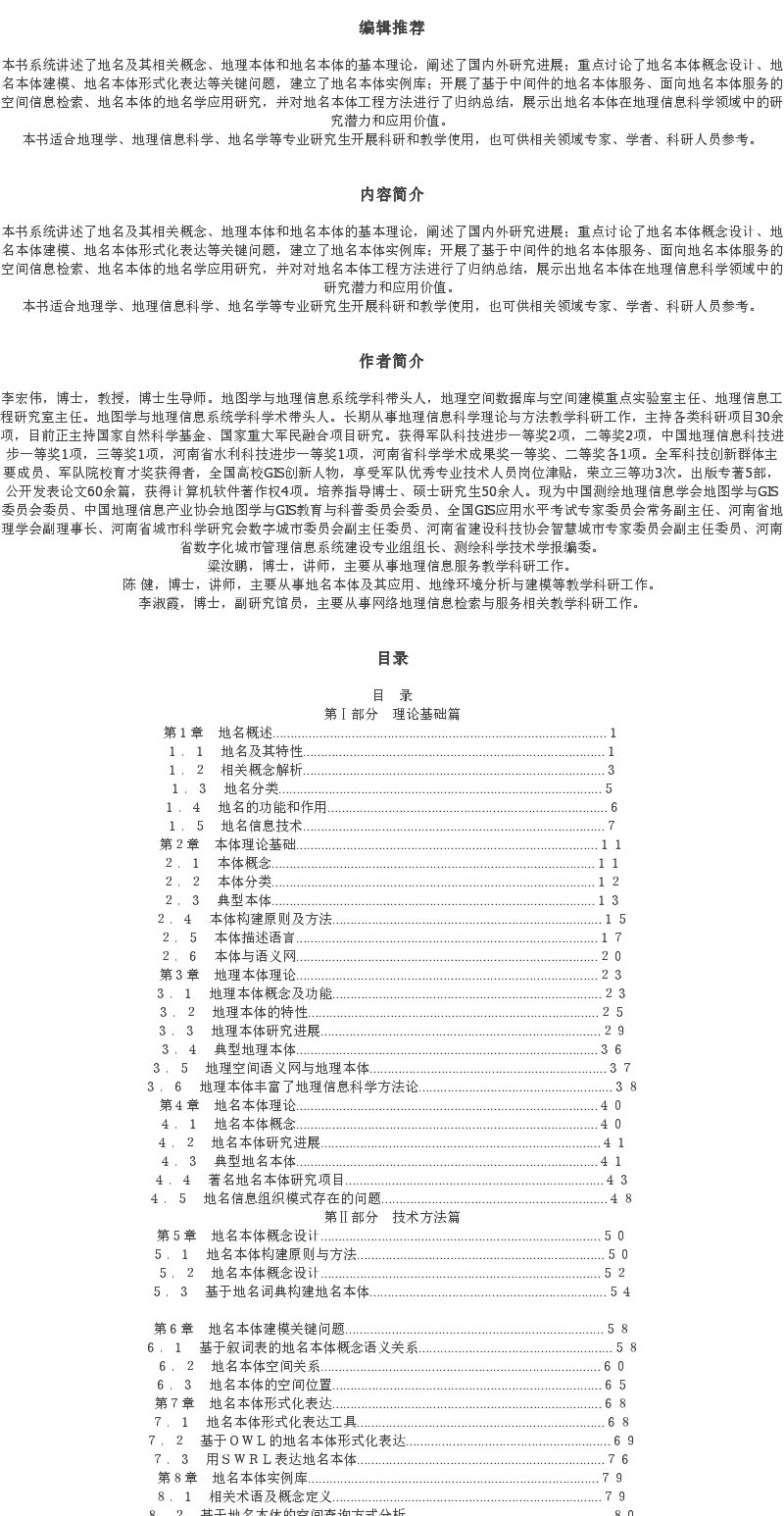 《地名本体理论方法与应用》(李宏伟,梁汝鹏,陈健,李淑霞)