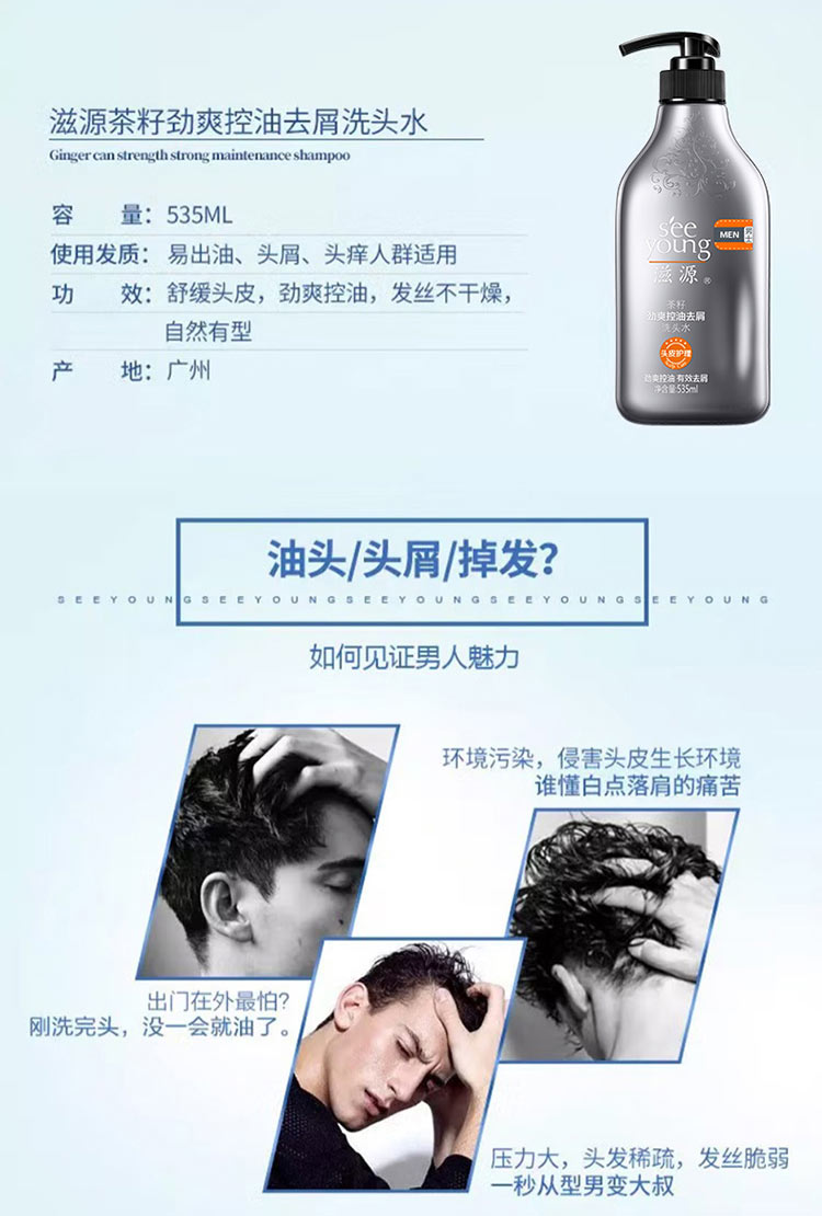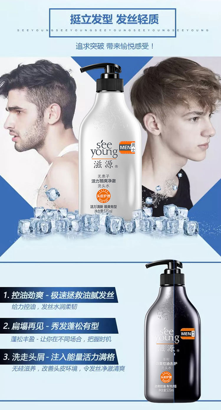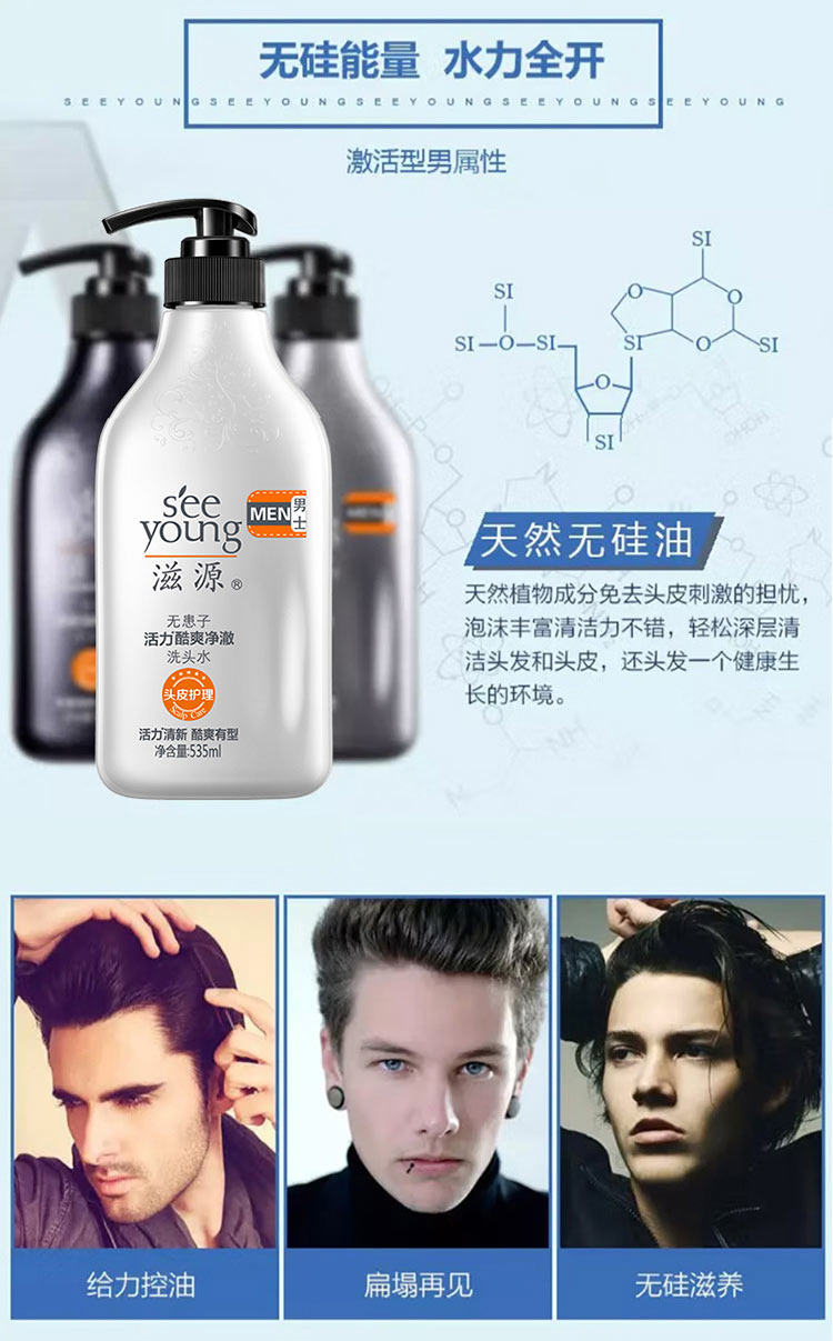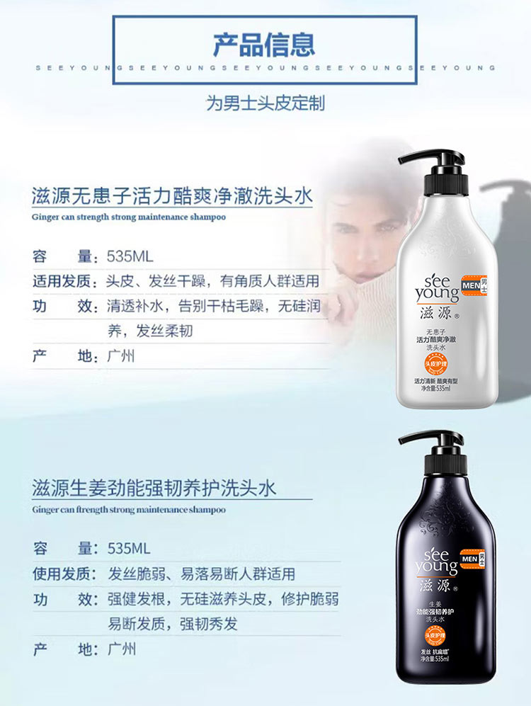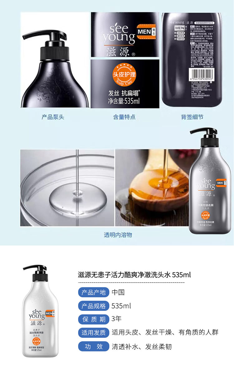 滋源丨 无患子活力酷爽净澈男士洗头水 535ml/瓶