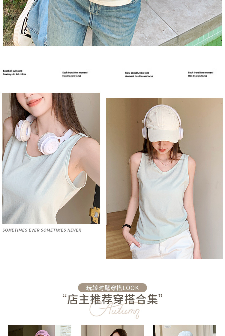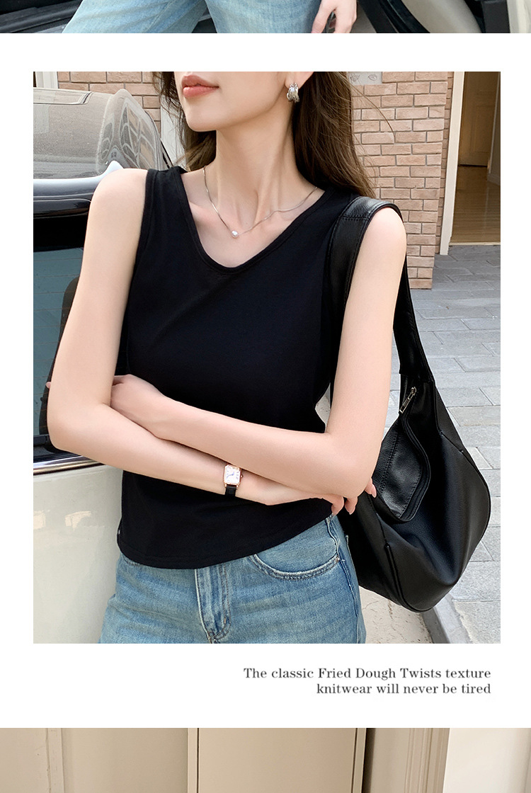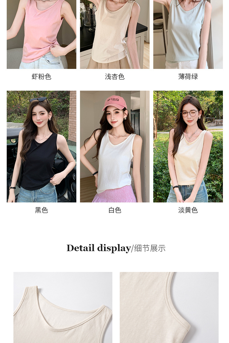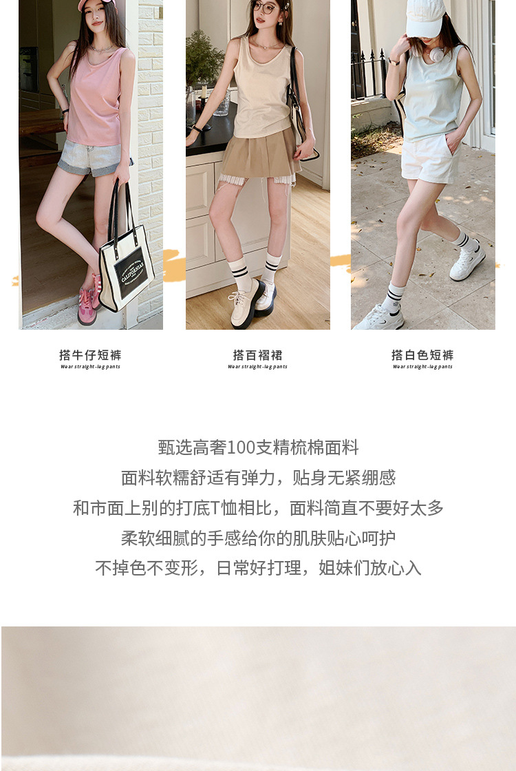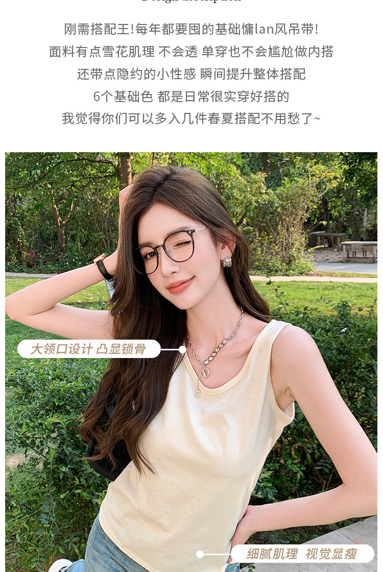 H925雪花棉吊带背心女夏外穿宽松遮肉打底内搭圆领无袖老汉衫上衣