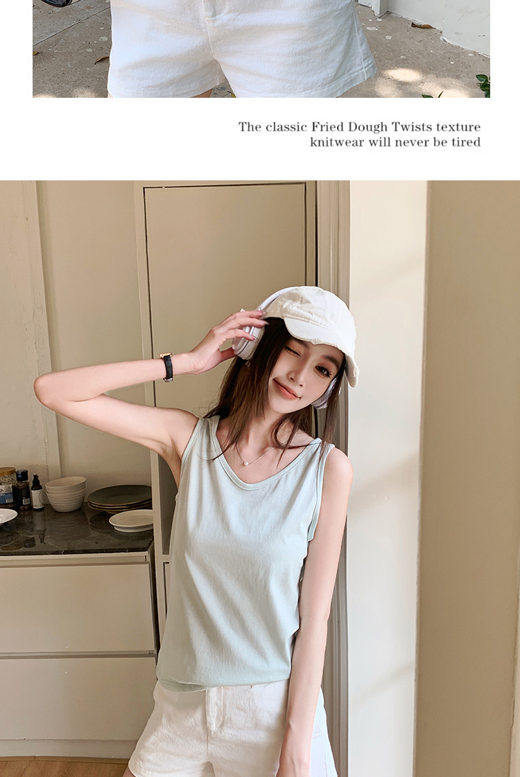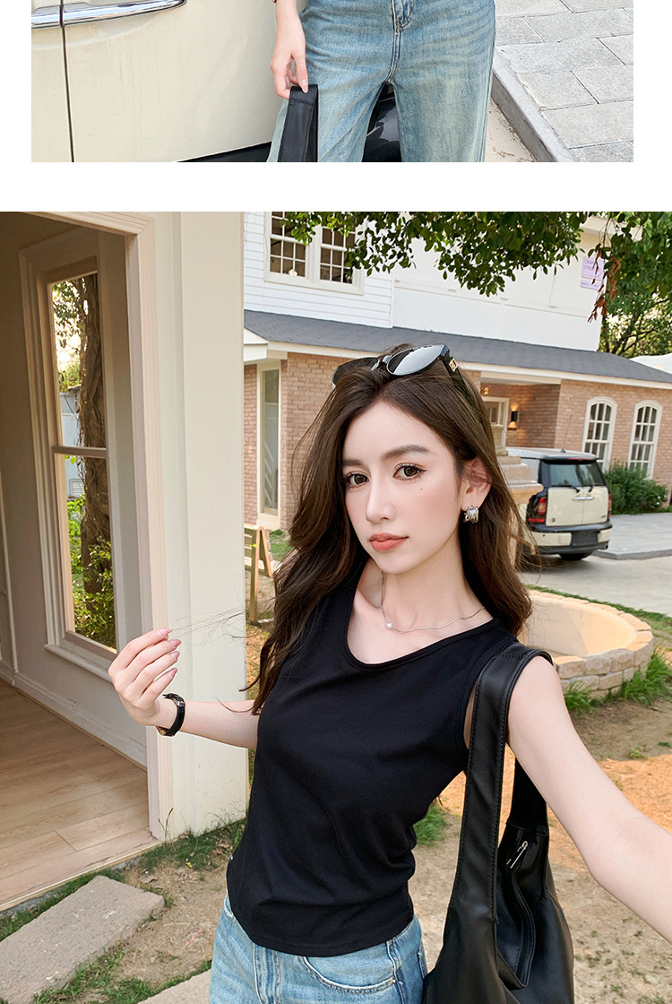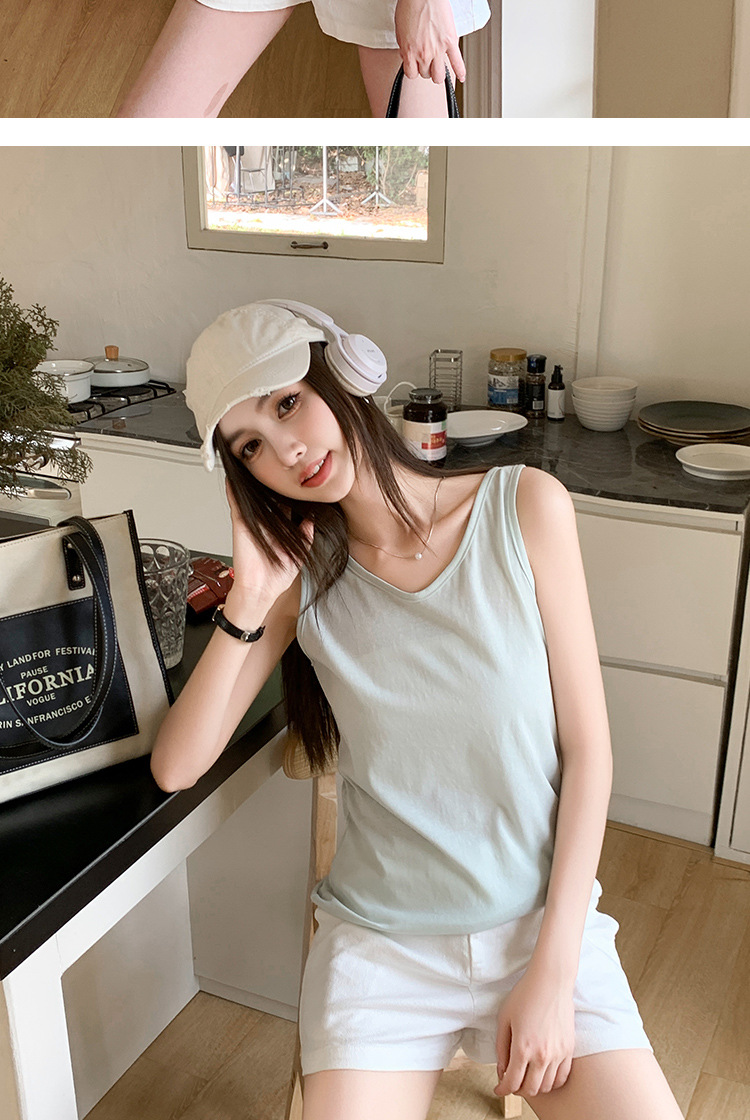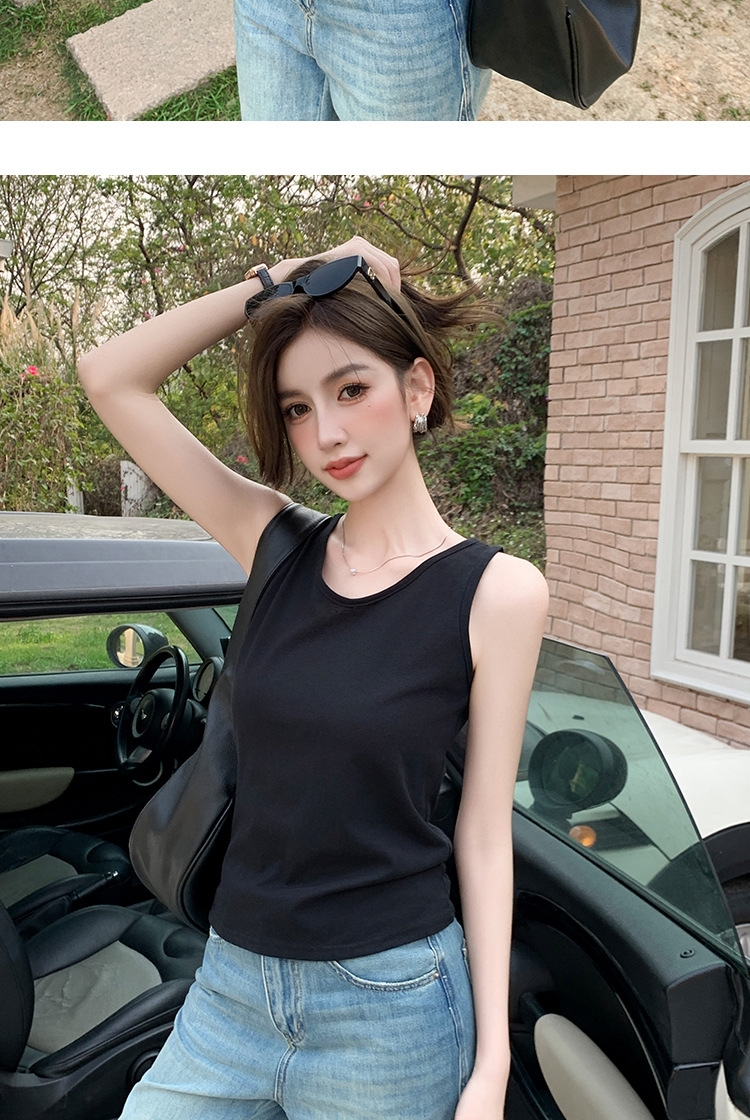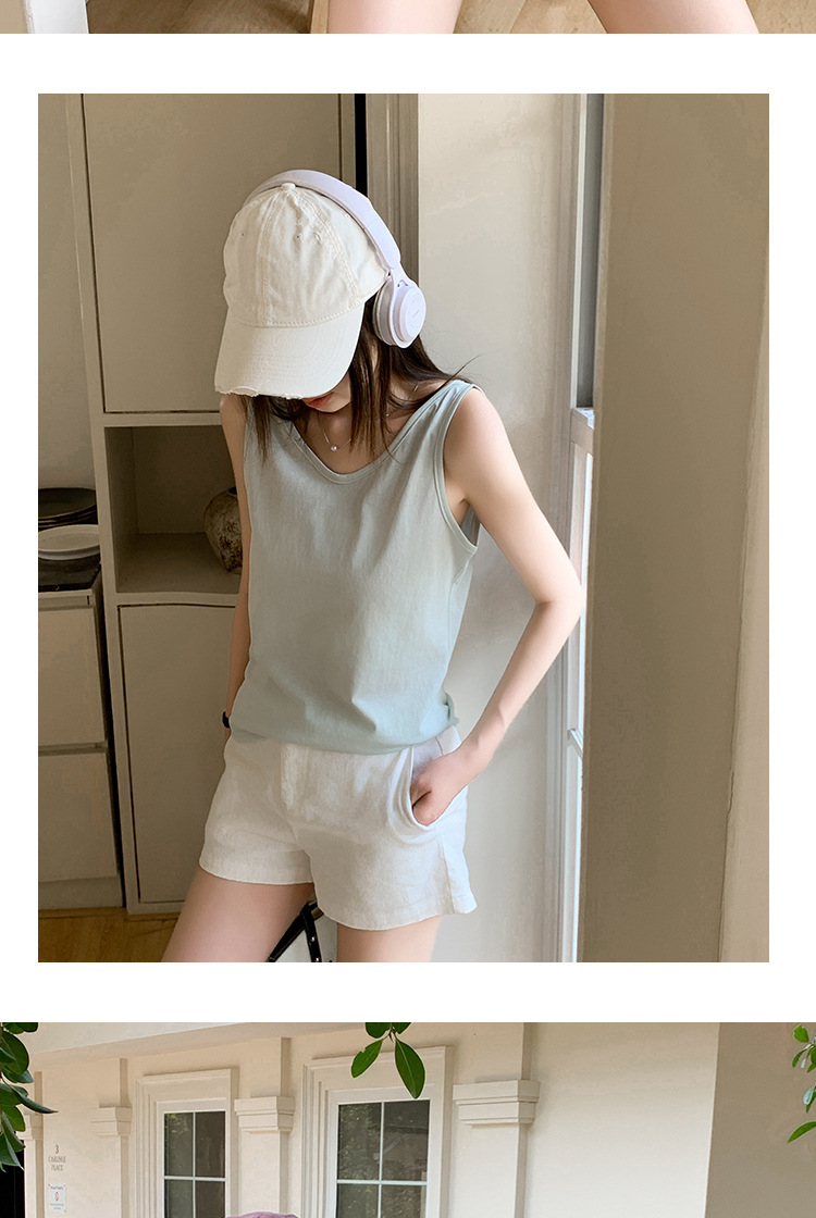 H925雪花棉吊带背心女夏外穿宽松遮肉打底内搭圆领无袖老汉衫上衣